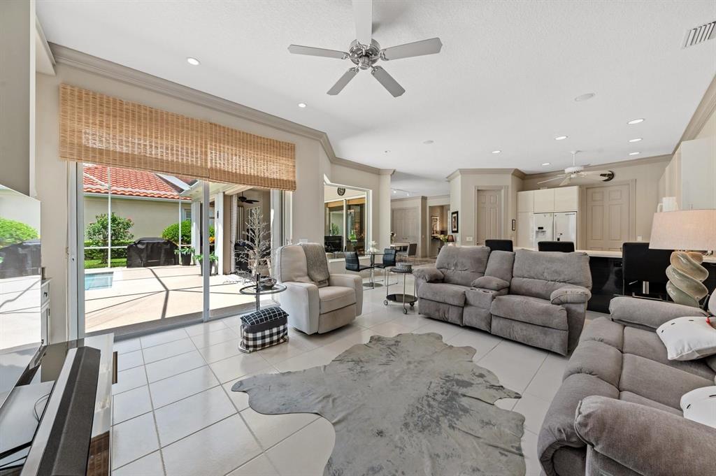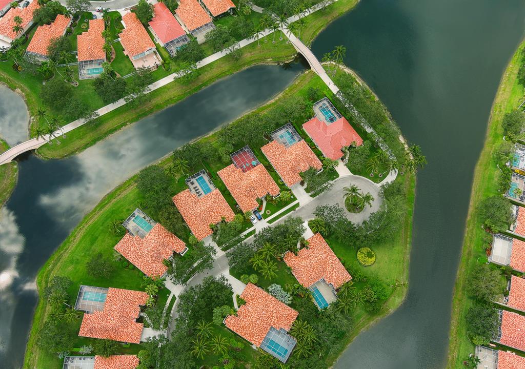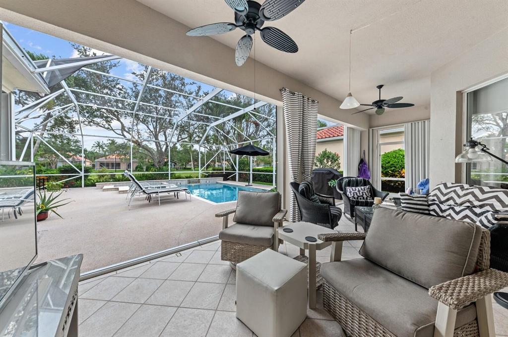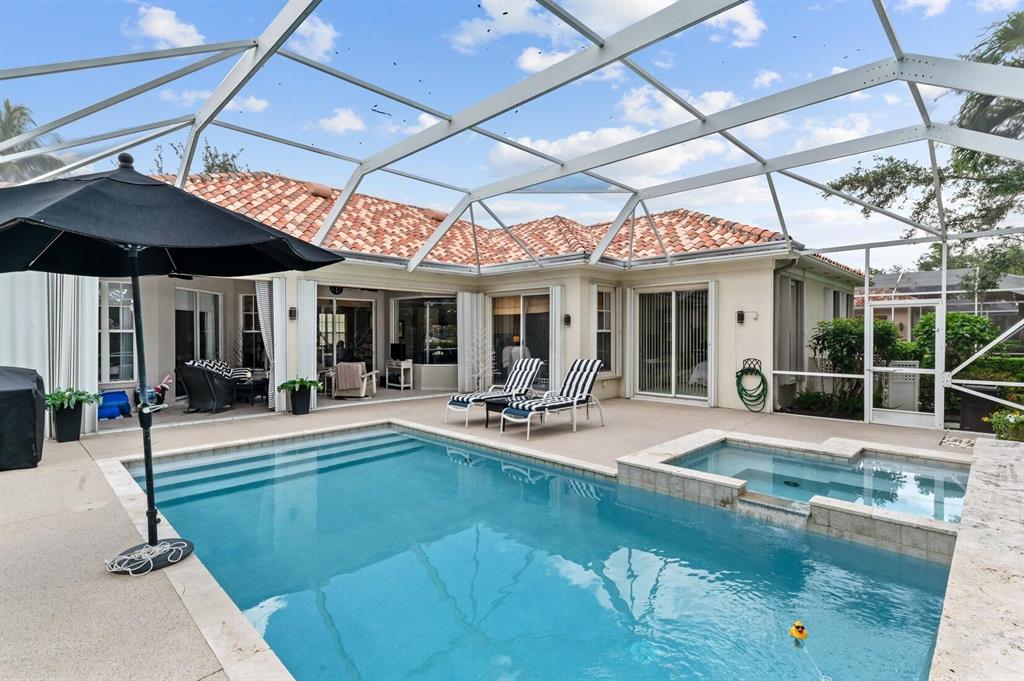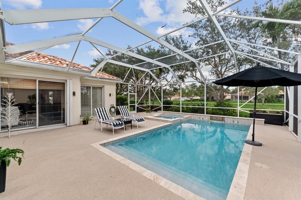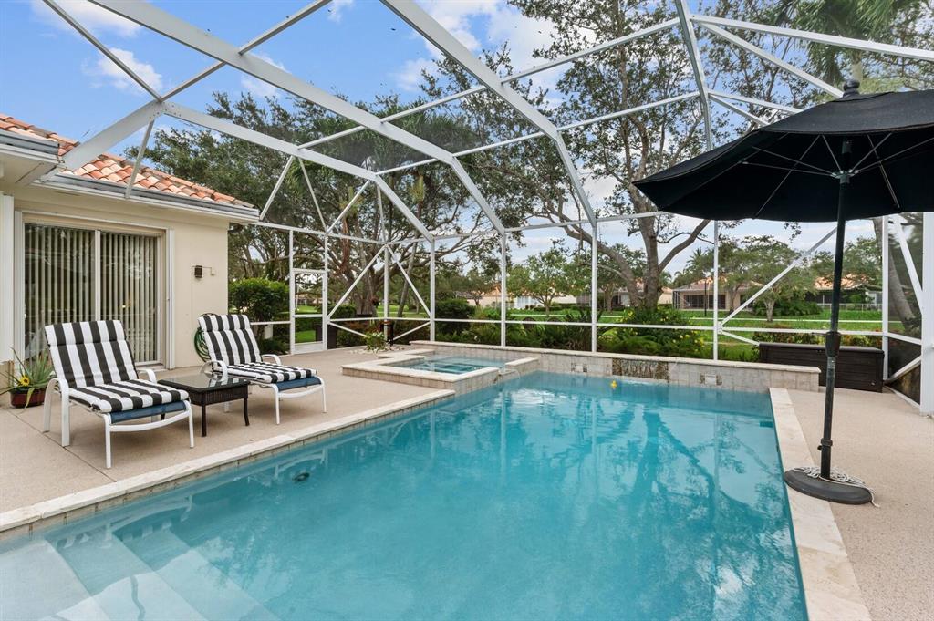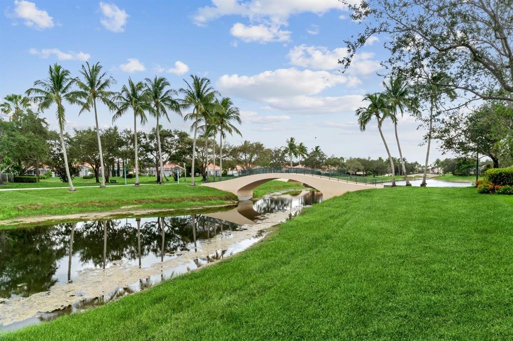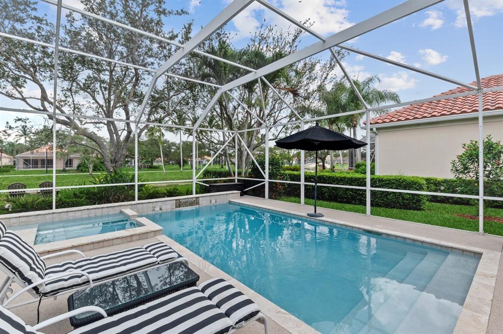 This Windsor has it All! FIRST, A Custom One-of-a-Kind Kingsbury Screened Heated Swimming Pool & Oversized Spa that is Over THE TOP! & SECOND, The Views!! THE BEST IN RIVERWALK! Incredible One-of-a-Kind Panoramic Views of Three Bridges, 3 Lakes, a Wide Lake Frontage with No Houses Directly Behind & a View of a Pedestrian Walkways too! Stunning, Unique, 4 Bedroom, 3 Bath Windsor in RiverWalk, A 24 hour 5 Star Resort Style Manned Gated Community! This Stunning Jewel is Set on a Large, Lush Tropically, Landscaped Lakeside Lot! This is Just the Beginning! All 15 Minutes to Everything that is Great About Palm Beach County Including the Ocean! From the Screened Tile Entry that Leads to the Ceramic Tile Foyer with a Built-in Console & Living Room with Sliding Glass Doors to the 22x11 Lanai with