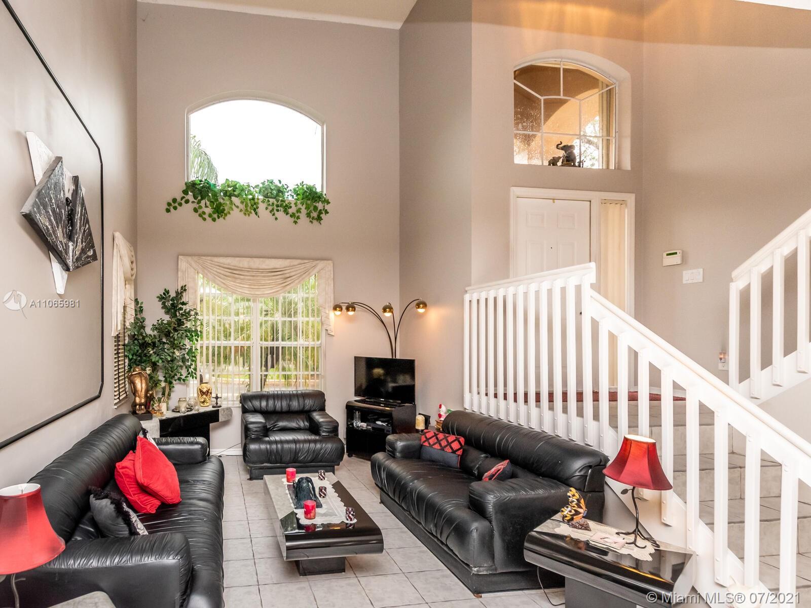 MOVE TO WESTON INTO THIS 24-HRS GUARD-GATED COMMUNITY WITH AMENITIES GALORE!! This beautiful 4 bedrooms, 2.5 bathrooms home sits on a large lot with room for a pool and a serene waterview. Stainless steel appliances, partially updated master bathroom with separate shower and roman tub, 2017 AC, paved patio with retractable awning and an EXTRA LARGE MASTER BEDROOM WITH TRAY CEILING AND SITTING AREA. Community is strategically located close to highways, 20 minutes to beach and airports, 35 minutes to Miami and walking distance to shopping and restaurants. WELCOME HOME!