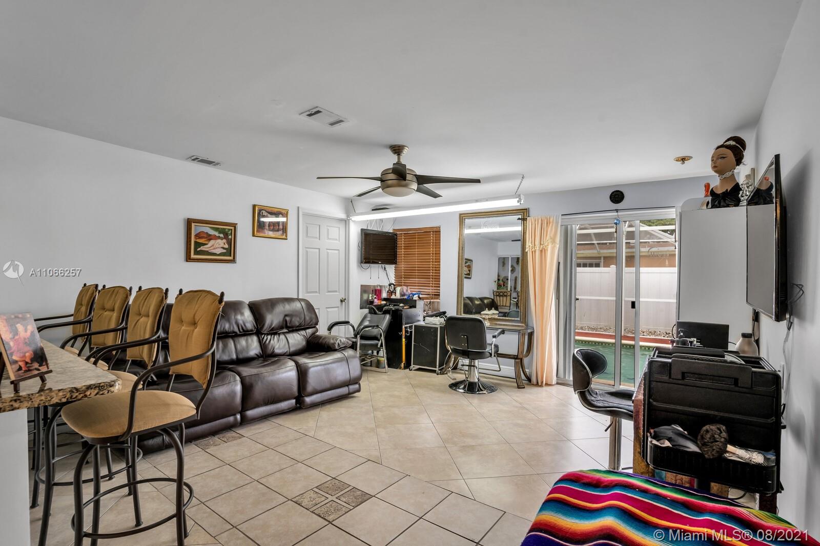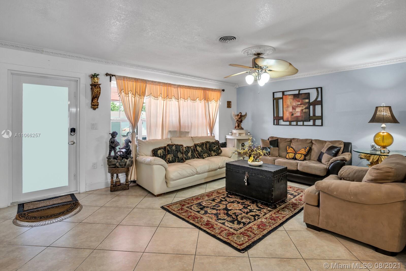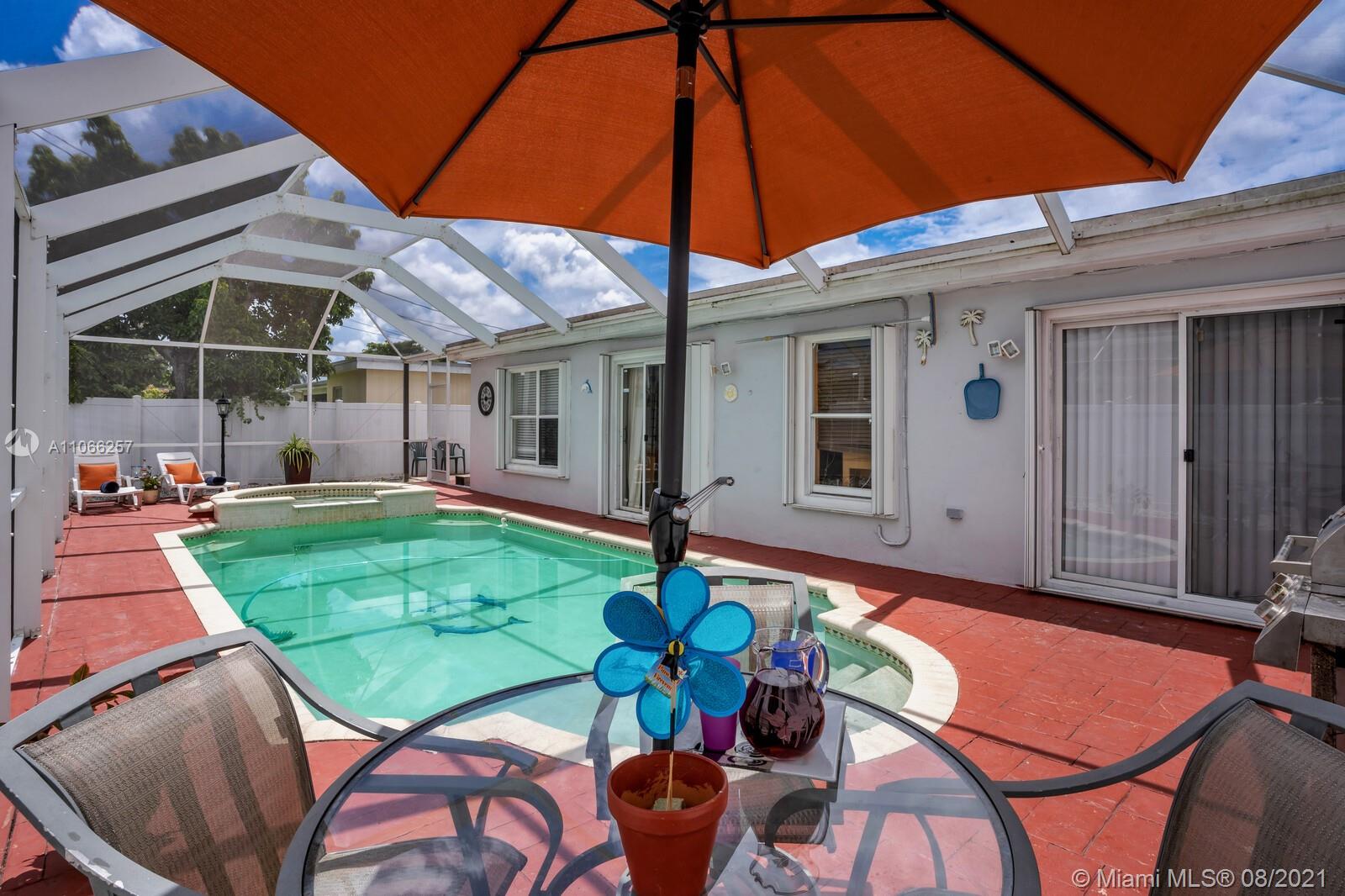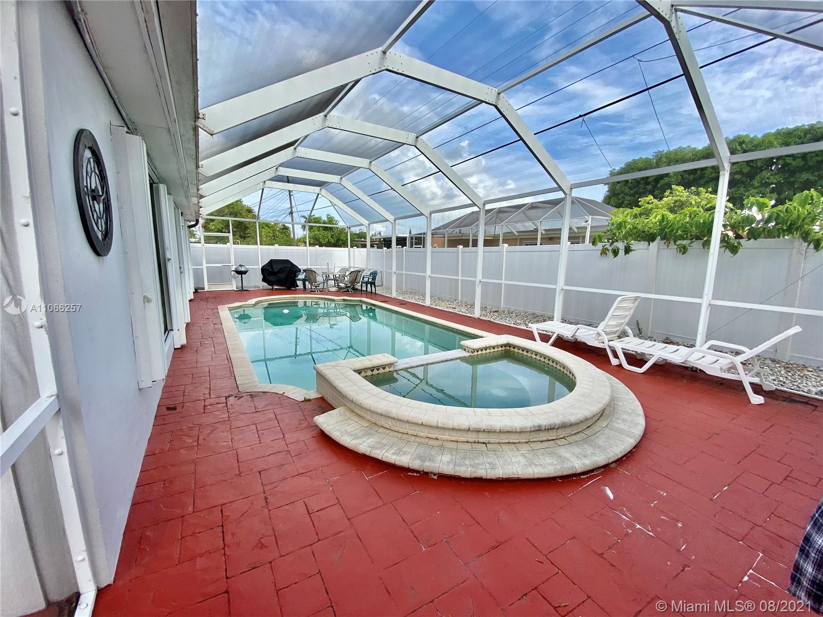 Beautiful well maintained 4/4 house with great curb appeal with large driveway that allows for parking 5 cars, tile roof, hurricane impact windows, and an amazing pool & jacuzzi. The screening pool area is perfect for entertaining. Plus, 3 bedrooms with independent entrance, a great potential of income-producing. the garage is converted but can turn back, 5 ceiling fans, central AC, 2 wall AC units, 2 smart AC units, new white fence with a gate on both sides. Excellent location near to shopping, dining, major highways, and more. The property is unique you must see it!