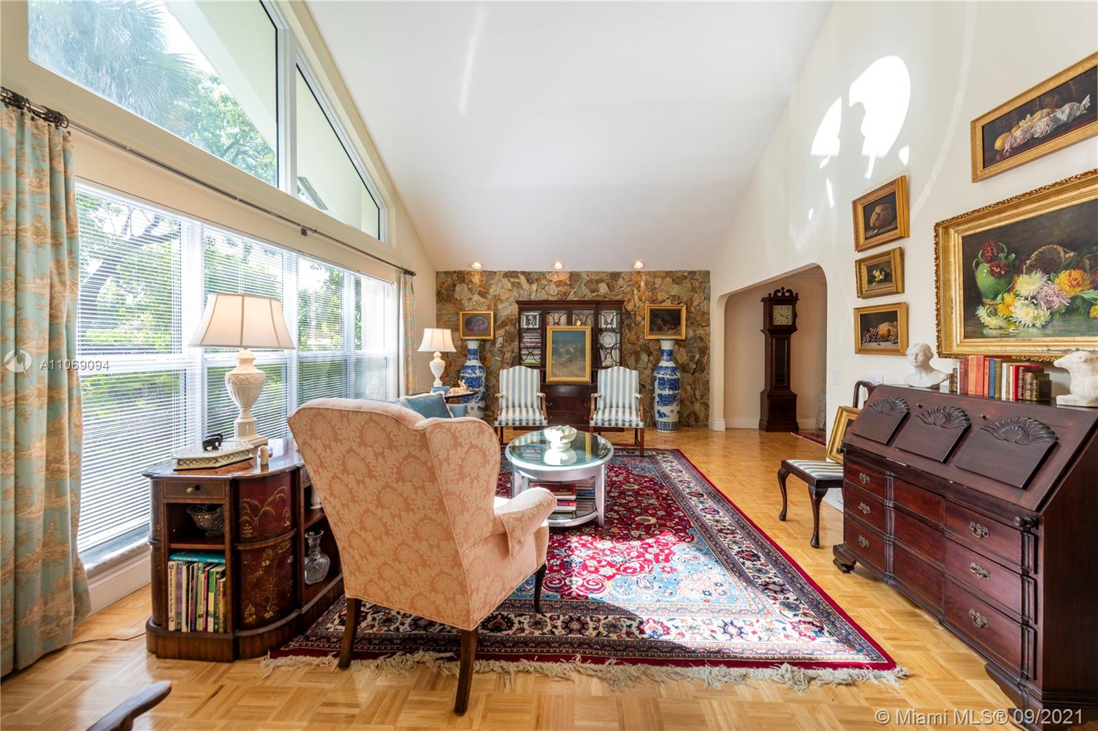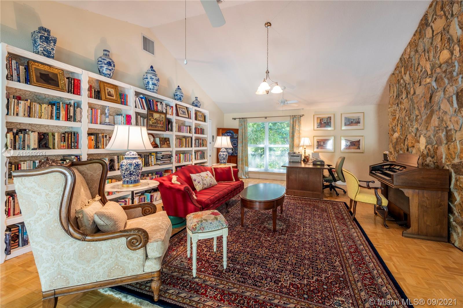 This Lovely Waterfront Home Features 4 Bedroom, 3 Bath, Plus Living Room, Dining Room, Large Kitchen, Breakfast Room, Family Room, Library/Game Room, Fireplace, Impact Windows & Doors, Oak Parquet Floors, High Vaulted Ceilings, Dry Sauna, Gorgeous Pool with Waterfall and Tennis Court. Front Porte Cocher Entrance Plus Garage. NO HOA!!! This Lovely Estate Home Is A Must See!