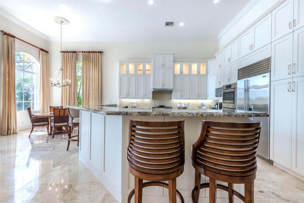 Welcome Home to your Country Club community WITHOUT the fees! This 4 bedrooms, plus den/office, & loft-renovated, updated, with a gorgeous long lake view. Literally ready to move into!! Professionally designed built-ins in family room & den/office, stunning light fixtures, and a newly renovated luxurious marble master bathroom, w/rainfall shower-two sets of double jets and a free-standing soaker tub. All other bathrooms have been renovated and updated. Recently remodeled gourmet white kitchen includes an extra level of kitchen cabinets for maximum storage, custom-built storage pantry closet, Sub-Zero and Bosch appliances with natural gas. All 3 A/C units are within the last 2 years new. All closets have been custom designed and built -out, and storage is abundant.