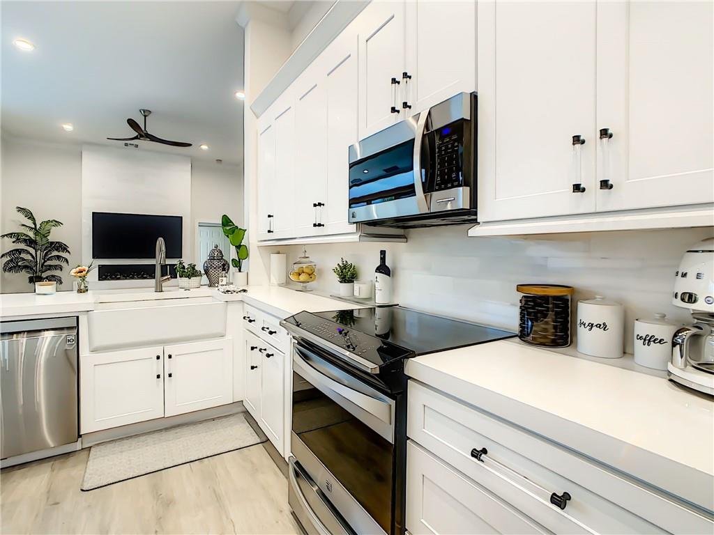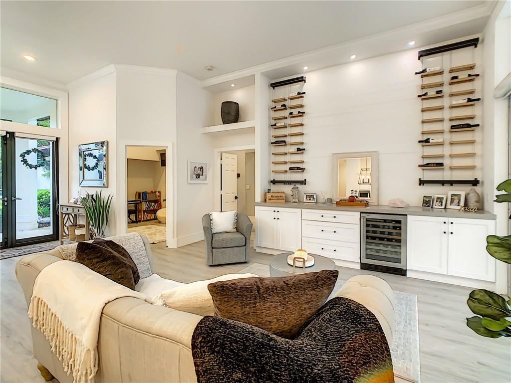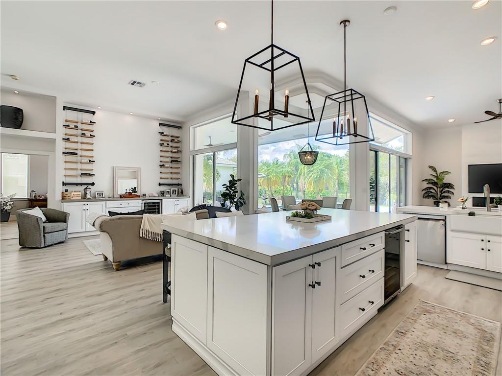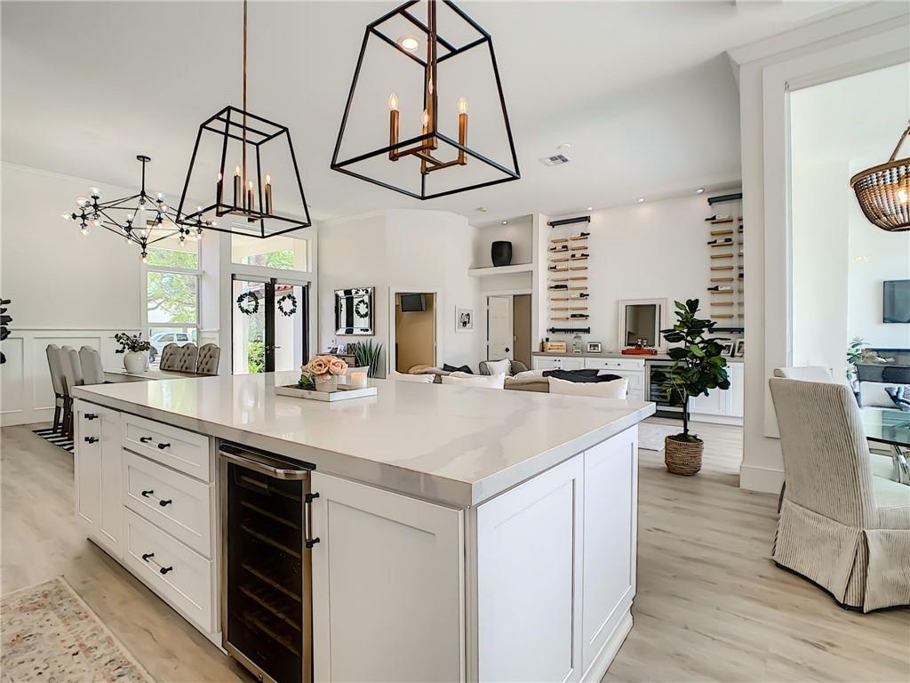 Stunning 6 BR, 4 bath pool & waterfront home on an oversized lot! Upgrades galore! Modern open floor plan with views to the newly remodeled patio, pool, and putting green. The outdoor oasis features a 2,000 sq ft travertine pool deck along with a salt water pool, outdoor fireplace wall perfect for a tv sitting area and views to the tranquil lake. The kitchen features an extra large Quartz countertop and is a newly upgraded chef's kitchen. A new curved tile roof was installed in 2019. New A/C units installed in 2021. All 4 bathrooms upgraded including the master bathroom which features a beautiful marble wall and stand alone soaking tub. 3-car garage w/ hurricane-rated door! Upgraded security system w/ cameras! This house will not last!