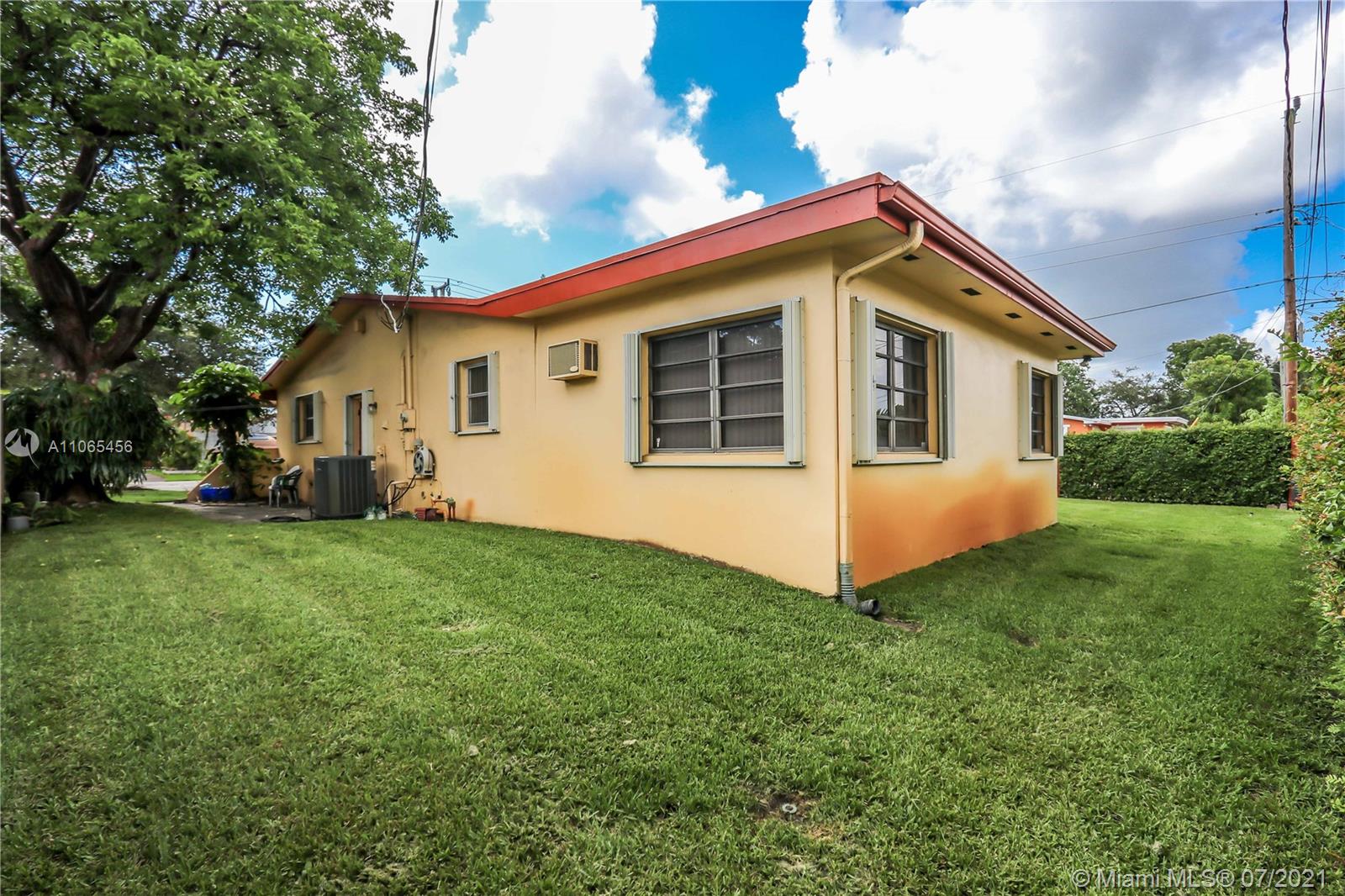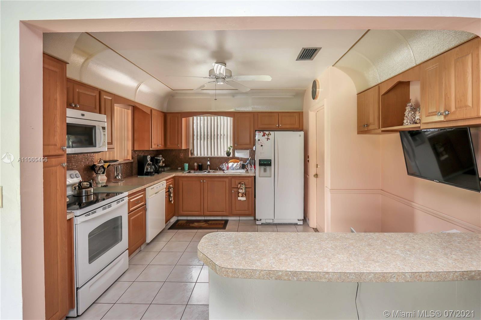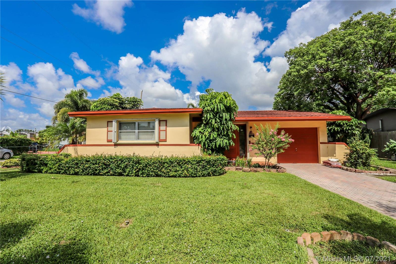 BRIGHT AND SPACIOUS 3BD / 2BA CORNER HOME! NICE DOUBLE DOOR ENTRANCE~ WELL KEPT FRONT YARD AND LARGE FENCED BACK YARD. THE KITCHEN FEATURES MOSAIC TILE BACKSPLASH AND BUILT INS UPDATED APPROX 10 YEARS AGO AND WALL MOUNTED TV INCLUDED. MASTER BEDROOM WITH LARGE CLOSET AND TILE FLOOR. SPACIOUS 2ND BATH WITH TUB AND SHOWER. COVERED FRONT PORCH. ACCORDION SHUTTERS FOR WINDOWS, SLIDING DOORS AND DOUBLE FRONT DOOR. IMPACT DOOR IN GARAGE. DRY WOOD TERMITE TRANSFERABLE WARRANTY. GREAT LOCATION, MINUTES FROM MEMORIAL HOSPITAL, DOWN TOWN HOLLYWOOD, AIRPORT AND BEACHES.