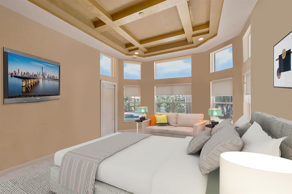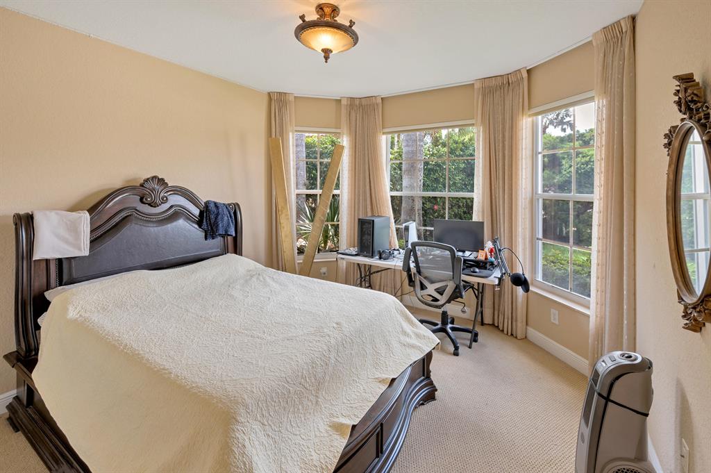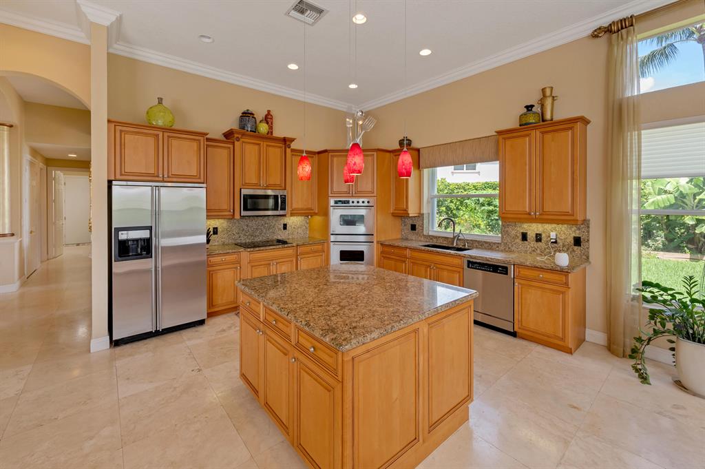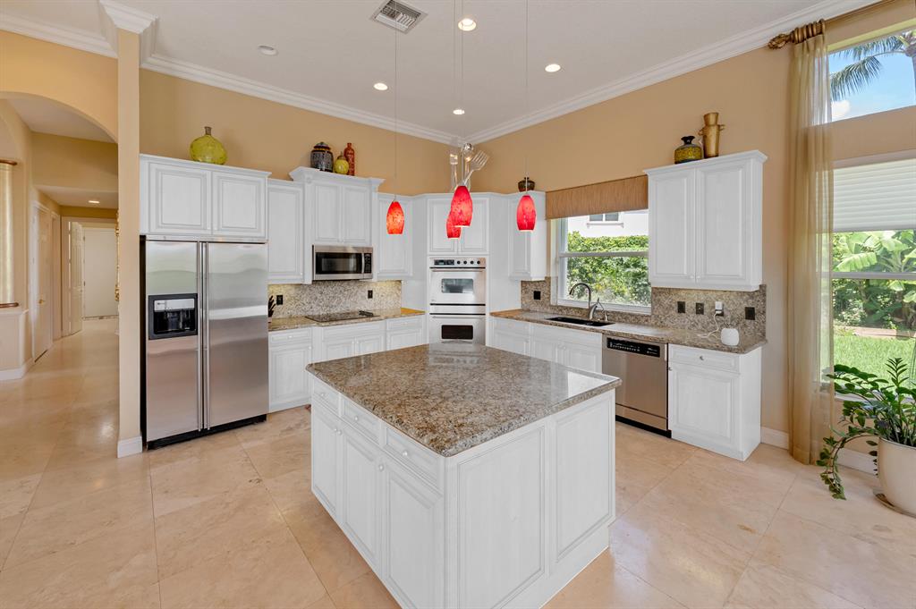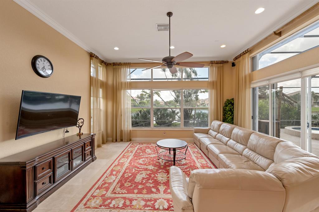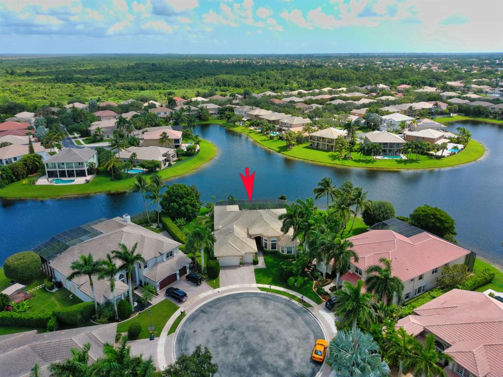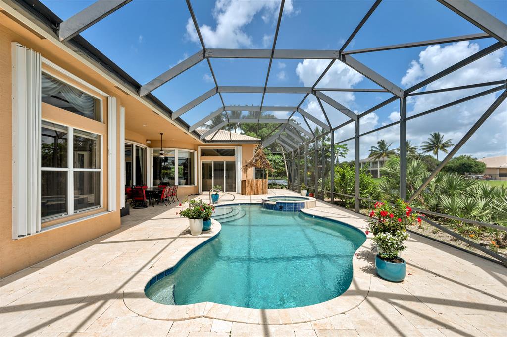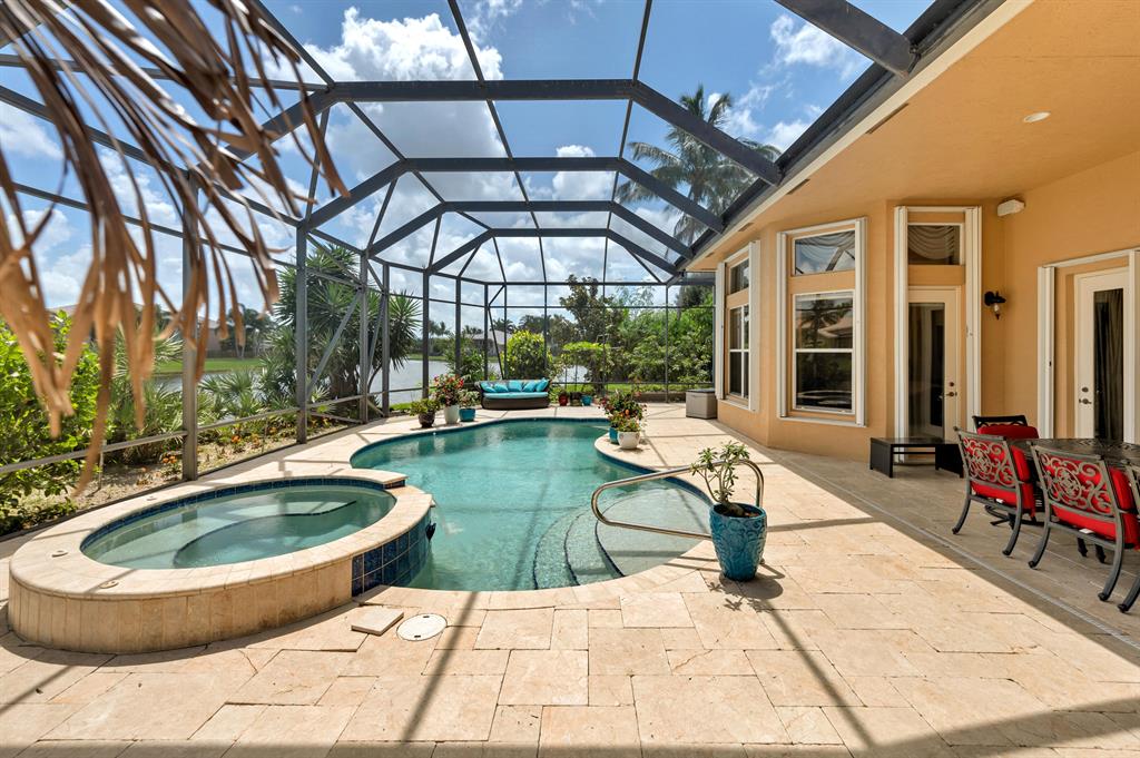 Elegant and spacious 1/3 acre cul-de-sac lakefront lot in Boca Raton's most premiere established community. This home features a grand entry with 14 foot high ceilings, large floor to ceiling windows showcasing panoramic water views from many of the rooms as well as beautiful gardens. This beautiful 5 bedroom, 4 bath home is over 3600 sq. feet under ac has Saturnia marble floors, a contemporary feel with open-concept kitchen. All appliances are stainless. Large family room connects to the kitchen which is just off the semi-formal dining room. Open living area is complemented with trey ceilings and stylish fixtures. Accessories include whole-home Sonos system w/Bose speakers, outdoor Tiki bar, dry bar off living room, extensive mature landscaping & gardens, screened pool enclosure is