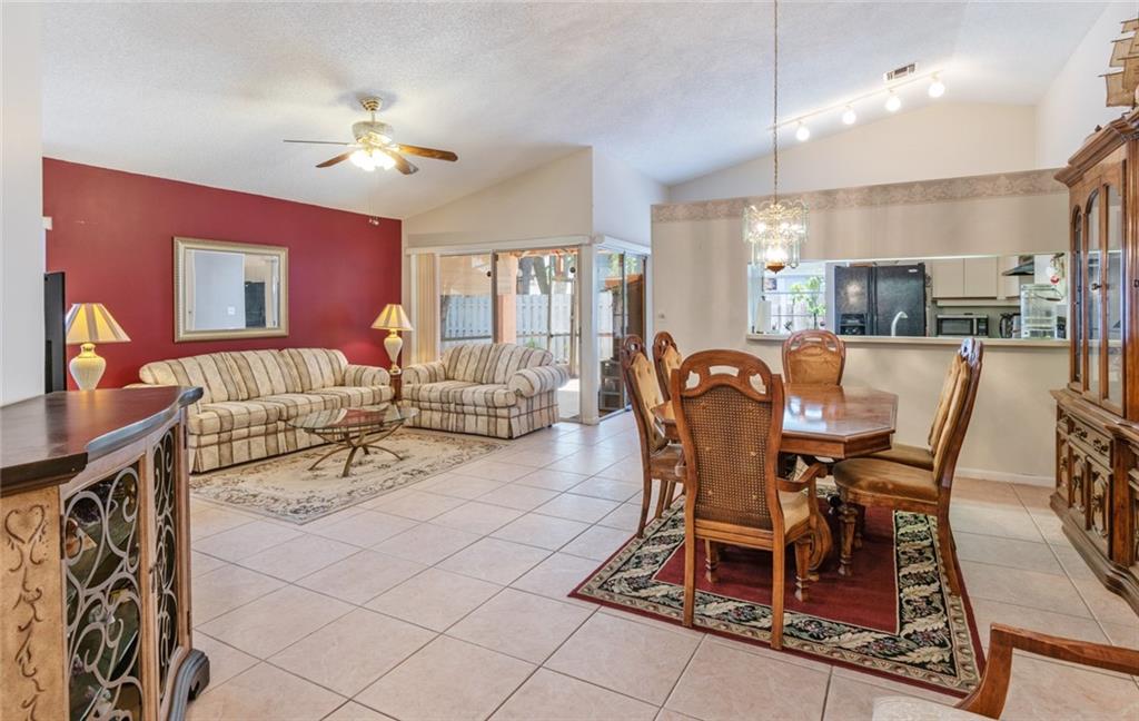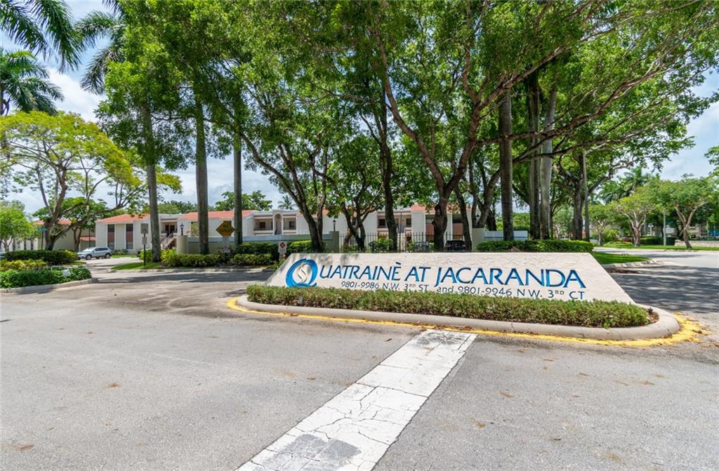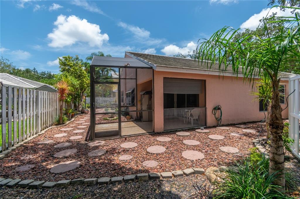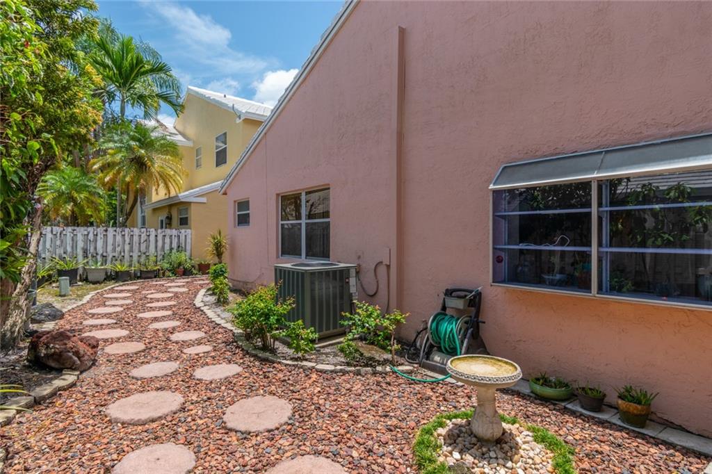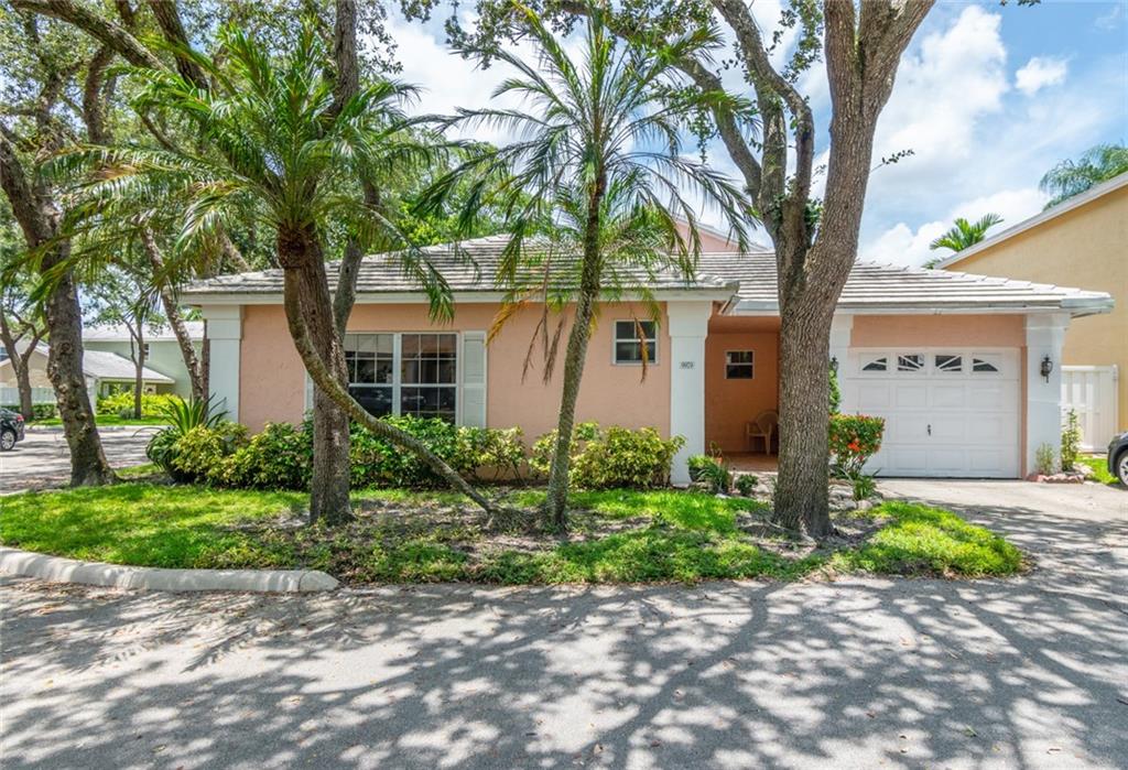 Wonderful opportunity to own in Quatraine IV of Jacaranda. A corner lot on a Cul-de-Sac with spacious fenced-in backyard and screened-in patio. Interior features split floor plan and walk-in laundry room. Vaulted ceilings and tile throughout mail living area. Large walk-in closets provide extra space for storage. Master on-suit with double sinks and large shower. One car garage with additional parking space makes this home ideal for family with multiple vehicles. Conveniently located near Central Park and great walking areas. Low Maintenance HOA with community pool & playground.