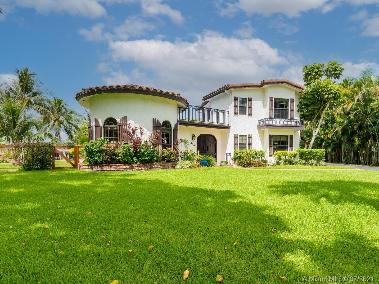 Amazingly unique three bedroom three bath two story home carefully designed to bring forth the best of old world charm. Bask in the pool surrounded by a tropical waterfront paradise on over ½ an acre with party size covered entertainment area with barbeque grill, electric, water, and so much more. Home also offers Impact windows and doors and fabulous flooring throughout. The additional storage building offers electricity and wall a/c for your comfort, whether as an office, home gym, or other. Desireably situated in Plantation Acres near American Heritage School. This beautiful home can be yours! Love it just the way it is or personalize it with your own creative updates. Showings by Appointment Only.