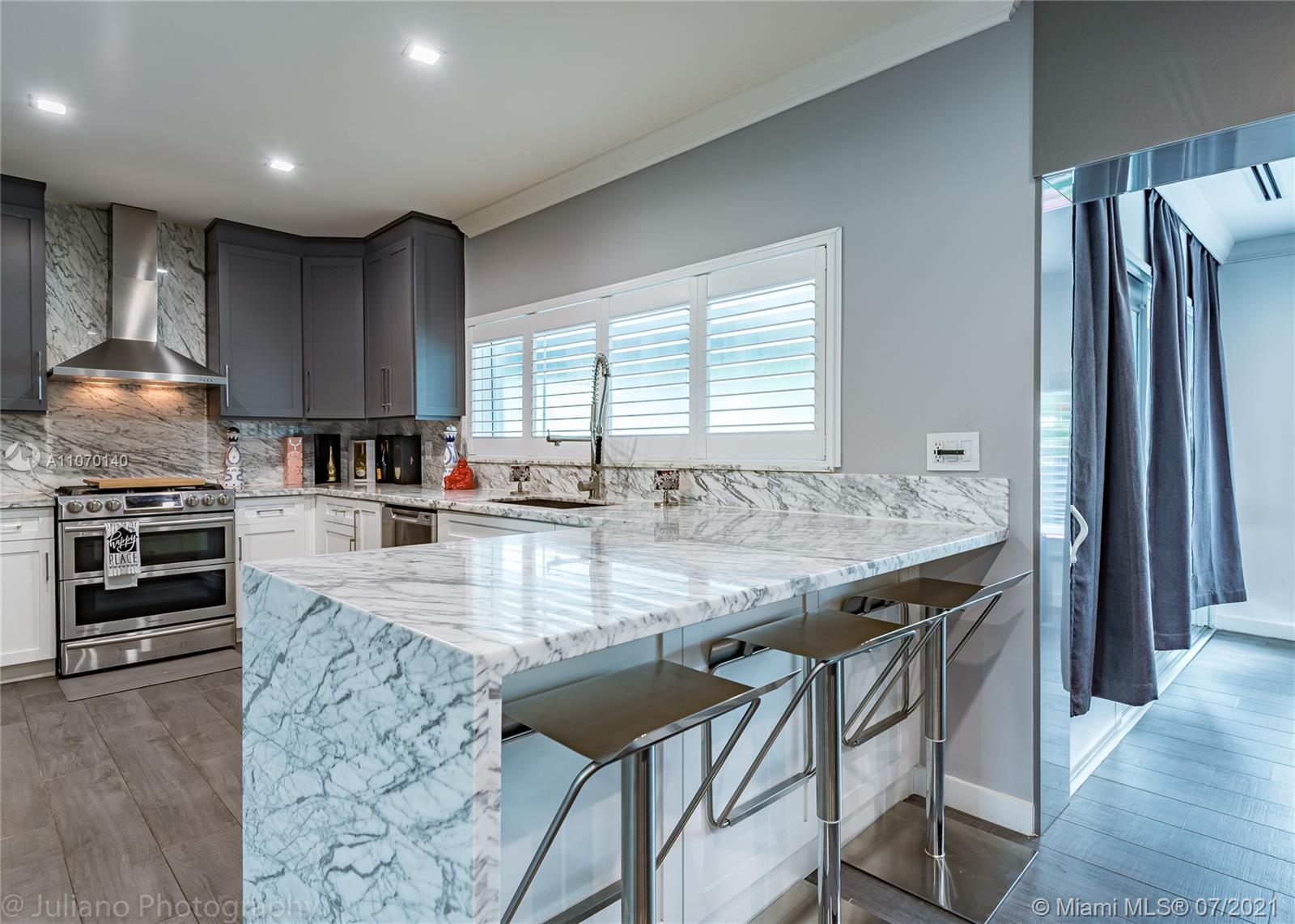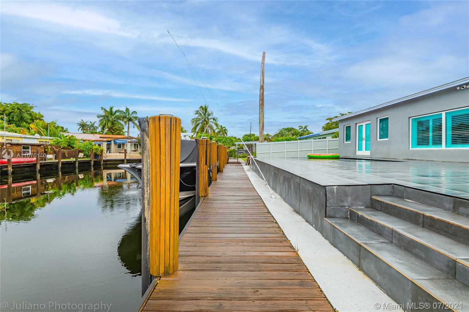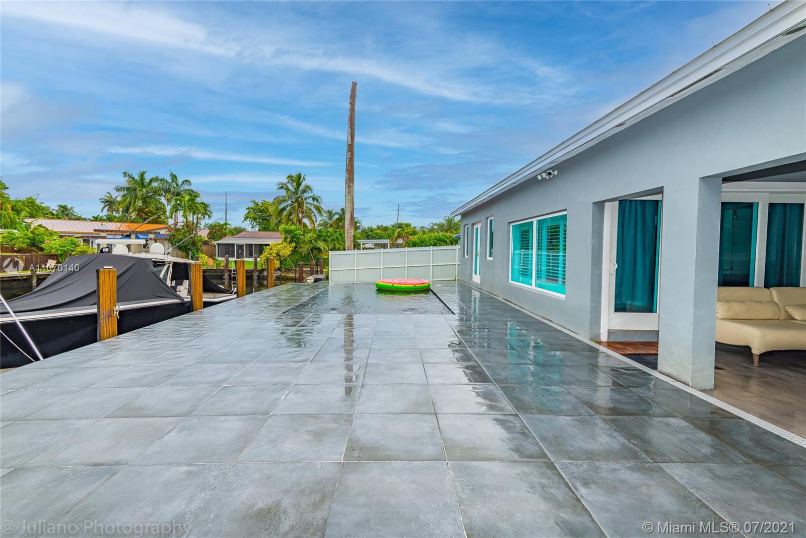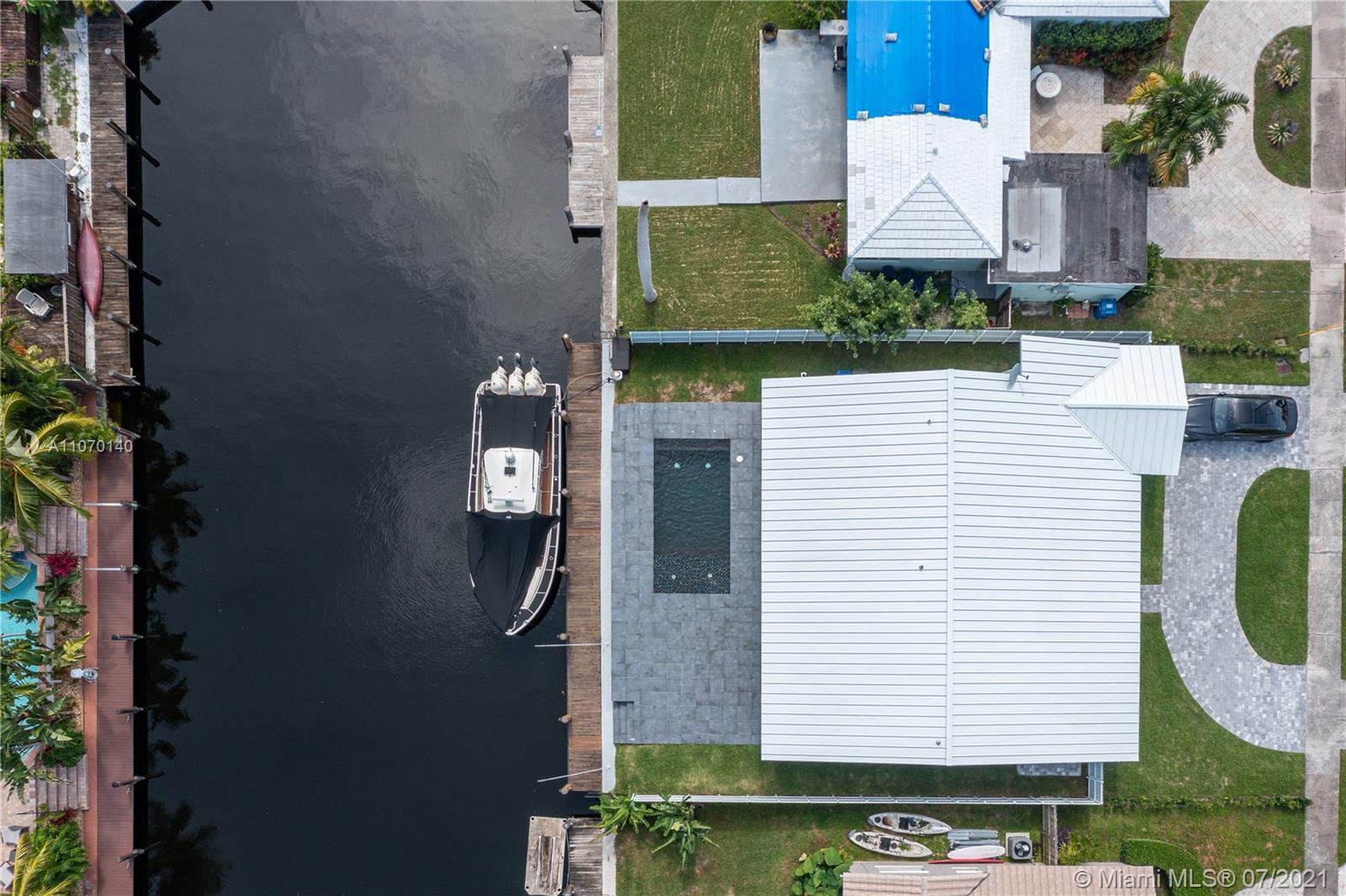 Step into this fully upgraded waterfront home of your dreams, just bring your boat. Brand new metal roof and impact glass. New 5 ton Carrier AC, commercial grade copper plumbing, Tankless gas water heater with temp control, LG washer and gas dryer , Samsung fridge with touchscreen, Fisher Paykel dishwasher, Samsung gas stovetop, wall unit and tv's, 8 camera and motion sensor system, light up temp control bathroom sinks, recessed lighting, California shutters, aluminum fence. Italian porcelain tile inside the home and Marble counters in the kitchen. Butler pantry with fridge as well as office/den with wine racks. The backyard has a 65ft boat dock with ocean access and no fixed bridges. The pool has a Baja beach entrance with beautiful tile. Huge bedrooms and master bathroom So many upgrades