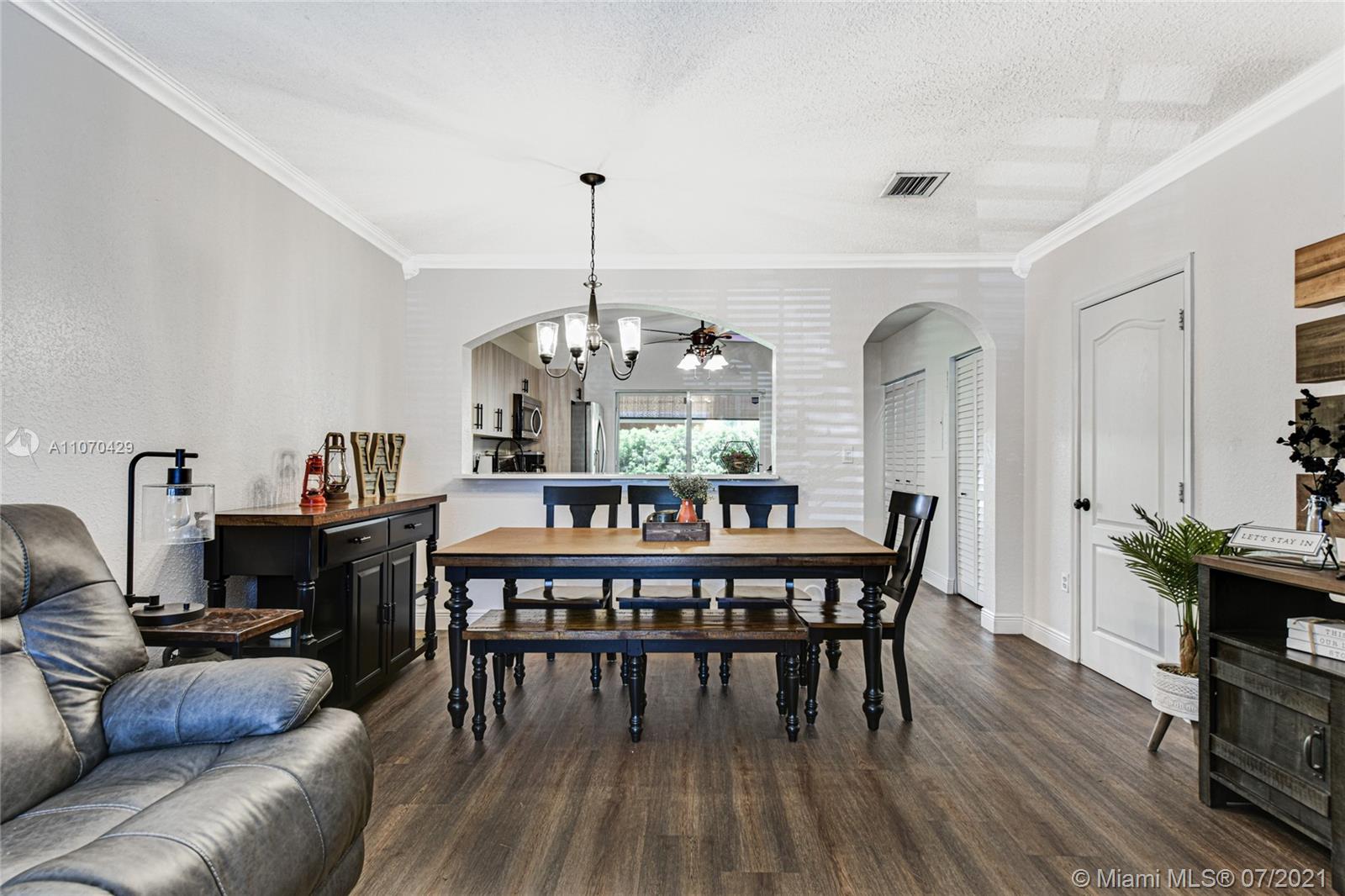 Astounding 3 bedroom, 2.5 bathroom corner unit townhouse in the well maintained community of Villas Canarias! Walk inside and fall in love with this beautiful home! Offering amazing space with a charming living area, updated kitchen over looking the living room with stainless steel appliances and view of the private patio, laundry closet with state-of-the-art appliances, ample storage space throughout. Upstairs you have 3 commodious bedrooms including a grand master suite and tastefully updated bathrooms. New roof in process! Located in a 24-7 gated community with everything you need nearby! Conveniently located by Hialeah Gardens Elementary, parks, Aldi Supermarket, shops, restaurants and plenty to do! You do not want to miss out on this grand opportunity!