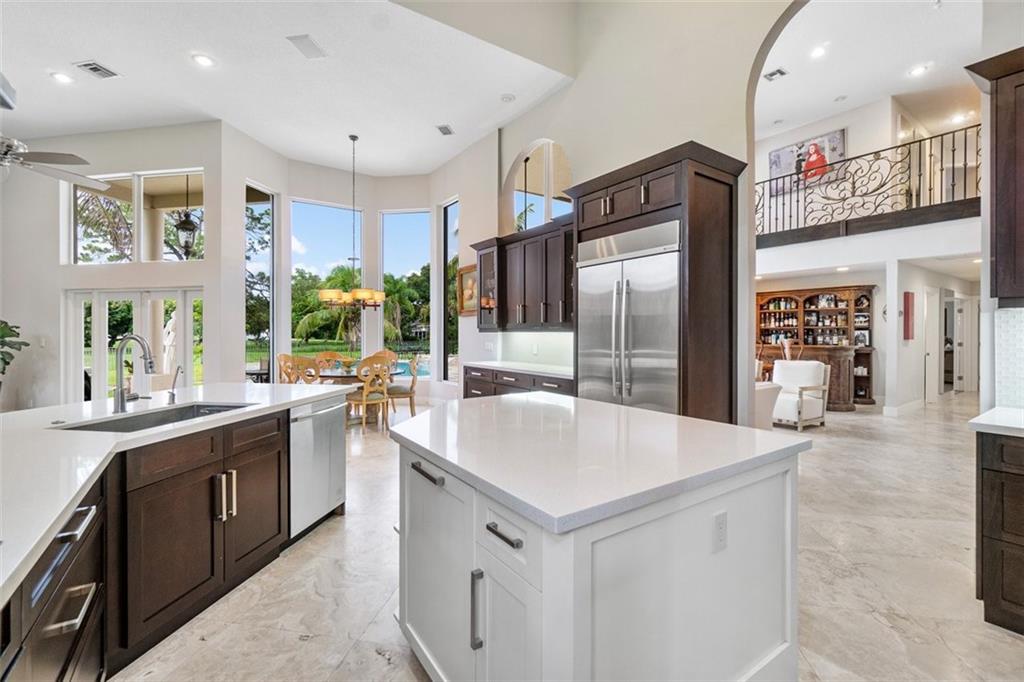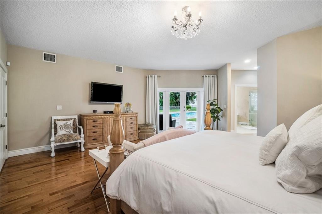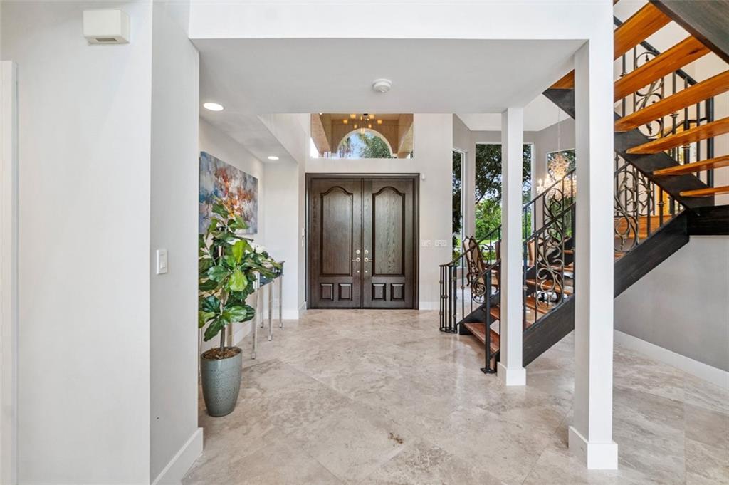 Nestled within majestic oak trees & sited on a sprawling acre is this stunning estate home. Grand light-filled living areas are graced with dramatic floor-to-ceiling windows/glass doors & allow for glorious views of the outdoors & pool area throughout the home. Uncompromising finishes & impeccable taste resulted in a chic yet relaxed residence. The Family room/kitchen area is impressive in size & features an updated custom island kitchen with w/ fine wood cabinetry, quartz counters, a Stack stone accent wall, & top-shelf appliances. Sublime luxurious 1st-floor master suite with a beautiful spa bathroom. Serene Outdoor living spaces include a stunning oversized pool with a spa, porches, balcony & expansive backyard. Other offerings: Large loft, some impact windows. fabulous flooring & more.