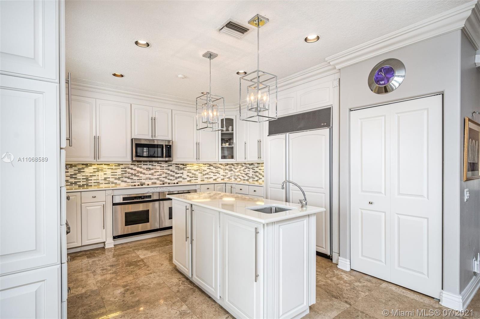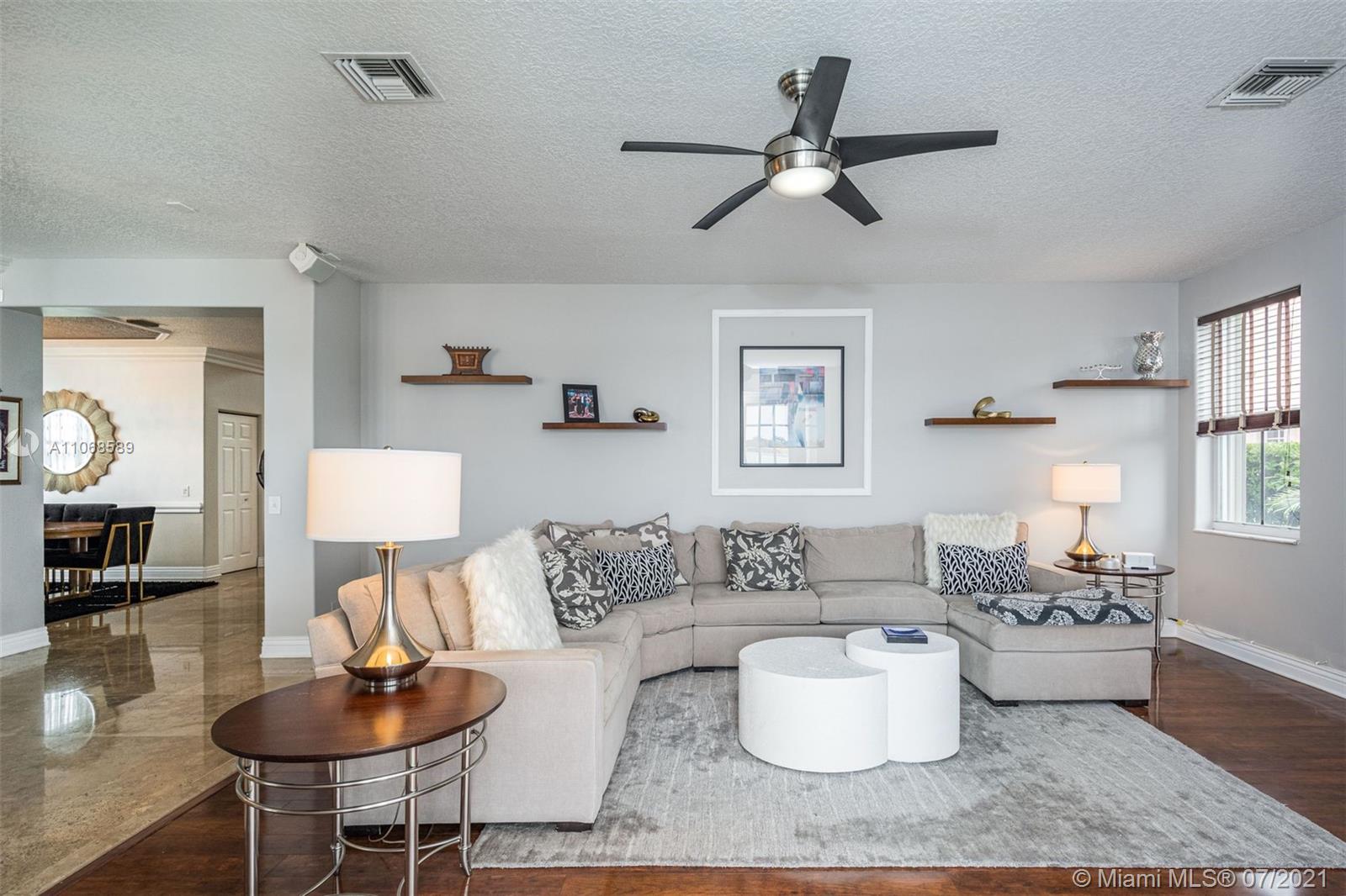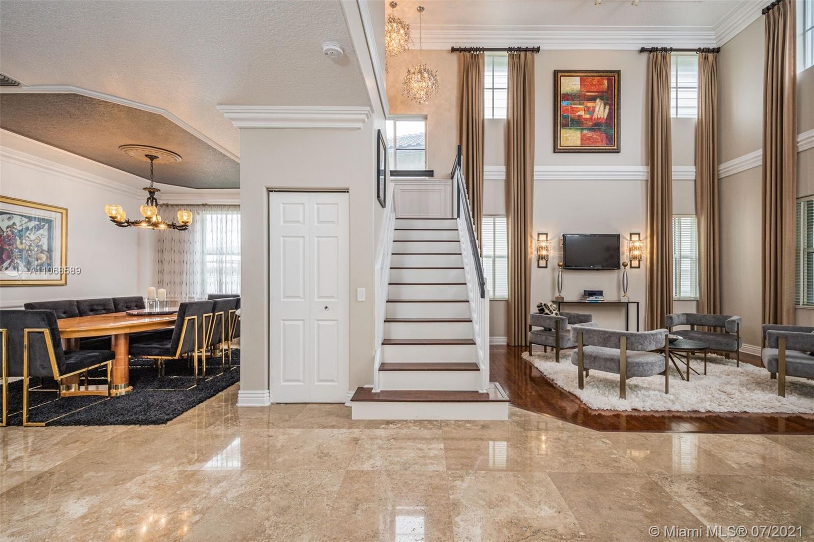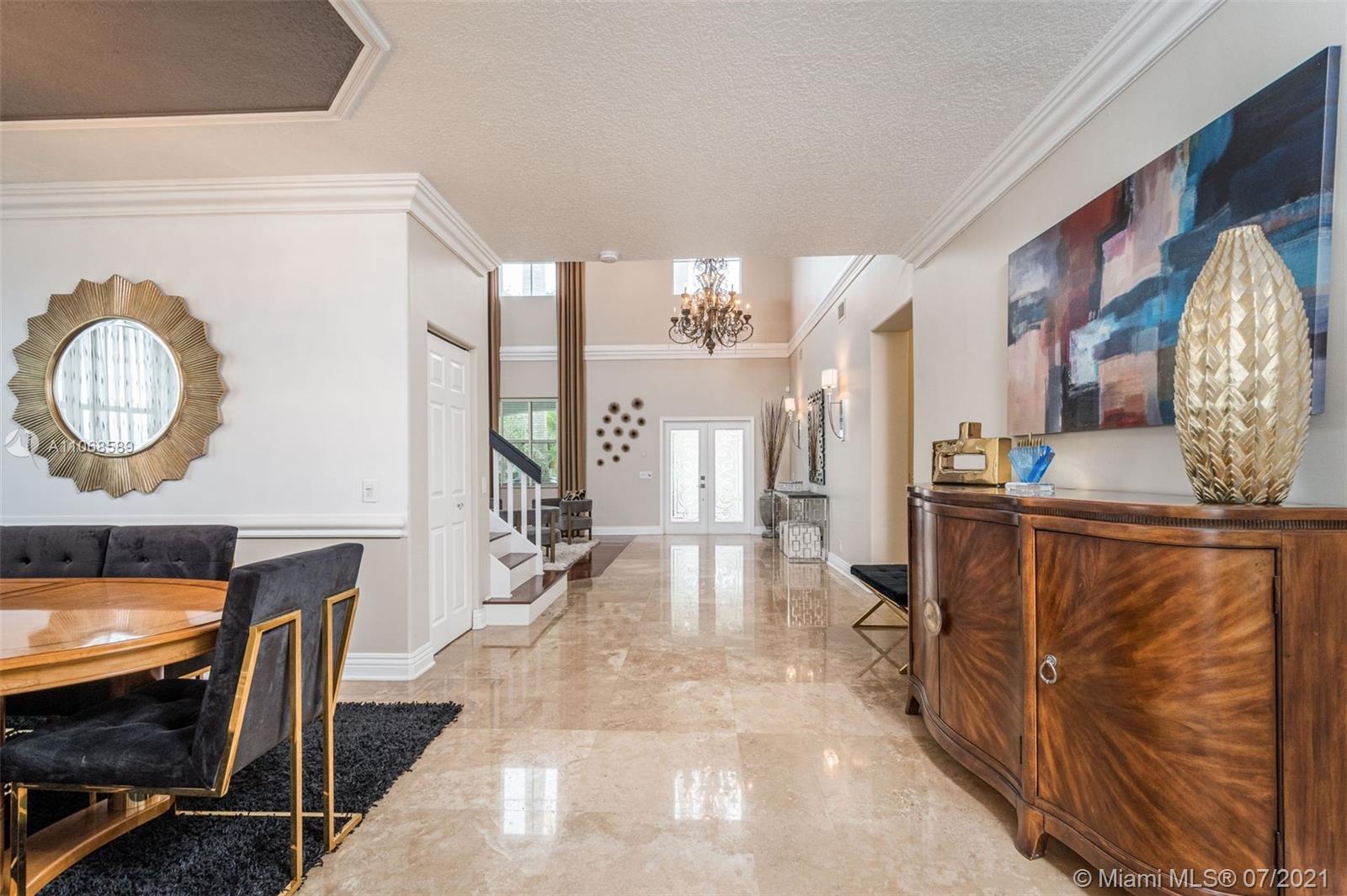 Enjoy one of the most spectacular wide-lake waterfront views from this completely updated pool home. Situated on one of the largest lakes in Weston, this 3,700sf 5 bed/3 bath professionally decorated home has it all. No detail has been overlooked. NEW ROOF!! Marble & wood flooring throughout. 1 bedroom & bath downstairs. Open kitchen design including subzero refrigerator & double ovens. Oversized master suite with sitting area, 2 large walk-in closets and coffee bar. Modern master bath w/ separate vanities, bath tub & walk-in shower w/ multiple shower heads/body sprays. Custom built-ins including bar and wine storage, pool/spa automation, freshly painted, modern window treatments, accordian shutters, & A+ schools just begin to tell the story of this sophisticated Highland Meadows home.