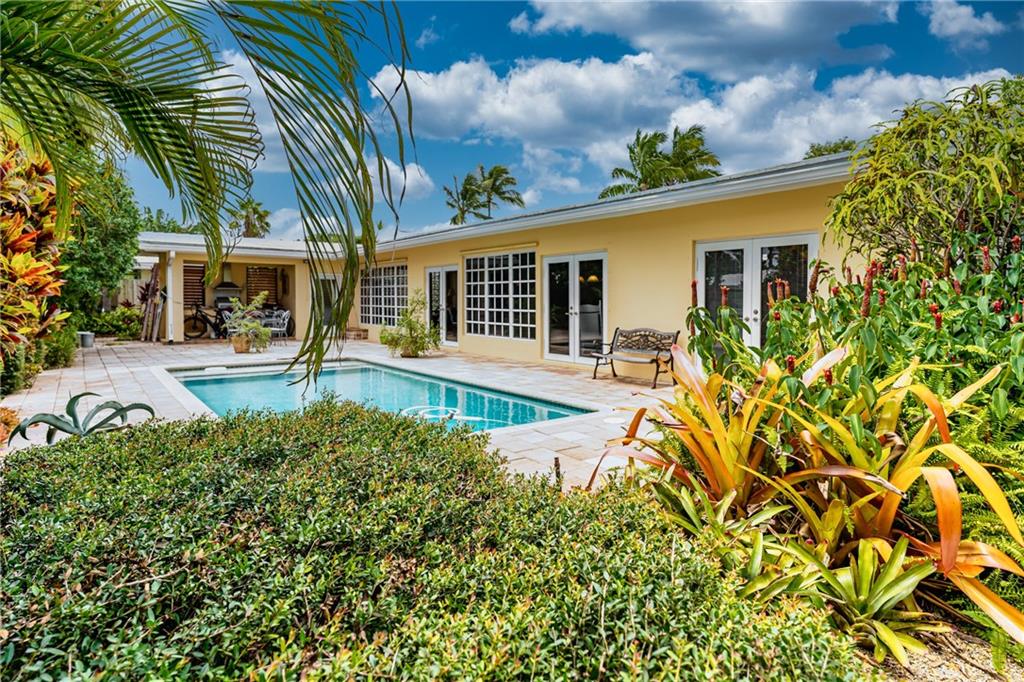 This 3 bedroom 2 bath home in the highly sought after Coral Ridge neighborhood and Bayview school district features tropical and lush landscaping on the 10,010 sqft fenced in corner lot. The 2,216 sqft under air boasts a magnificent great room that captivates and amplifies the exposed beams and tongue and groove ceilings for that WOW feeling when you open the front door. The fence has a double gate that allows for boat or RV parking. The backyard is great for entertaining alongside the pool and BBQing in the Summer kitchen. 2 newer A/C units and updated bathrooms make this house ready for you to call it home.