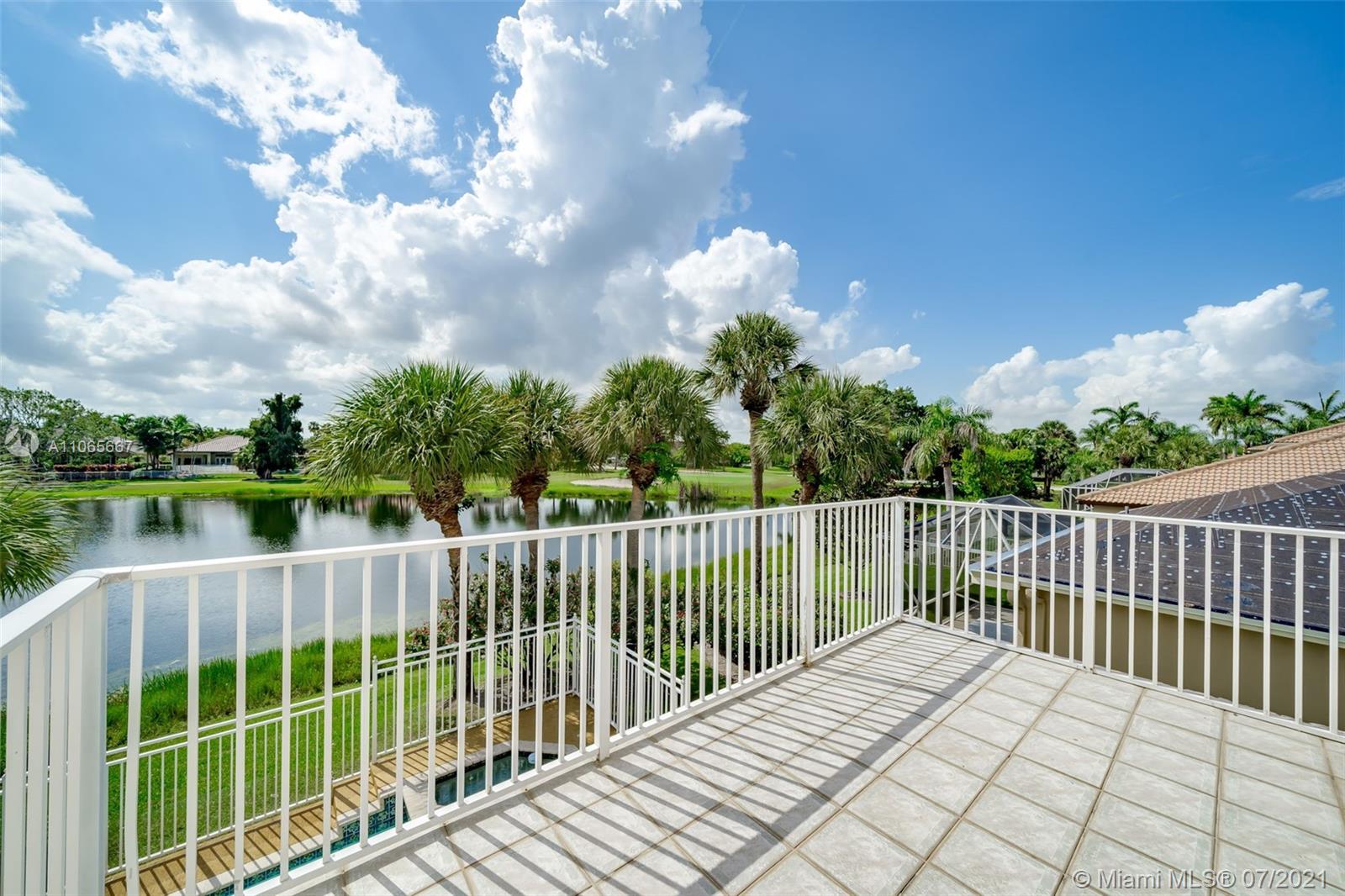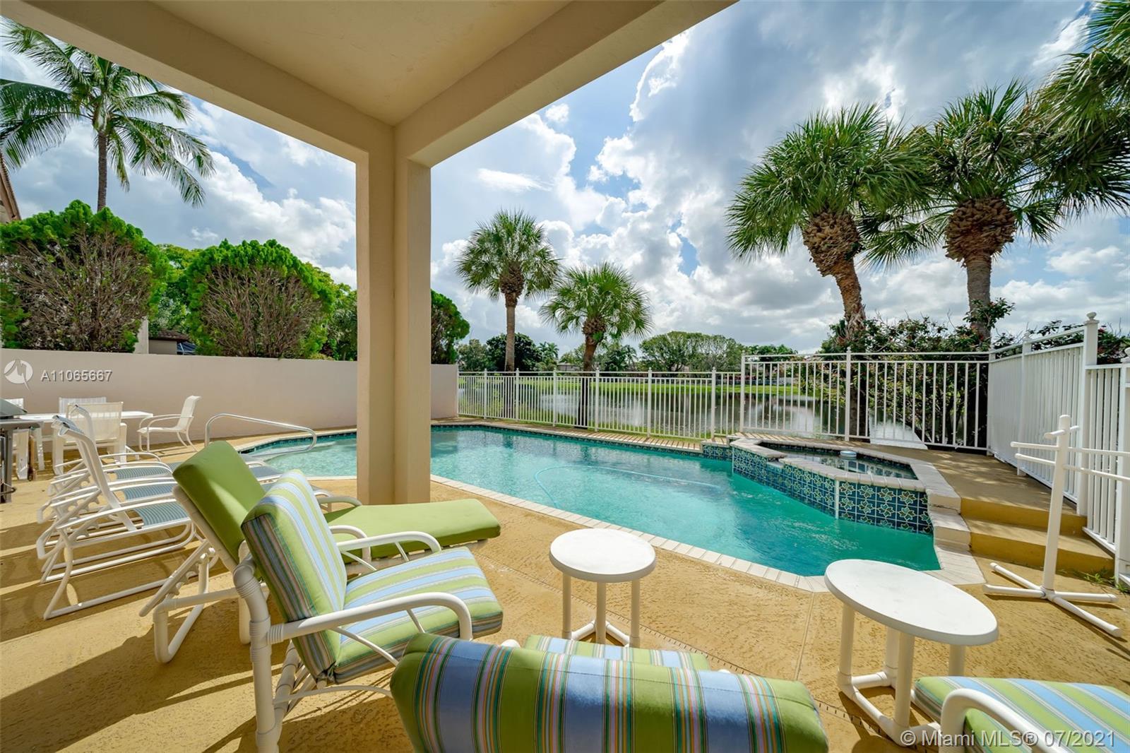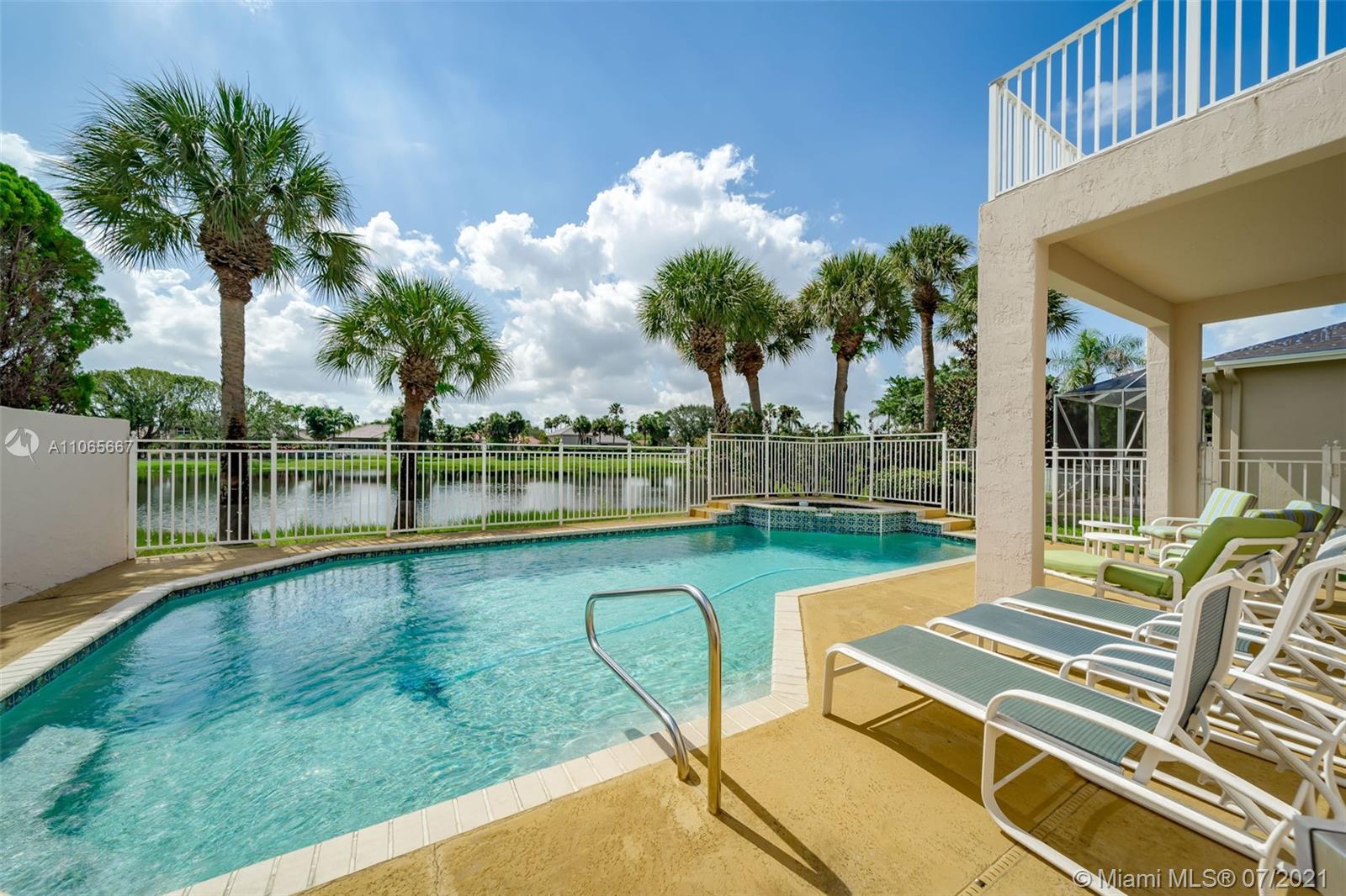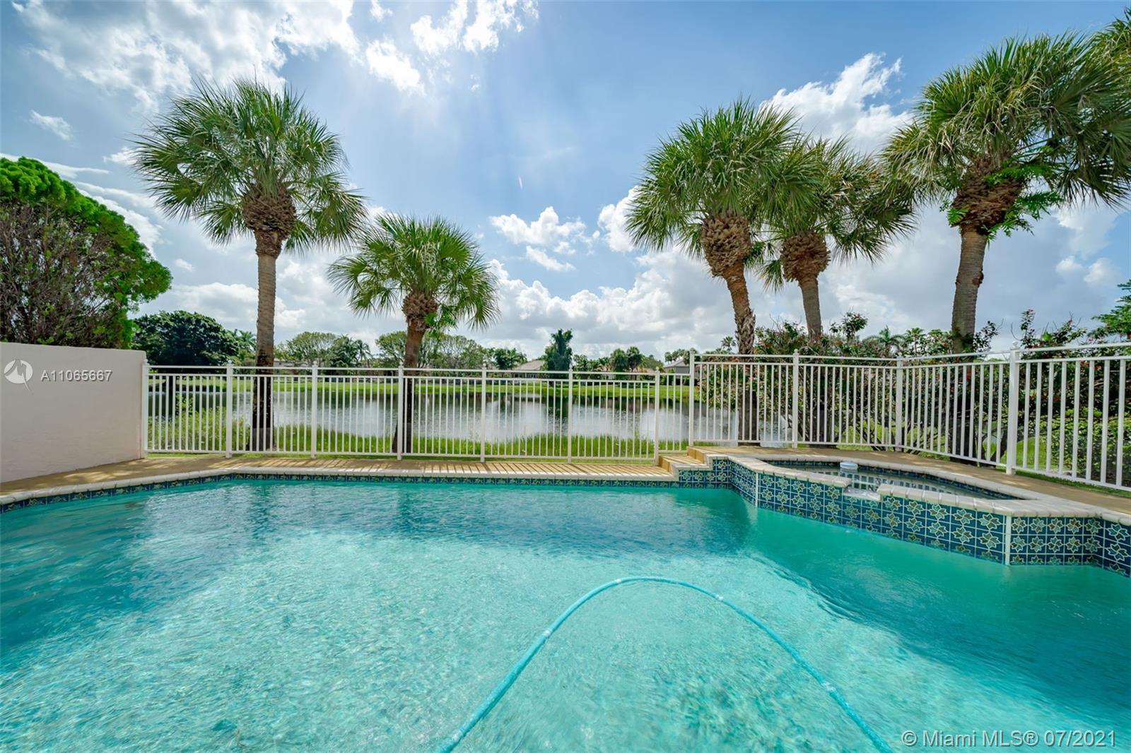 Spectacular 4/3 waterfront Single Family Home in Grand palms! Definitively one of a kind! Impeccably maintained and being sold directly from original owners. House features a balcony with water views, heated and fenced swimming pool, hot spa, 2017 AC, new water heater, accordion shutters, laminate floors throughout and a bright/spacious layout. Enjoy Grand Palms Golf Resort lifestyle: Community offers gated entry, 24 hr security, beautiful palm lined streets, green spaces, children playground, biking/jogging paths and a peaceful atmosphere. HOA includes basic cable, ADT alarm, lawn service, exterior painting and pressure cleaning. A+ Charter School System and great public schools. Shopping and restaurants just outside community. Great Loacation!