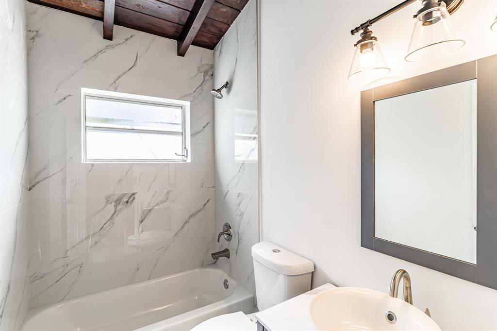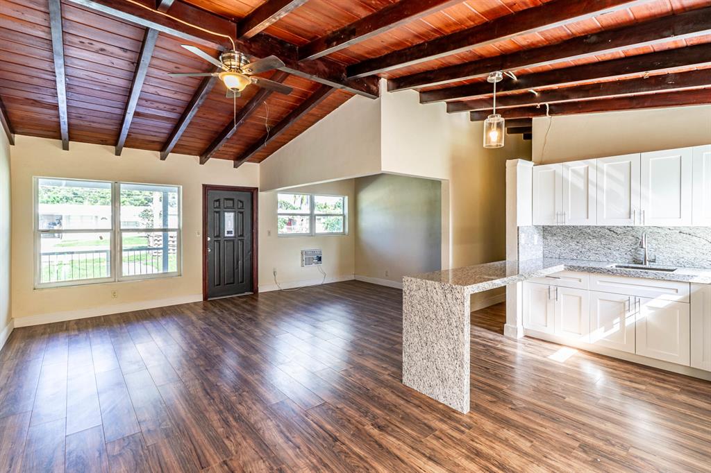 Fully renovated and ready for you to make it your own! Soaring tongue and groove ceilings welcome you home to this wonderfully spacious house along with custom wall coverings. You'll love the granite counters with full back splashes in the kitchen along with large walk-in pantry and white shaker cabinets. Stainless Steel appliances coming within two weeks. All laminate flooring and renovated modern bathroom. Spacious Florida room with a/c. Appreciate the outdoor life with a fully fenced yard and new landscaping. This one won't last.