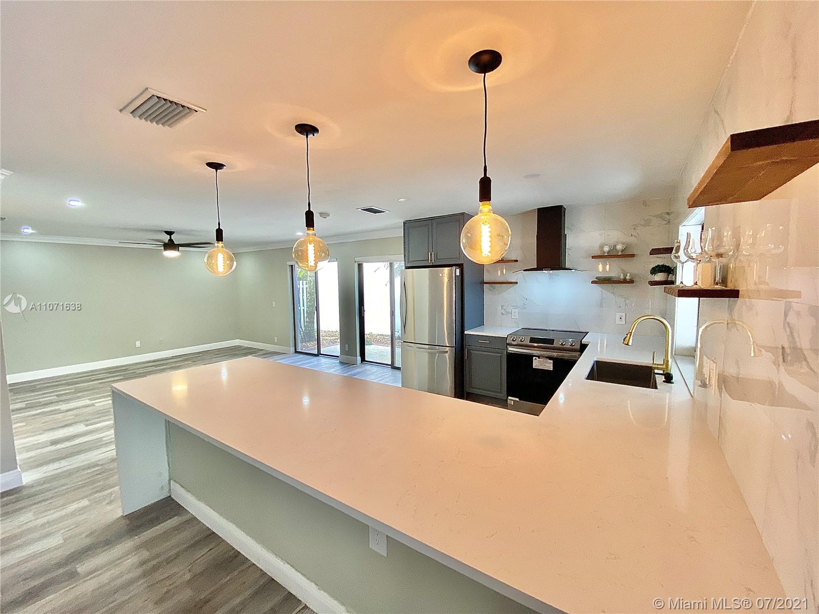 Are you looking for a freshly remodeled home in the heart of Weston? This architecturally distinct property offers a unique floor plan, featuring all new flooring, new interior paint, smooth ceilings, new stylish lighting, a sleek kitchen with quartz counters, plenty of storage & work space, cooking hood vent and all stainless appliances. All bathrooms have been updated with new tile, vanities & mirrors. Stay cool with brand new ceiling fans with lighting in every bedroom & family room, sheer window blinds throughout, Roof 2010. Relax in your covered & screened patio & fully fenced private yard with concrete deck. Centrally located in quiet street, within easy reach to community pool, Country Isles Park, Midtown Athletic Club & I-75. *New Accordion shutters are in the permitting stage*