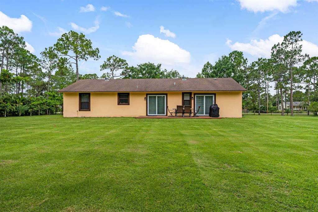 Don't let this move in ready 3 BR single family home in The Acreage with NO HOA get away! Enjoy 1.15 acres of a conveniently located, immaculately landscaped lot with your own shed and fruit trees. This bright and open 3 bed 2 bath, 2 CG, updated home boasts a spacious split floorpan with vaulted ceilings, new ceramic floors, new hot water tank with reverse osmosis water system, new Kenmore appliances, two beautifully updated bathrooms and new paint inside and out. You'll have sliding doors with impact glass from the kitchen and master bedroom to your huge patio/ backyard and shutters for all windows/ doors. Zoned for top rated schools located just a few streets into The Acreage with easy access to Northlake Blvd, minutes to PBI airport and close to downtown West Palm Beach.