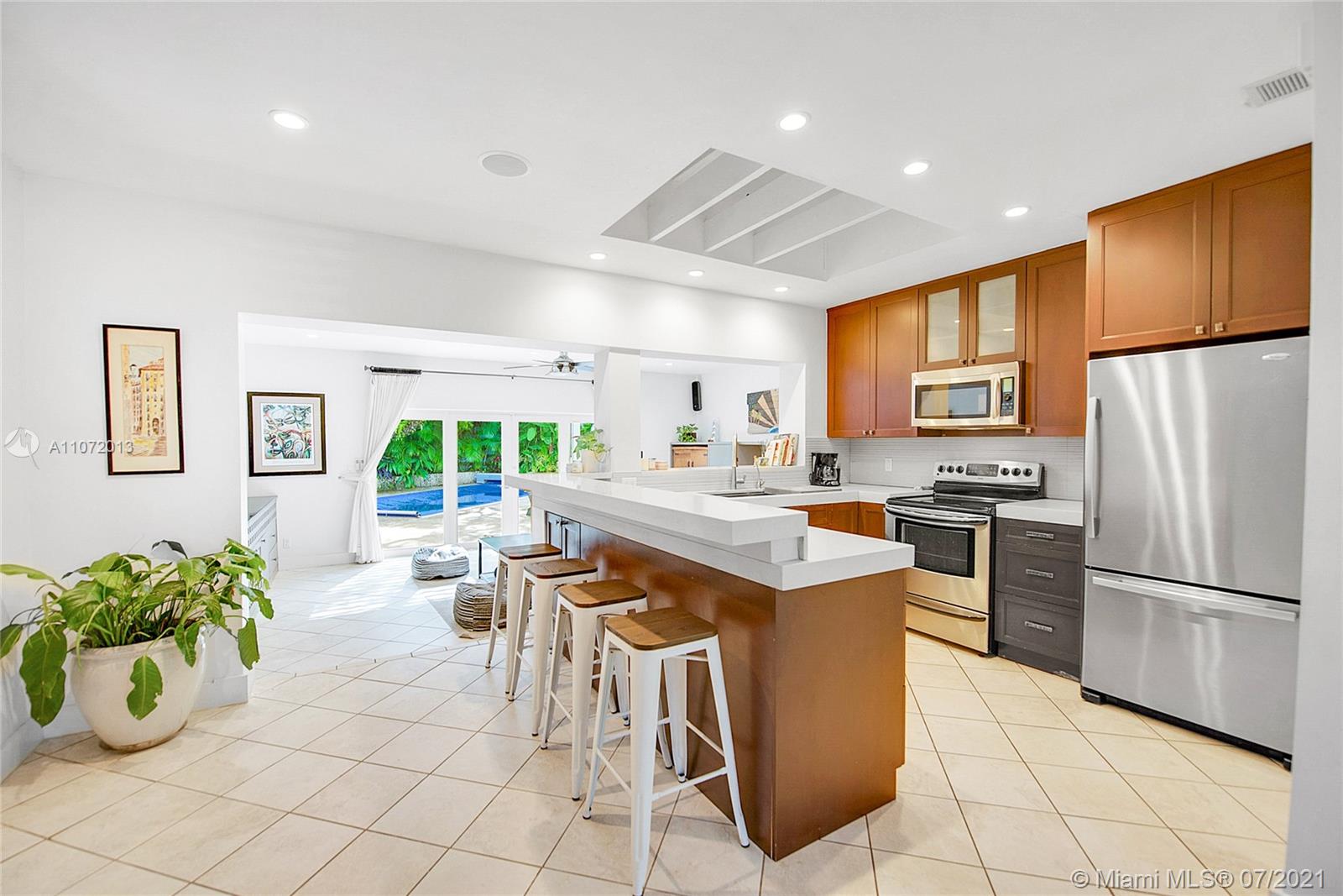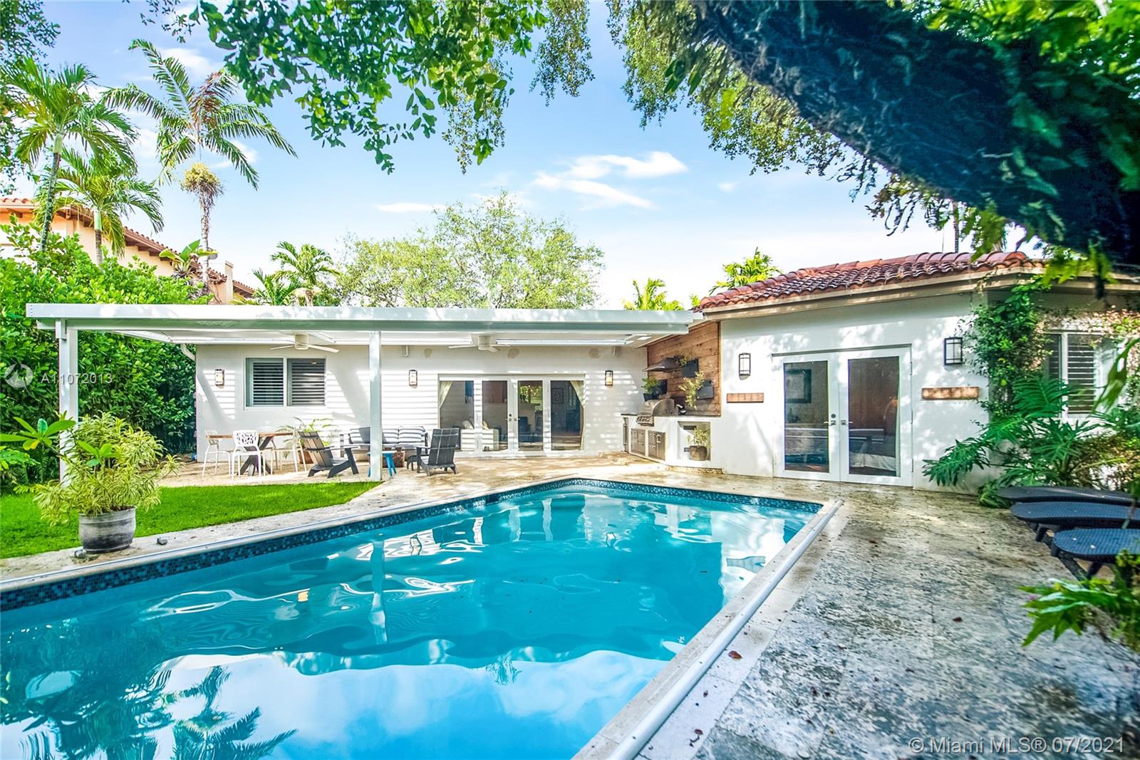 Gated private home located in N Grove, a true tropical oasis. Ivy-covered walls offer a charming entrance. Spacious brick courtyard is ideal for meditation/dining/entertaining. Expansive backyard w/ salt water pool. Hurricane windows/doors. Quartz & SS kitchen. Standby Generator. Fabulous family/media room w/ french doors overlooking patio w/ ample natural light. Property has lush landscaping w/ beautiful palms & oak trees. Built in outdoor kitchen, operable pergola and outdoor shower. 2 car garage. Rear gate opens to cute cul-de-sac on Micanopy Ave. Walk to bay & marinas, not in flood zone. Near Ransom school, blocks to Coconut Grove Village, Coral Gables & 15 min to SoBe. Owner is open to: furnished option and permitted plans for full interior renovation to be approved, valued at $75,000