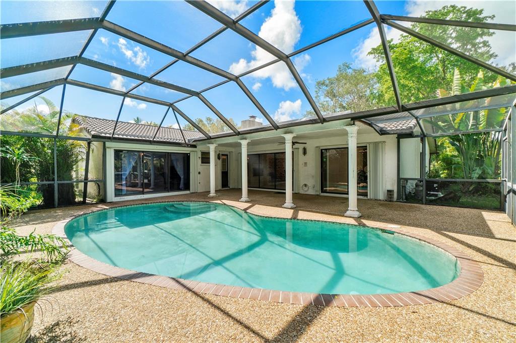 CASH ONLY!! Single family 3 bedroom plus 2 more spacious flexible areas , tons of possible potential .Screened pool on canal with NO HOA plus accordion shutters!!! Enter through double doors into large marble foyer to a large Vaulted smooth ceilings , open plan combining white kitchen with tons of cabinets, snack bar and large breakfast area for easy entertaining to adjoining living areas. Screened pool and large patio surrounded by greenery make the backyard very private. CASH OFFERS ONLY due to roof age . House needs lots of TLC and updating which was taken into consideration when pricing the house. Lots of storage, banana tree.