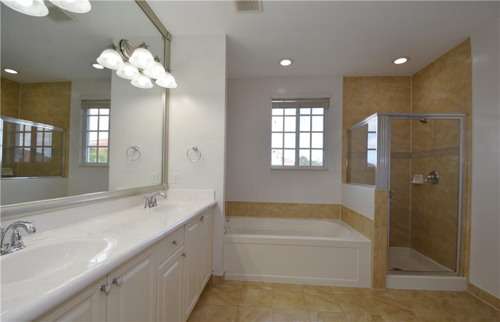 Beautiful water view 3/2.5 three story townhome in Calabria. This turnkey home features brand new luxury vinyl planks throughout the entire property, with tile in upstairs bathrooms, new window treatments, an open floor concept kitchen design, granite counter tops, hurricane impact windows and doors, second floor owner's suite with whirlpool style bathtub and separate shower, custom California Closets in all bedrooms, an air purifying system with custom filters, wired for stereo surround sound, equipped with Smart (Ness) thermostat and a Ring doorbell. Washer/dryer laundry room is conveniently located on the third floor. The community features a pool, playground, and a basketball court, with easy access to major highways and shopping centers. Pets are welcomed.
