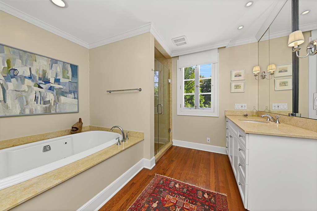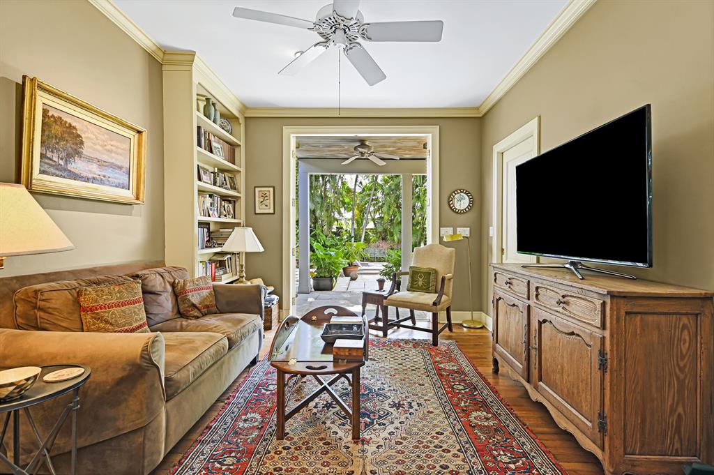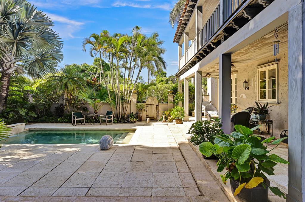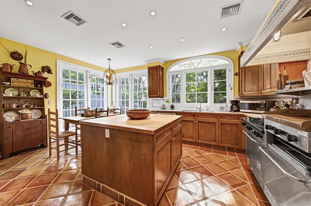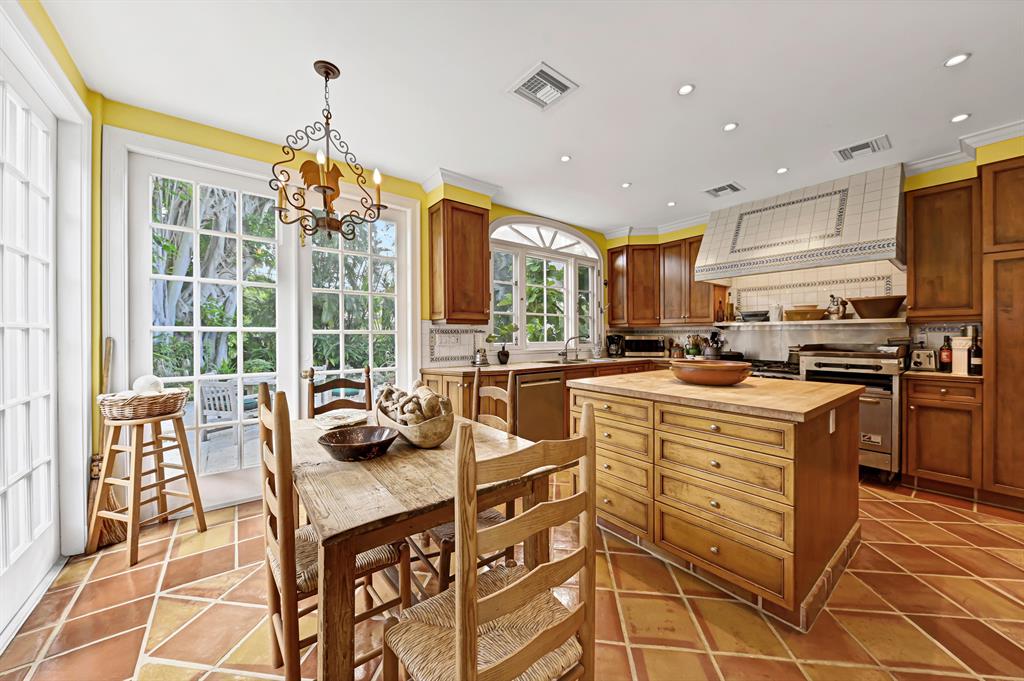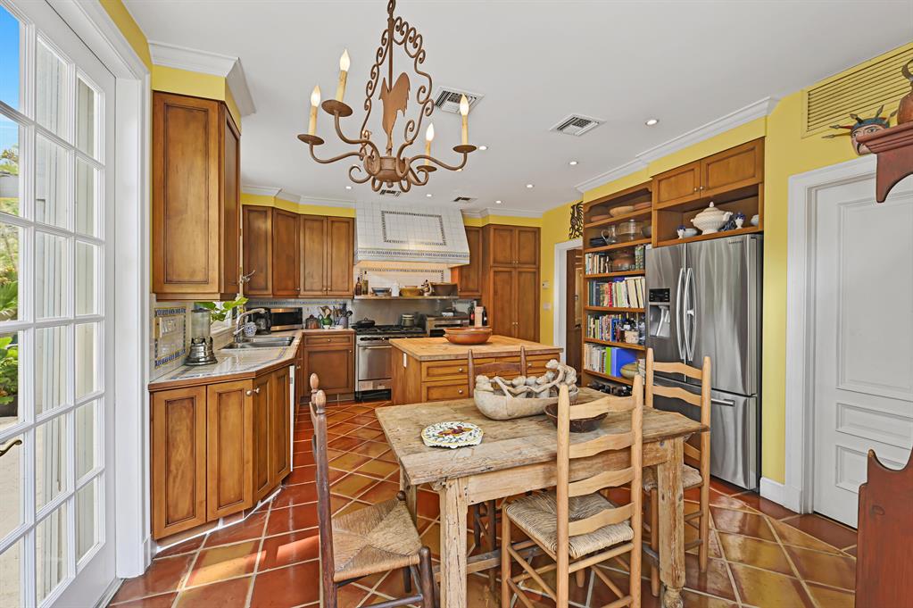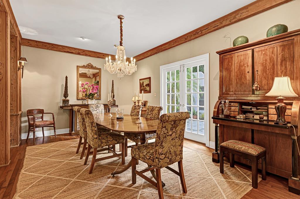 This 1926 Historic Gem was meticulously restored with all new electric, plumbing, central air, fixtures, custom cabinetry and tile. Seven sets of french doors allows access from all living spaces to the garden, pool. and private terraces. Large living room and formal dining room have pecky cypress details on columns and beams. Formal Dining room with french doors opens to garden courtyard. A elegant setting for your next dinner party. The spacious chef's kitchen, features a professional six burner gas/range/with double oven, grill and salamander. This eat in kitchen with french doors opening to the garden is a start to an amazing day spent in the garden and pool areas. The pool area is graced with mature landscaping, native foliage with coquina styled columned porch.