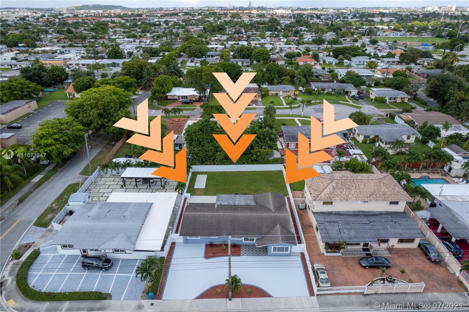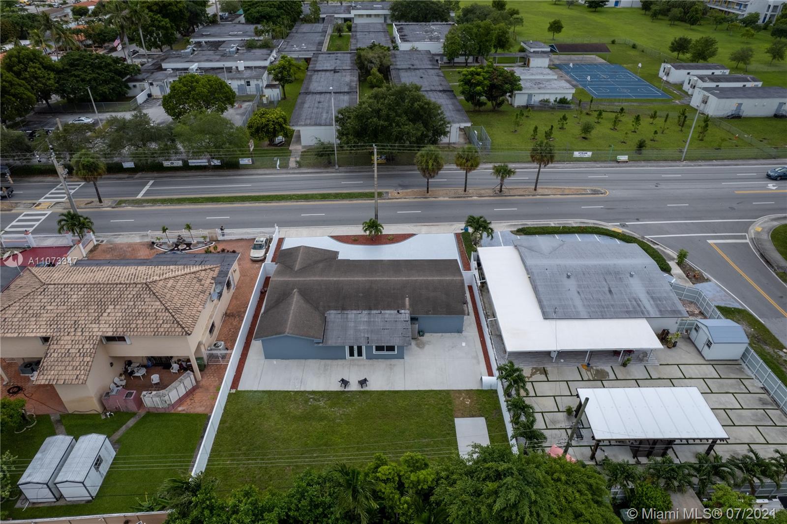 No expense was spared on this spacious 4 bedroom 2 bathroom home in the wonderful neighborhood of Palm Springs Estates. The owners were thoughtful and precise in choosing every feature in this home. From the beautiful impact windows and doors, large circular driveway, large tile floors throughout, recessed lighting, a modern style kitchen with high gloss cabinetry and stainless steel appliances, beautifully designed bathrooms with granite vanity tops, an office space with a backyard view, and a big backyard with an open patio great for entertaining. Garage was converted into a laundry room and another space for a gym or an extra office space. A 5-ton A/C unit inside and outside were upgraded in 2018, Roof was done 7 yrs ago. Close to schools, shopping, restaurants, and major highways.
