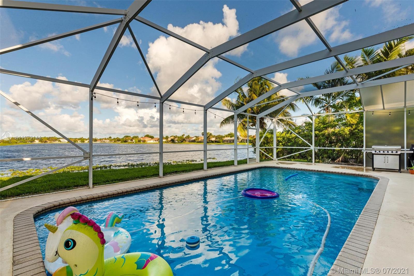 Rarely available lakefront home with a pool in North Lakes, a highly sought after gated community in Weston! Enjoy the spectacular wide water views from your backyard. This renovated 4 bedroom, 2.5 bath home features a 3 year old roof, new A/C, beautiful new kitchen cabinetry & backsplash and a new hurricane impact garage door and front door. Wonderful floor plan featuring separate living area, dining room and family room. Screened in patio and pool make it easy to entertain all year round. 2-car garage and hurricane accordion shutters on all windows. This great community offers a 24/7 guard gate, a community pool, children play area and A-rated schools a short distance away. Easy access to I-75, I-595, Sawgrass Mall and more.