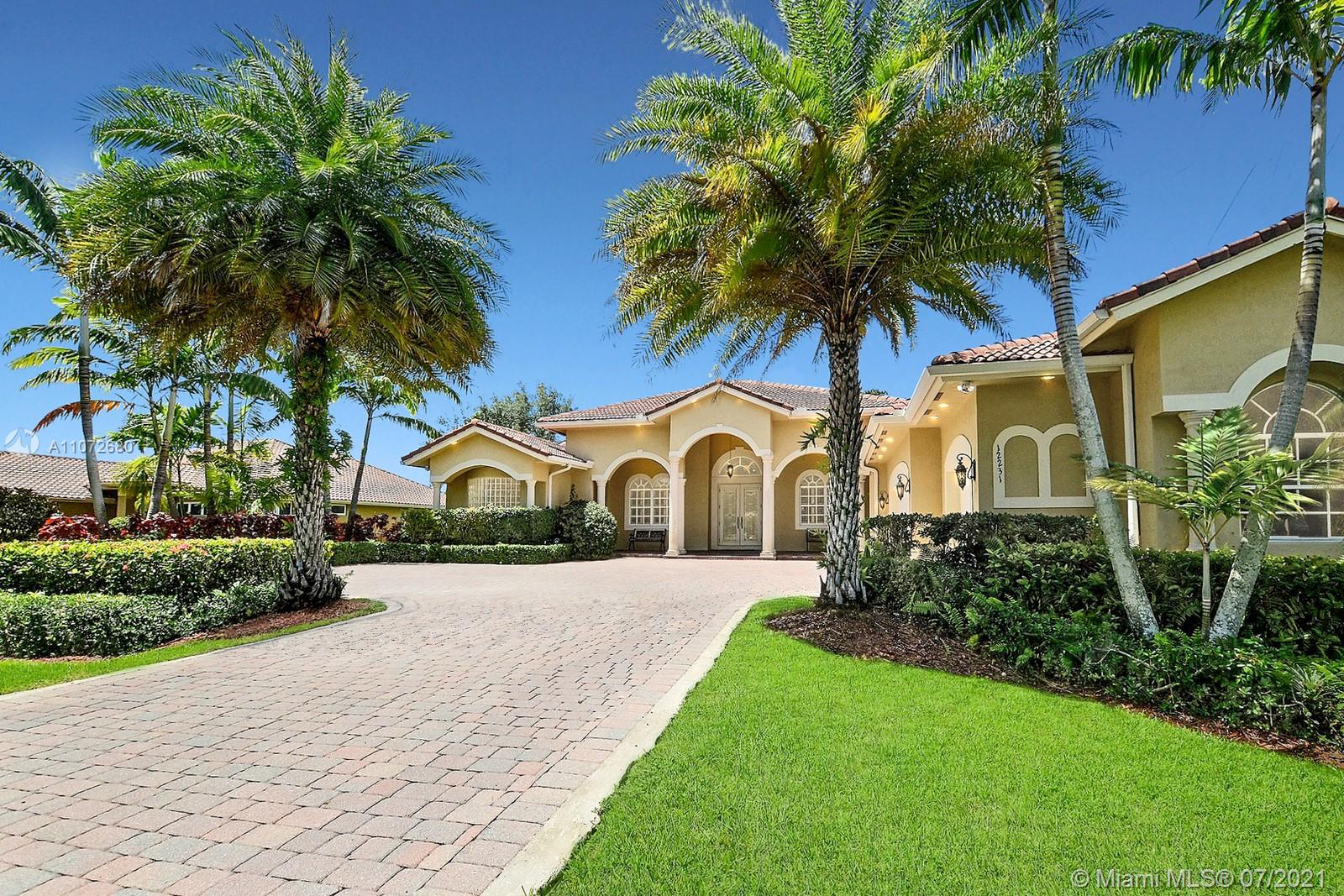 ELEGANTLY APPOINTED IN PROMINENT PLANTATION ACRES, THIS SPECTACULAR ESTATE HOME SITUATED ON A SPRAWLING BUILDER'S ACRE OFFERS 4,376SF OF LUXURY LIVING, 5 BEDS, 3.5 BATHS & OFFICE. DAZZLING HIGH-END REMODEL W TRAVERTINE FLOORING, WINE BAR & MODERN TOP OF THE LINE KITCHEN COMPLETE W MIELE APPLIANCES, CUSTOM CABINETRY & 10 FT QUARTZITE COUNTERS W WATERFALL & NO SEAMS. FABULOUS REIMAGINED LAYOUT CREATED OPEN CONCEPT LIVING. TRIPLE SPLIT FLOOR PLAN. FIFTH BED IS STATE OF THE ART HOME THEATER. STUNNING PRIMARY SUITE W OFFICE & VIEWS OF THE POOL & LUSH GROUNDS. ENSUITE SPA RETREAT HAS 2 CUSTOM VANITIES, SOAKER TUB & DOUBLE-ENTRY SHOWER. BACKYARD PARADISE W COVERED PATIO IS PERFECT FOR DINING AL FRESCO W STUNNING VIEWS OF THE FREEFORM POOL, WATERFALL & SPA. LONG DRIVEWAY & 3 CAR GARAGE.