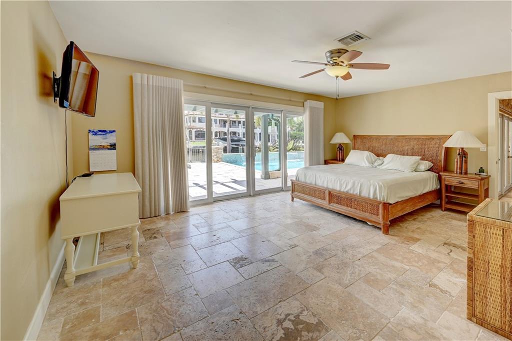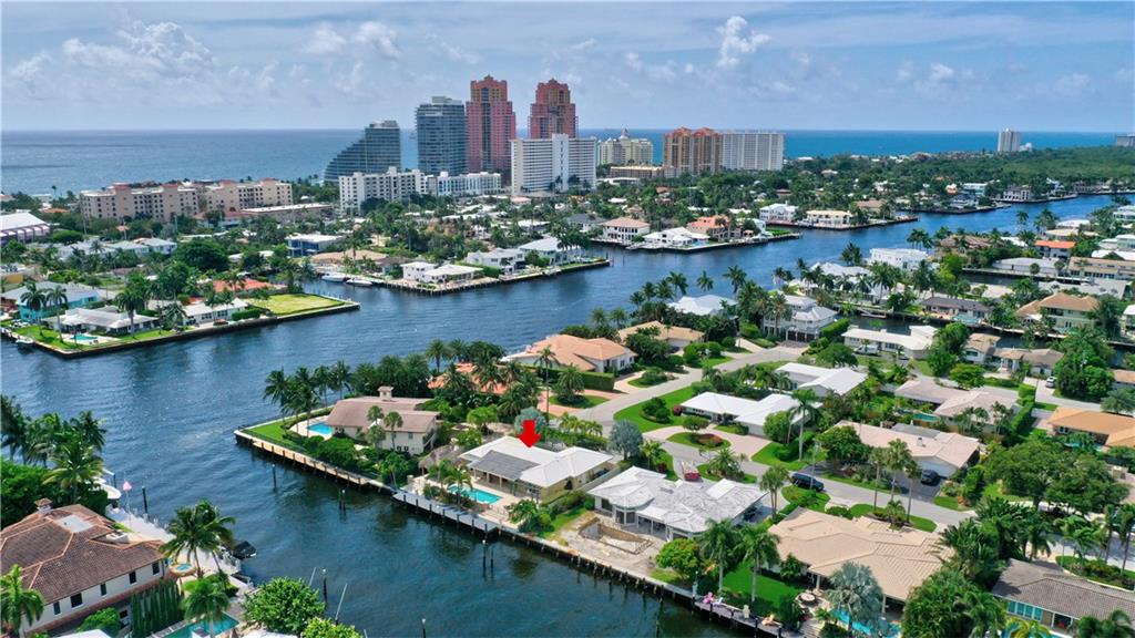 Coral Ridge one story beauty on oversized lot just one off the Intracoastal point. Perfect for those who love to boat and/or entertain. Large covered patio overlooks heated pool with waterfall/spa, outdoor kitchen with built in gas grill/gas burners, fridge, ice maker. Deep water ocean access with no bridges perfect for boaters with 100 foot seawall and 80 foot dock. Open floor plan has kitchen open to living room/dining room, all renovated with travertine tile throughout. Split floor plan. Master and guest bedroom overlook pool and water. Impact windows & doors, 2 car garage, built in cabinets for storage. Large circular gated driveway that gives added privacy/security. Bayview Elementary school district &close to private schools. Minutes to the mall, Las Olas, the beach, and more.