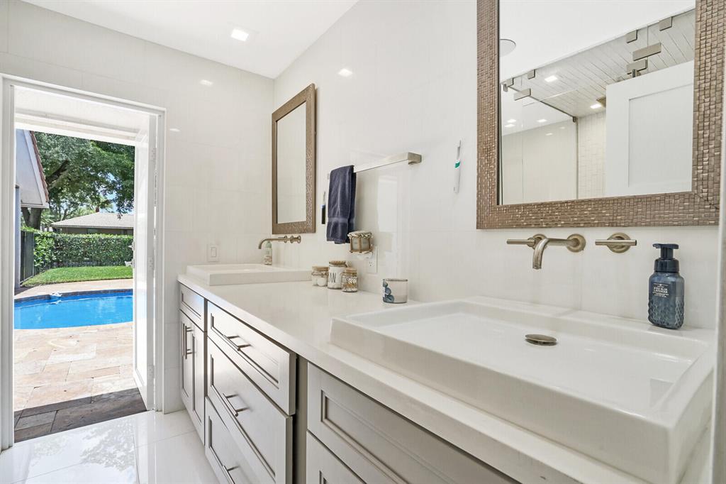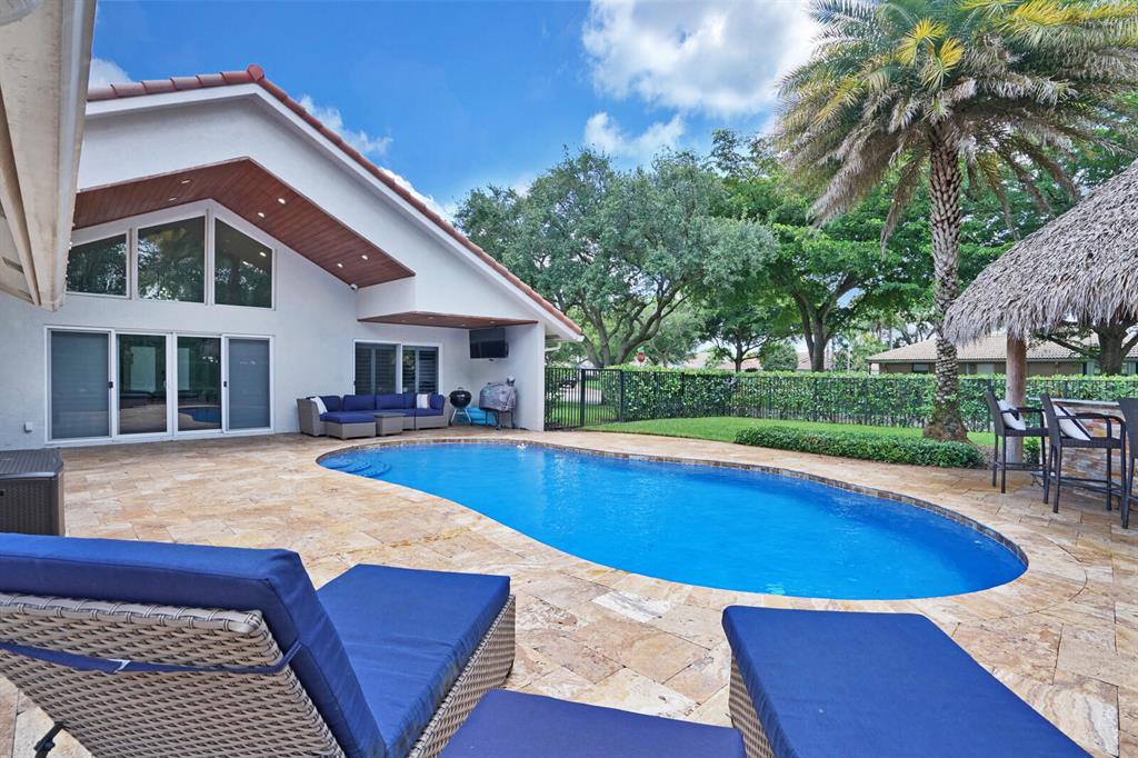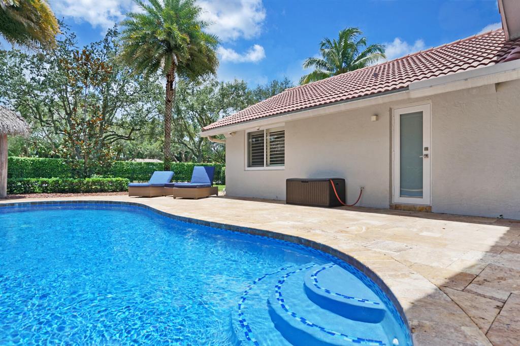Beautiful 4/2 TURN-KEY home on a large CORNER lot! FULL IMPACT WINDOWS, 2006 ROOF, high end porcelain flooring throughout, large master suite, completely remodeled chefs kitchen with top of the line cabinetry, QUARTZ countertops, SS appliances a large island & wine fridge. Both bathrooms have been fully remodeled with top of the line finishes, waterfall shower heads, even a STEAM ROOM SHOWER! Extra large backyard with plenty of room to entertain, a tranquil marble pool deck, outdoor entertainment area and Tiki Hut that has a built in bar and grill. Highly desirable neighborhood in a great school district and perfect for raising a family. This home is a true Gem. DO NOT MISS OUT, THIS HOME WILL NOT LAST! Open House 7/31/21 1230pm-3pm.