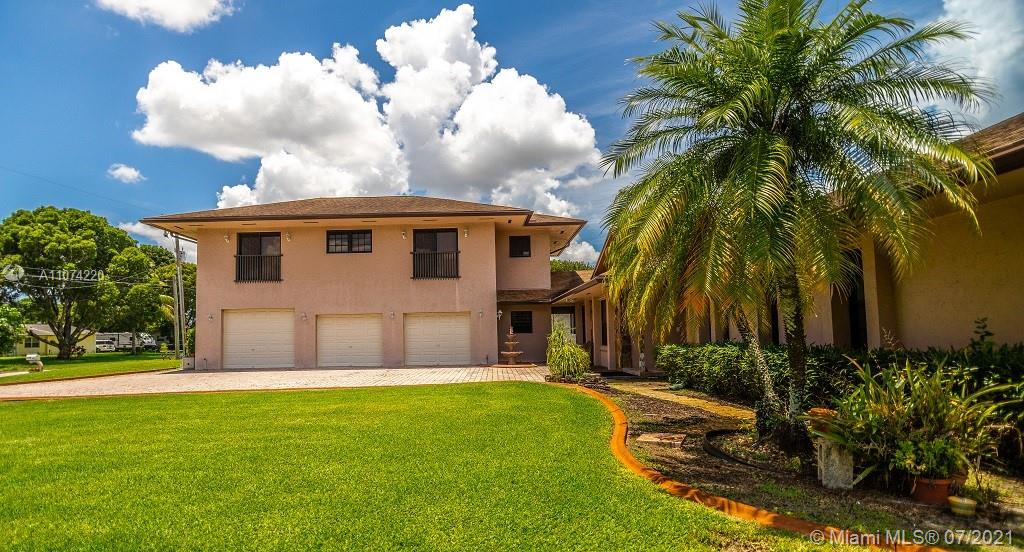 Opportunity Knocking! Ranch Style. Own your green acre of paradise in Davie. Bring your Horse, RV, Boat. MAIN HOUSE features: 3 beds 2baths. 9 foot Ceilings. Formal Dining area. Bright & open living room w/ceiling to floor windows to enjoy pool view & manicure backyard. Impact windows, except on one back sliding door, shutters for the entire home. Spacious Kitchen w/ Granite Countertops, impeccable wood cabinetry. Huge Master bedroom 19x20, Walk-in closets. Wood floors thru-out. The other bedrooms are carpeted. Screened back patio. Heated pool w/salted water system. 3 car garage. BONUS *Spacious APARTMENT*: 2beds 1bath also 9 Foot Ceilings, Huge closets! Solid Buildings! Built to last. Tons of natural light. NO HOA! Quiet Dead End. MATURE landscape. Also huge Barn!!