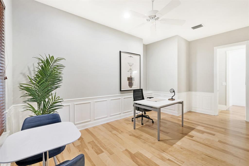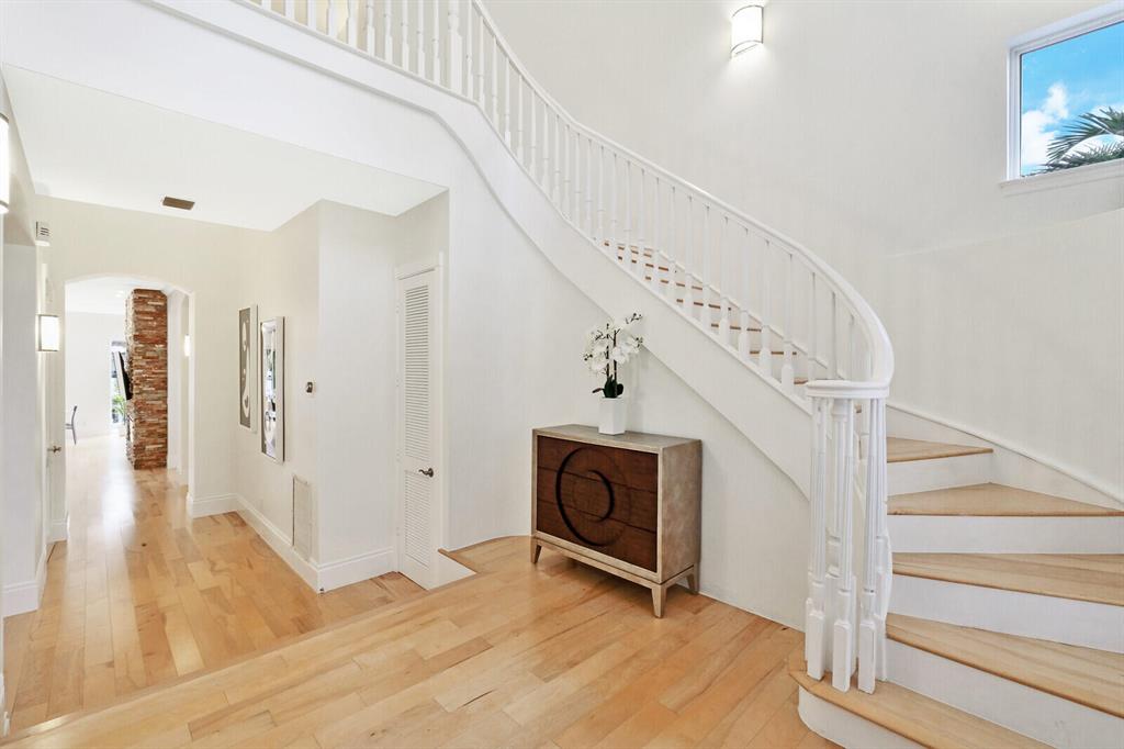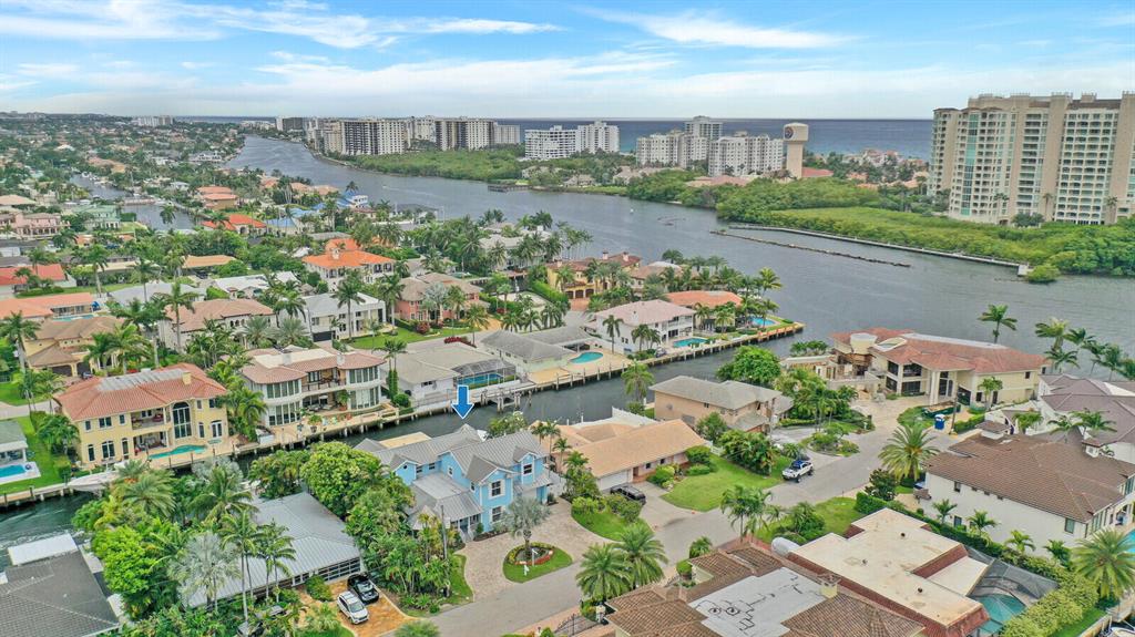 Waterfront Key West-inspired coastal living accompanies this custom-built home- with 4 bedrooms, a library/den, and a home office. This property is perfect for the buyer seeking a boating lifestyle. Minutes from The Boca Inlet with ocean access, 85 feet of waterfront, and a 50-foot dock with amenities such as a floating jet ski dock, boat lift, freshwater supply, 110 and 220 volt Electric with GFCI, and dedicated cabana bath. From the moment of entry, the soaring foyer leads to the 2nd floor and the 4 bedrooms. Downstairs the front living area can function as a library, formal living room, game room, or den. From this room is access via French doors to the oversized private office. The open main living area is fitted with natural hardwood floors throughout, and both it and the kitchen