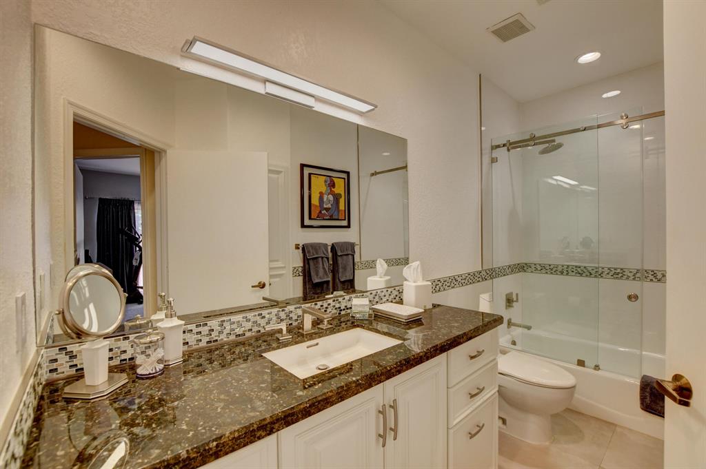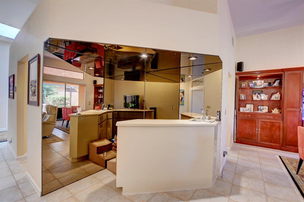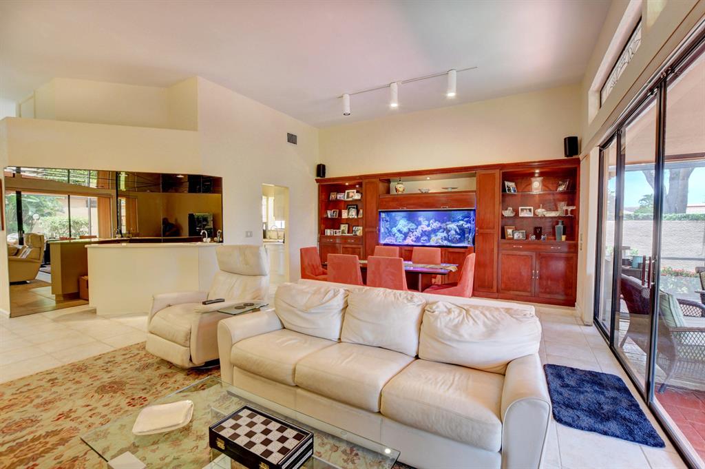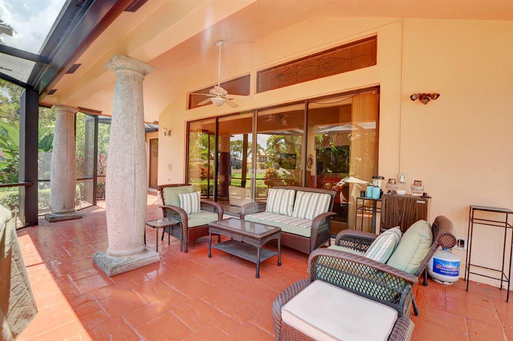Desirable expanded Capri, one story open floor plan home surrounded by beautiful tropical well kept landscaping and a huge screened patio with partial lake view for FL living at it's best. Popcorn has been removed from all ceilings. Neutral stone tile throughout most of home. Second bedroom has upscale carpeting. Designer quality renovated 2nd bath. Large oversize master bathroom. Kitchen boasts stainless top of the line appliances, new oversize W&D. A/C - 6yrs. Barrel roof tiles around house(slope) replace 2019. House has skylights and is light and bright 6,000 WATT GENERATOR THAT IS CONNECTED TO HOUSE. . Membership optional.