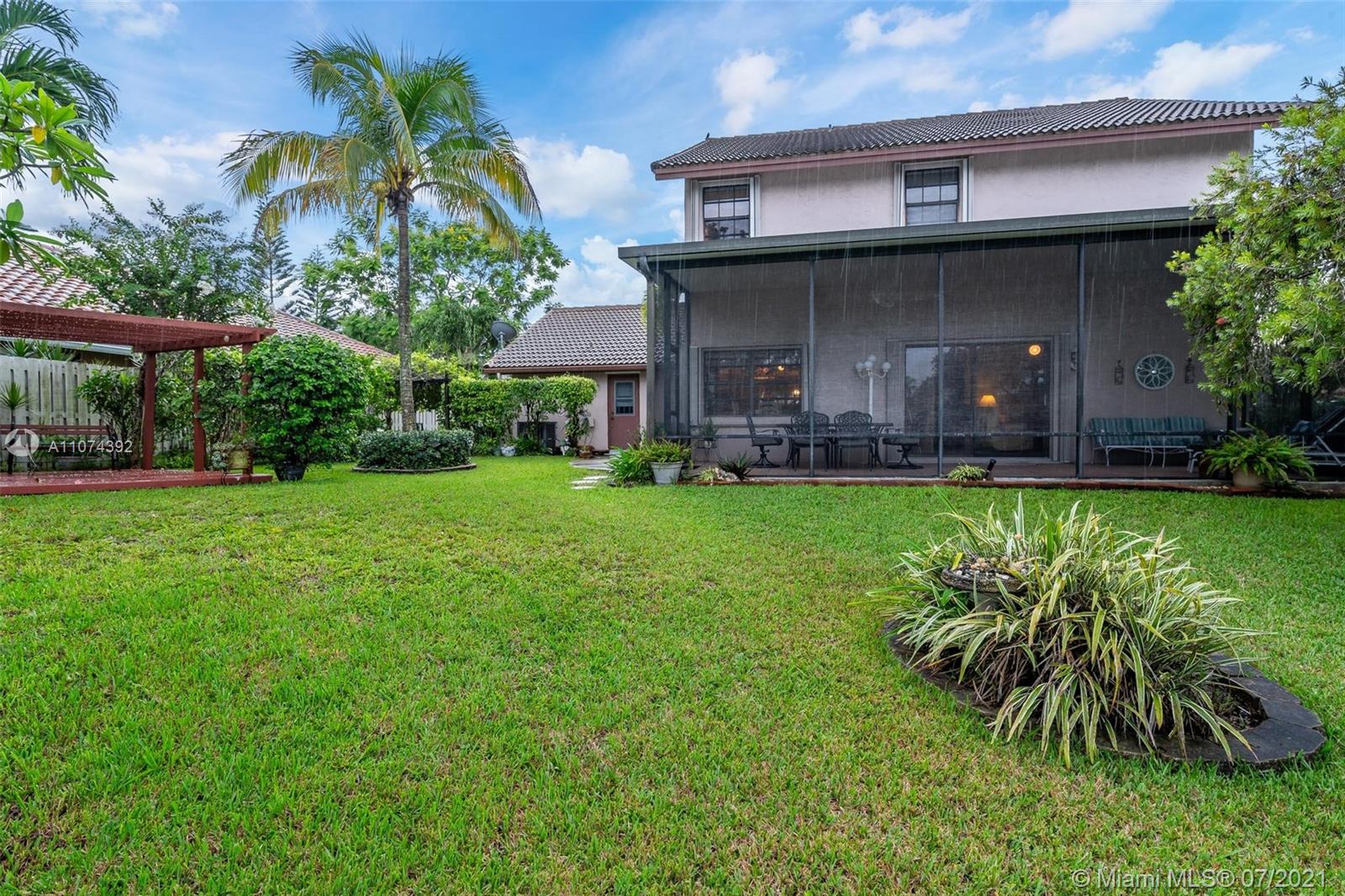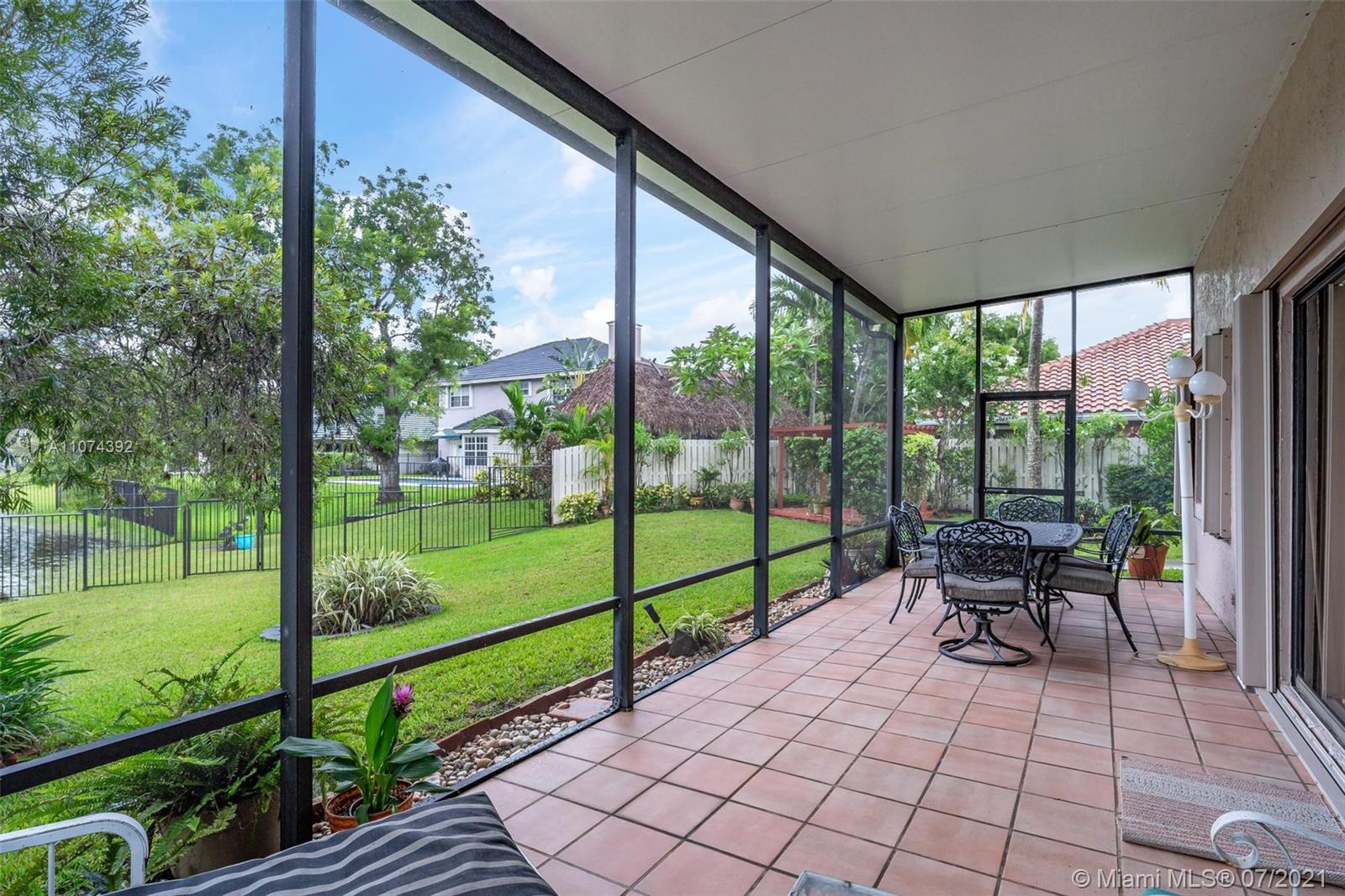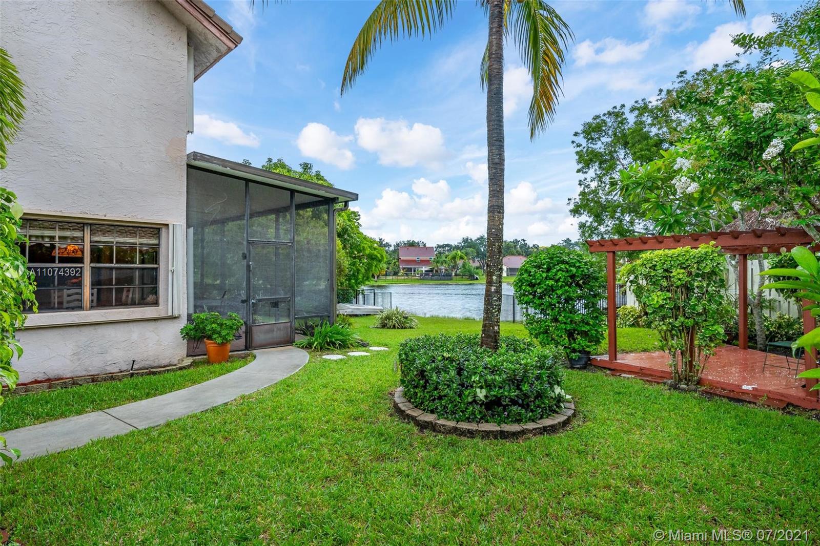 In our current market, this is ONE IN A MILLION! Large, pristine 4/2.5 home with gorgeous lake view & plenty of room for pool & play. The 4th bedroom is currently open to Master Bedroom but can be converted back with one wall. Terrific floor plan with separate family room, living room & dining room that flow together to create a cozy, roomy home. Enjoy the lake from the quaint breakfast area sitting off updated white kitchen. Big bedrooms & upgraded master bath. Step outside onto the covered, screened patio to entertain or enjoy nature. Relax in the pergola. Lake offers water for the yard, fishing & canoeing. Accordion shutters. Excellent Davie schools & location; easy access to highways, shopping & airport. Walk to Shenandoah Park with updated playground, splash pad & exercise stations.