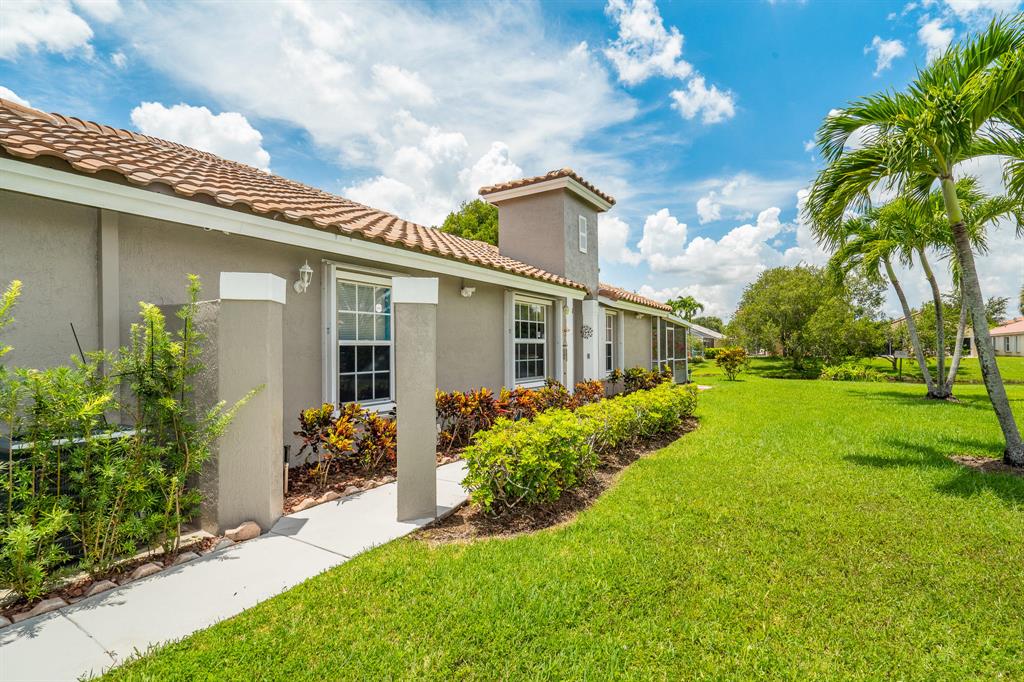 Magnificent townhouse sits on a 5700 SF lot on a beautiful lake! This impeccably maintained, 3 bedroom, 2 bathroom townhouse villa in Addison Court at Wyndham Lakes is a MUST SEE!! House features a large, fully updated kitchen with granite countertops, newer appliances, and fully updated bathrooms. Updated wood flooring throughout the main living areas and bedrooms. Spacious living room and dining room area. French doors open up to a large covered screened-in tiled patio. New hurricane impact front door and accordion shutters on all windows. Property located in a gated community with a community pool and excellent schools. NEW ROOF APRIL 2020, EXTERIOR PAINTED JANUARY 2021, and A/C and TANKLESS WATER HEATER, 2018. This is your home sweet home!