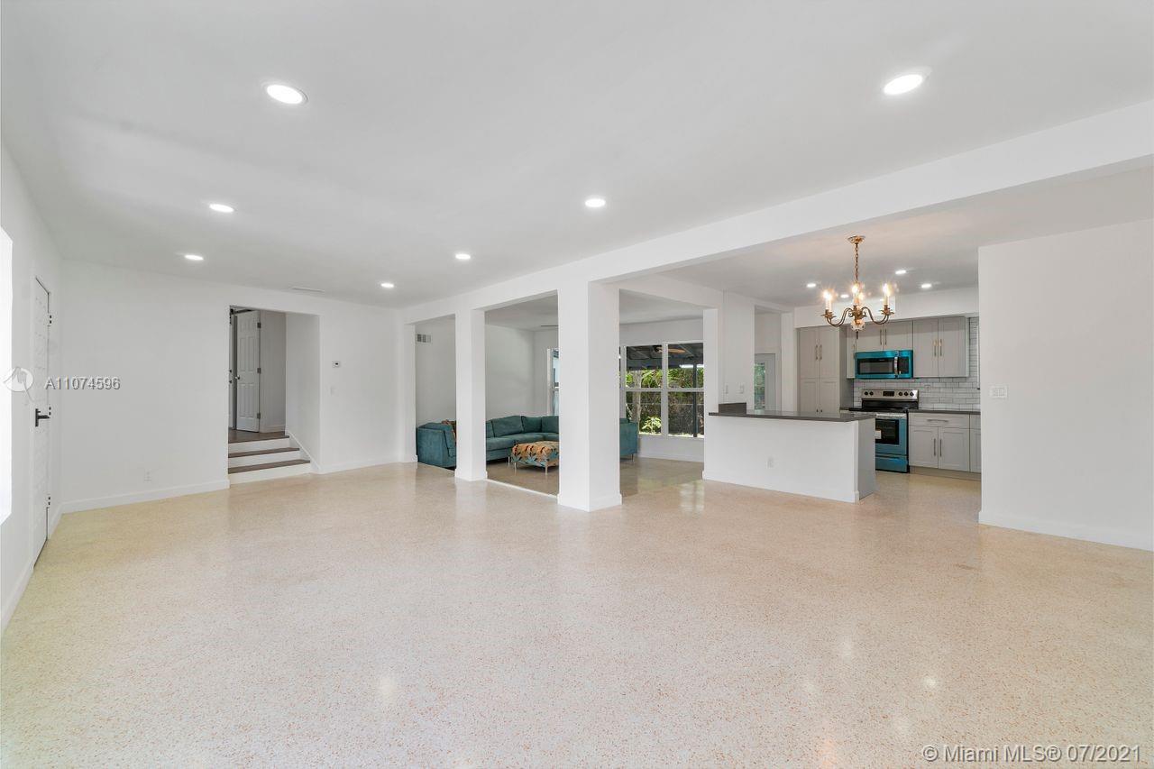 Exquisitely remodeled, light and airy home, ready to tour! Entirely remodeled kitchen with NEW cabinets, gray galaxy quartz, stainless steel appliances, decorative niches and strategic mood lighting. Classic terrazzo floors flow throughout the common areas of the home while the bedroom quarters have been updated with wood look flooring. All bedrooms and bathrooms have been updated in a modern style featuring barn doors, modern vanities and more... Sunken living room with it's picturesque windows lead to a private backyard and bonus room. Enjoy a NEW roof, NEW impact windows (doors are not impact), NEWLY resurfaced and freshly painted exterior, fantastic curb appeal with half moon driveway, one car garage and separate laundry/utility room. Come home and relax in a home you can be proud of!
