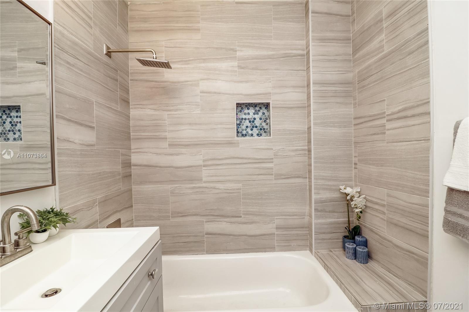 This 1200+ sqft stunning home is completely remodeled and move-in ready with all energy efficient impact windows and doors, luxurious tile floors throughout and upgraded master suite with two walk-in closets, rain shower and double vanity. Spacious, eat-in kitchen contains all new stainless steel appliances, iced quartz countertops and recessed lighting. Bright and beautiful open floor plan allows for tons of natural lighting. Laundry room with full-sized washer and dryer and separate storage room included. Huge backyard with fruit trees enhanced by a relaxing pebble and paver patio for entertaining with plenty of room for pool. Circular driveway provides ample parking. This house is a perfect oasis for Air B and B or just a place to call home. Minutes from beach, shopping and I-95.