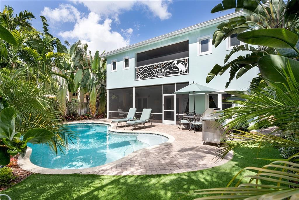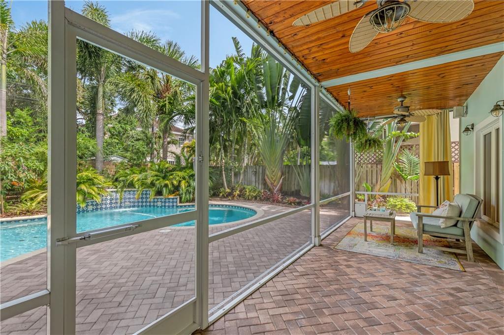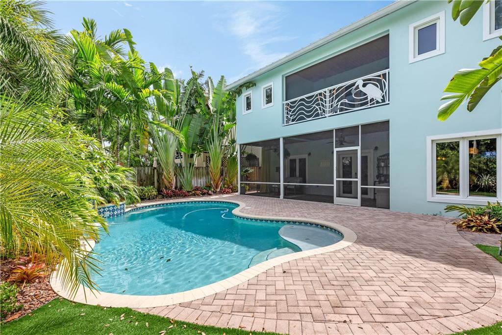 On one of Victoria Parks most desirable streets, this updated and well designed home has 3 bedrooms 2.5 bathrooms. Large open concept kitchen, family room and dining areas view the pool and lush tropical landscaping. Screened loggia allows you to enjoy the tropical paradise and east breezes year round. The entire second floor is dedicated to the primary bedroom retreat which has vaulted ceilings, den/exercise room, large walk in closet, and a screened patio overlooking the pool area. Wood floors, gas cooking, impact windows, metal roof, generator, pool heater and one car garage are just a few of the additional features this home offers. Enjoy the walkability to parks, shopping, restaurants and entertainment.