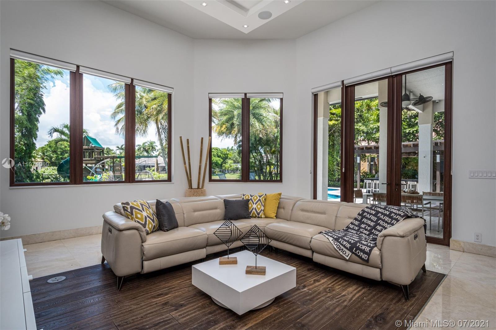 This Smart Home Is Immaculate and Fully Remodeled. Sound System, Cameras and Speakers by SONOS in The Entire Home. Featuring 5 BR/5.5 BA/Office/Gym/Sauna. Perfectly Set on a 1/2+ acres lot. Designer Bathrooms, Top-of-the-line GD Italian Kitchen, MIELE Appliances. Marble Floors, Smooth finish walls, Dry Wall Ceiling Designs with LED Lighting. Custom Closets, Cabinetry and Italian Doors. High-End Motorized Window Treatments. New Fast-Speed Pool Heater Pump, 4 AC units, Double-Pane Impact Windows & Central Vacuum are Some of The Features. Enjoy The Fully Fenced Backyard Perfect for Kids (Playground) & Pets. A Unique Outdoor Living Space With A Custom Designed Wood Pergola Fully Equipped (TV & Appliances). A 3-Car Garage with Cabinets/Storage. Stop by this Majestic Porte-Cochere and Come in!