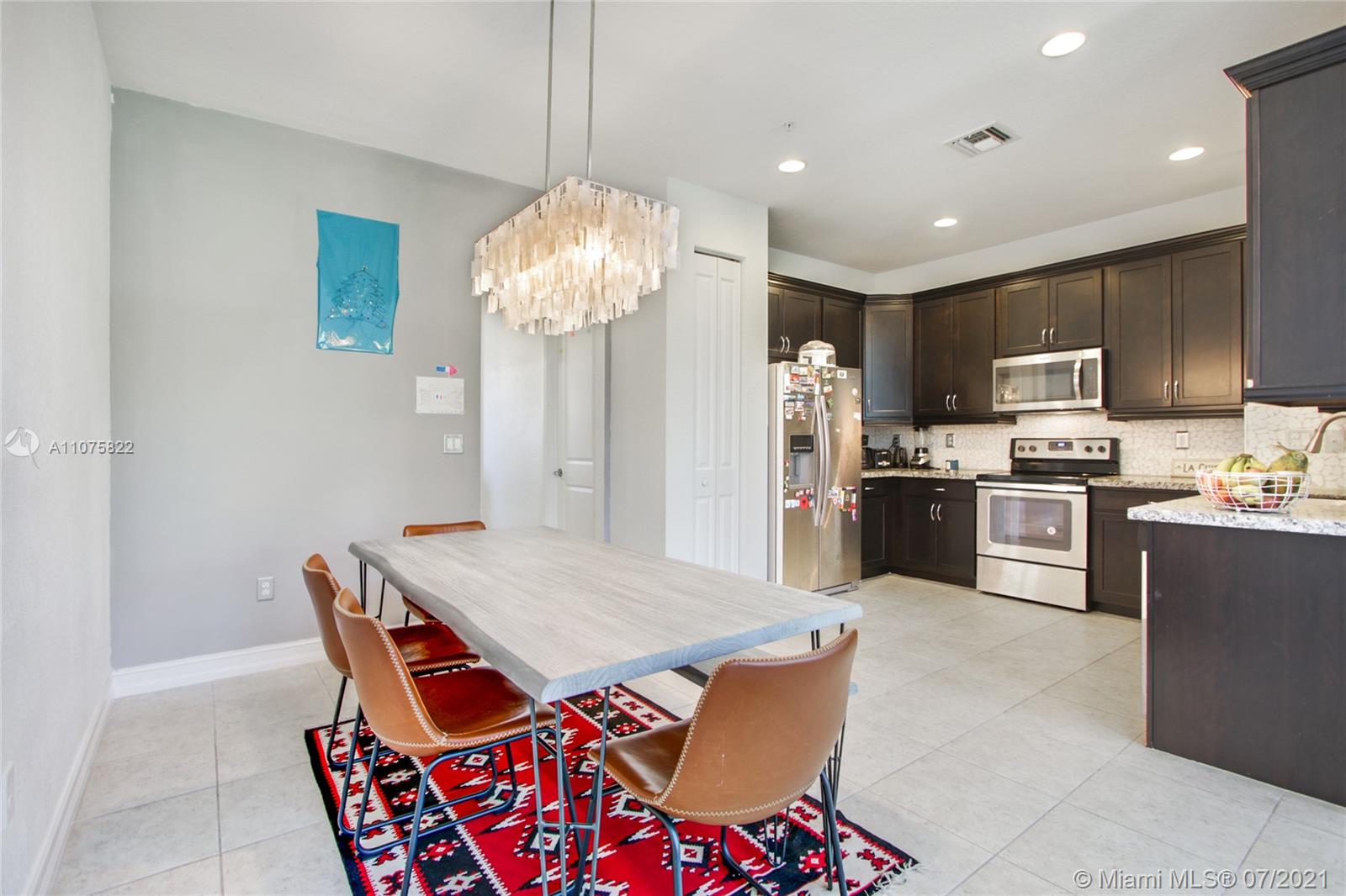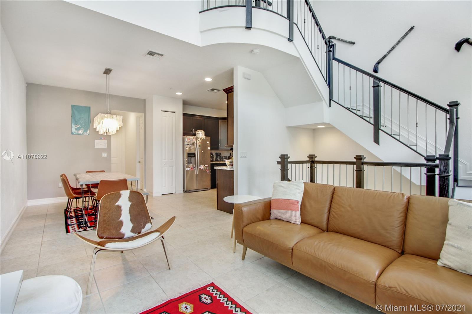Modern tri-level townhouse with high ceilings and smart home features. An inviting covered entry leads to a 1st floor private bedroom and bath and direct access to a spacious 2 car garage. The 2nd floor boasts a great room, dining room and modern kitchen leading to the secondary bedroom & bathroom and laundry room with plenty of storage space. A grand Primary Suite and primary bath with dual vanities and separate tub and shower is on the third floor for ultimate privacy. Interior finishes were upgraded by the developer including iron staircase and wood flooring. Conveniently located in sought after gated community of Raintree in Pembroke Pines offering a 5 star amenity club house, 24hr security, lush landscape, lakes and more.