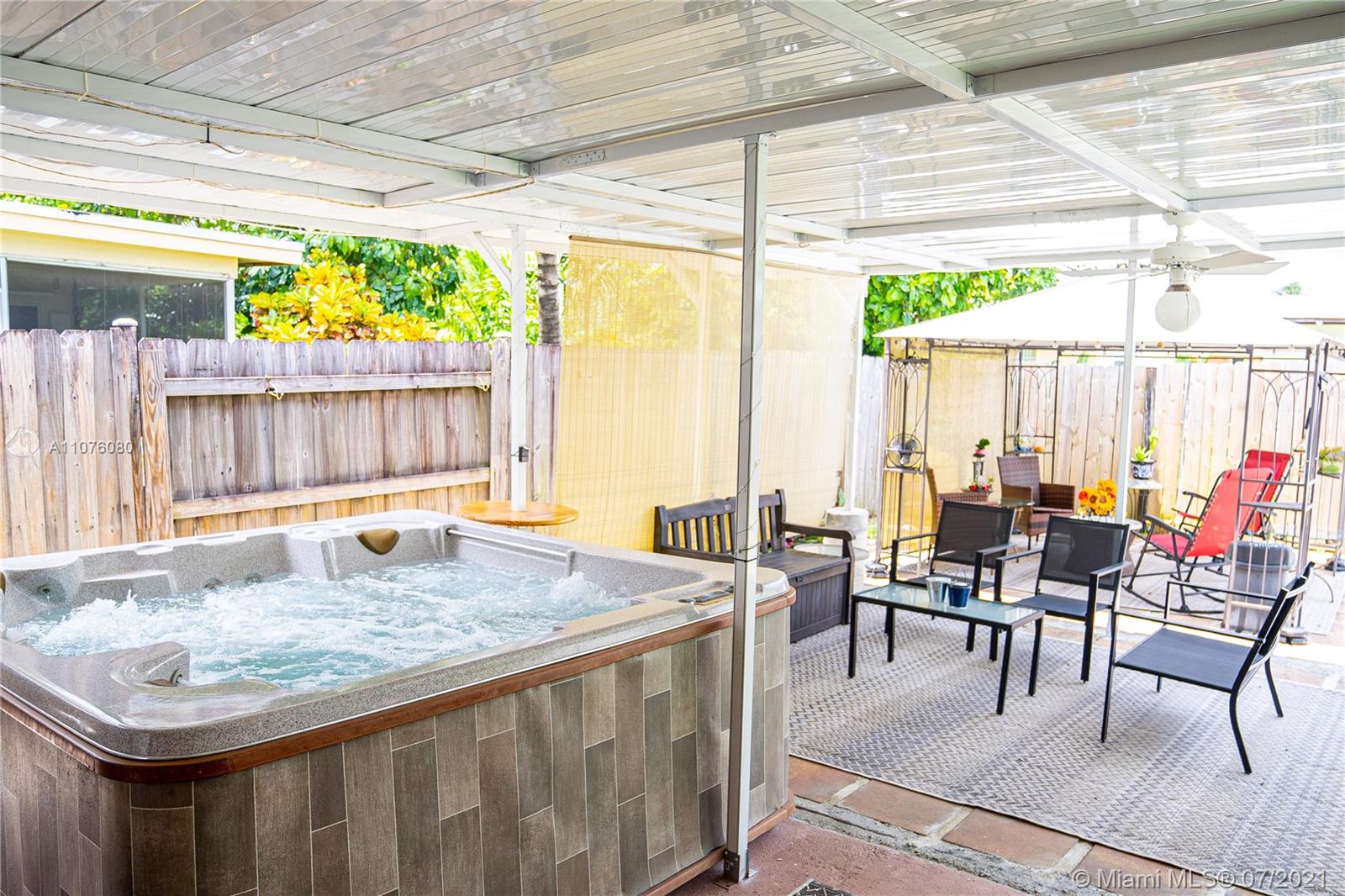 Bring the margaritas and soda pops !! Enjoy this split floor plan with a recreational backyard. This 2/2 with a converted garage bedroom will facilitate the whole family and rex too.... Clean with upgraded flooring throughout. Don't miss this opportunity. Featuring outdoor spa covered areas for entertainment, work shed and fruit trees. Mangos everywhere. Completely fenced for privacy. Come check it out.