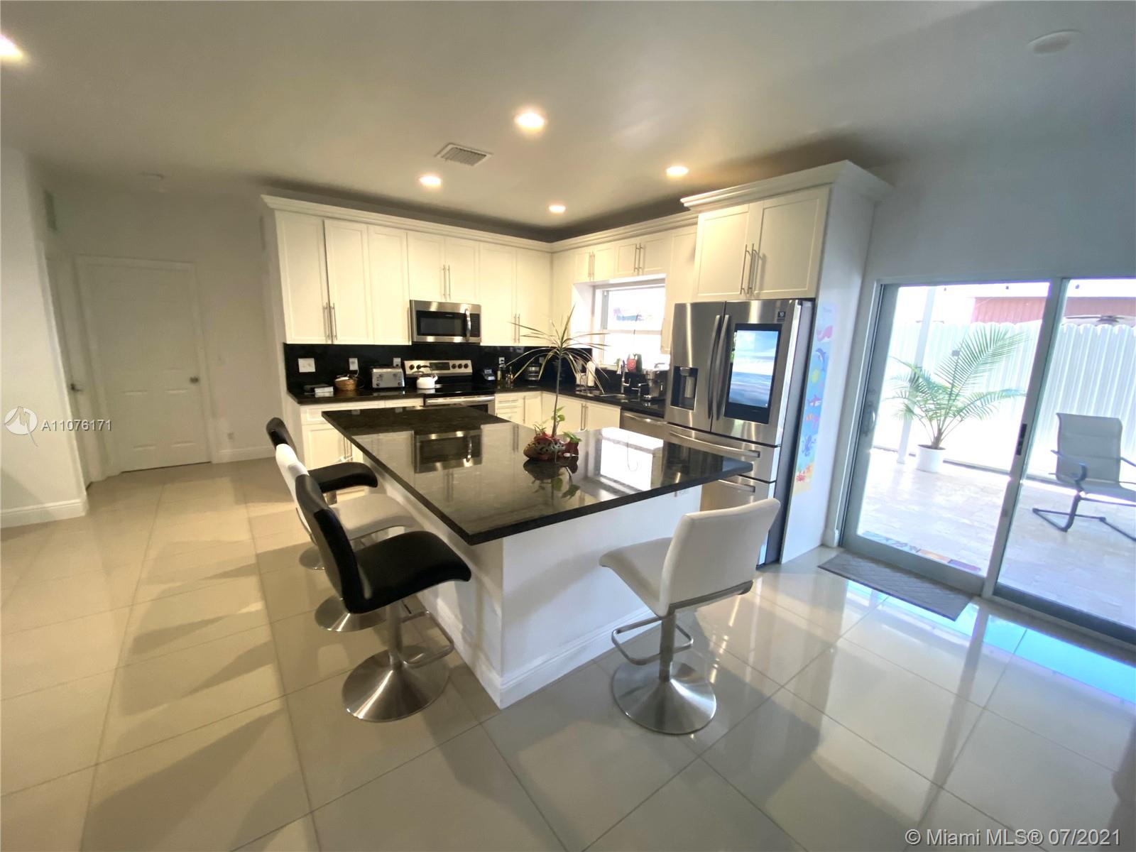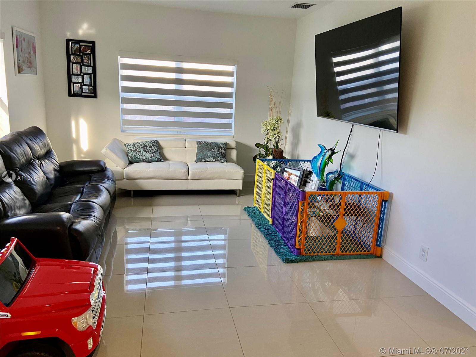 Built in 2018 this beautiful home offers 3 bedrooms, 2 bathrooms & a large 2 car garage & a split floor plan. The gorgeous kitchen is complete with granite counters & backsplash, 42” cabinets, stainless steel appliances, breakfast bar and large center island with seating. Enjoy the two living spaces with great natural light, the grand double door entry, and white marble tile throughout. Master bedroom has a walk-in closet, en suite bathroom with tub/shower. This almost new home offers hurricane impact windows & doors, volume ceilings with recessed lighting throughout and a large poured concrete driveway. Home is well landscaped with custom lighting. No association fees, all ages, pets welcome. All Zebra Blinds are included.