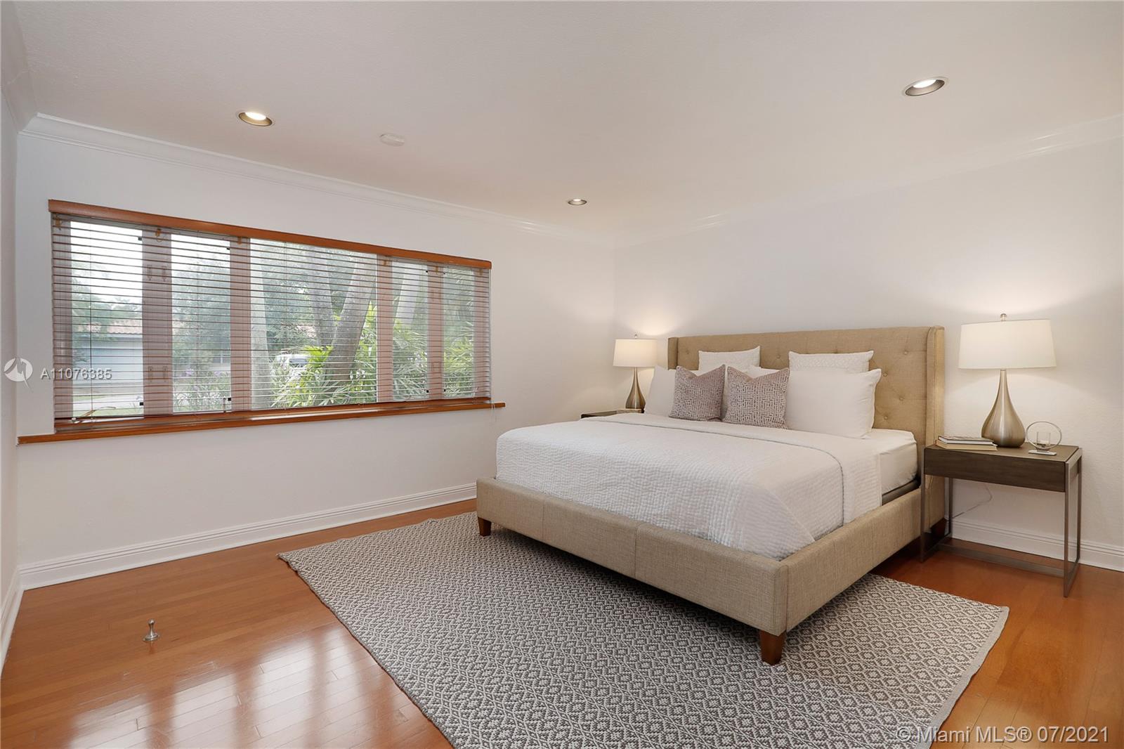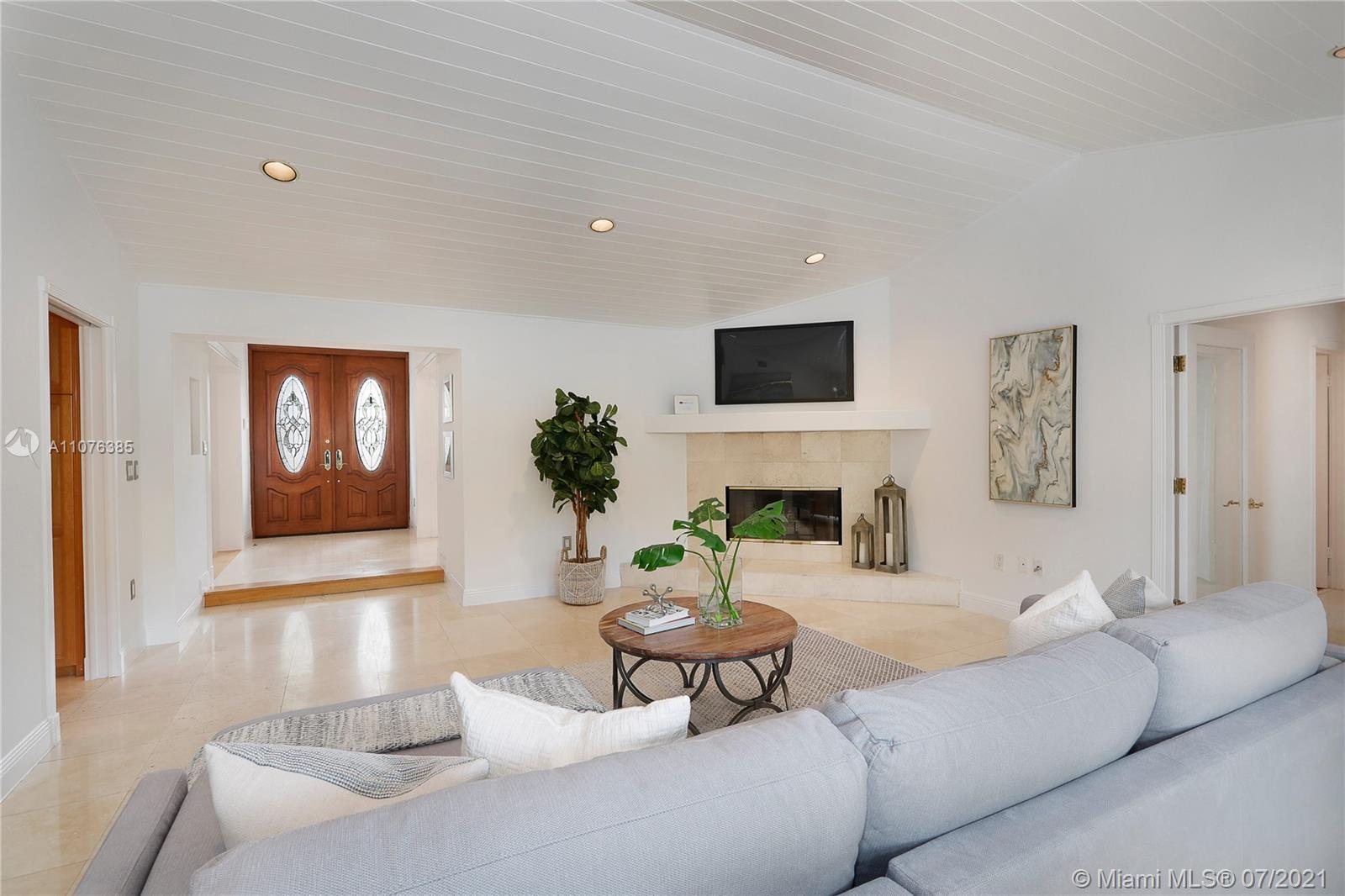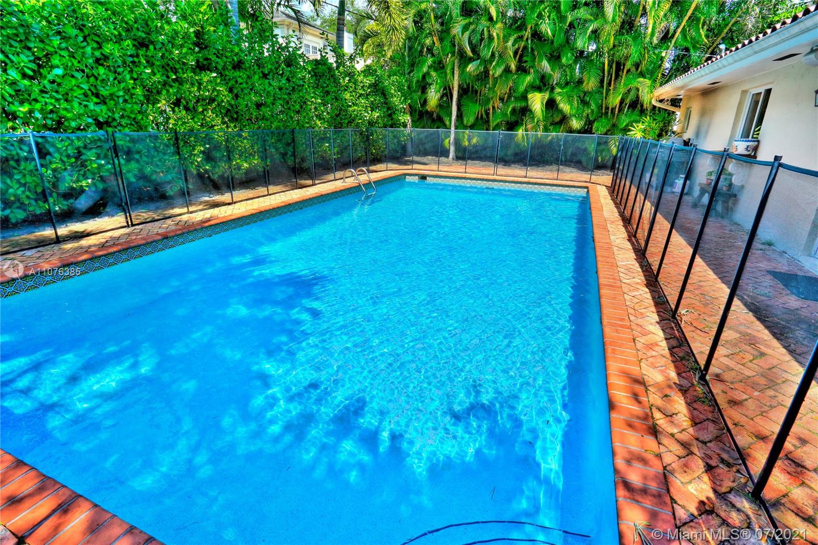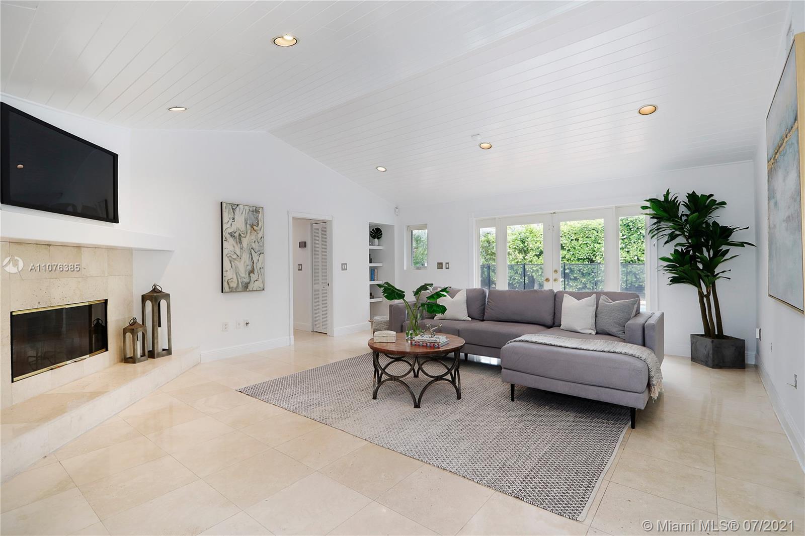 Perfect Coral Gables home beautifully renovated & located on quiet, tree-lined street with great parks nearby. This 4-bedroom, 3-bath house is complete with elegant marble & hardwood floors, & open spaces with lots of natural lighting. The spacious kitchen has a lovely view of the pool area, & features stainless steel appliances, granite countertops, & a breakfast area. The bright living room has high wood-beamed ceilings, glass French doors with serene views of the pool, & a fireplace to add to its character. The additional den can be used as a media room, office or play room, & the home has large closets & plenty of storage.Master bedroom has an en-suite bath, & closet with built-ins.Lushly landscaped yard with a fenced heated pool,circular driveway & 1-car garage, impact glass.