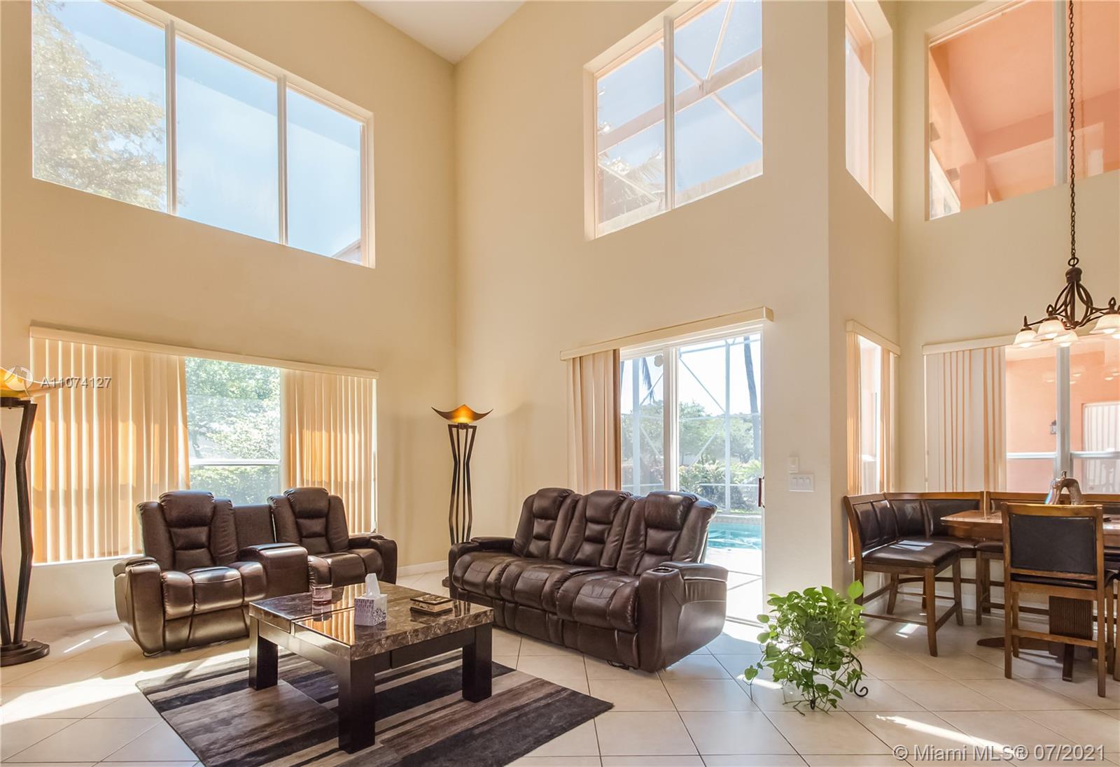 Enjoy the spectacular natural light in this gorgeous home as you enter the 2 story high foyer & formal living room. Mini master on 1st floor with full bath. Beautiful office w custom built-ins is the perfect place to work from home. Kitchen has top notch real wood cabinetry, gorgeous granite countertops & stainless steel appliances. Upper level has beautiful wood flooring. Big open loft is perfect as TV room, pool table, playroom or work out room. Huge screen enclosed custom pool & patio. Accordion shutters and home security system for your protection.