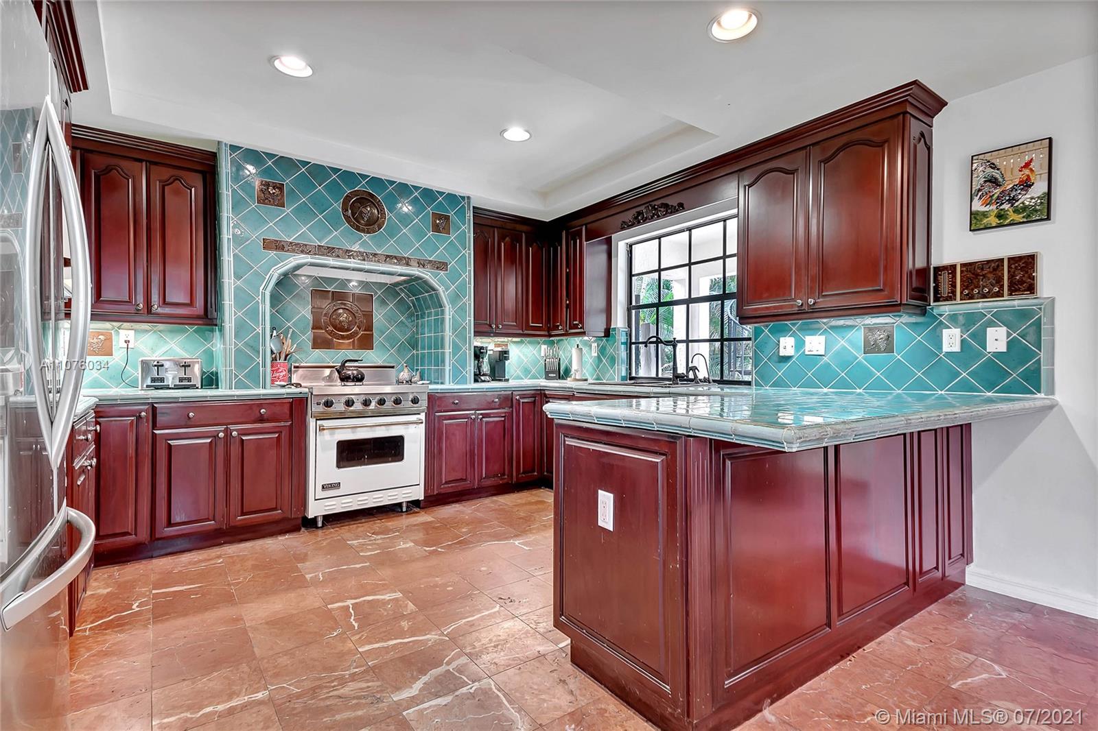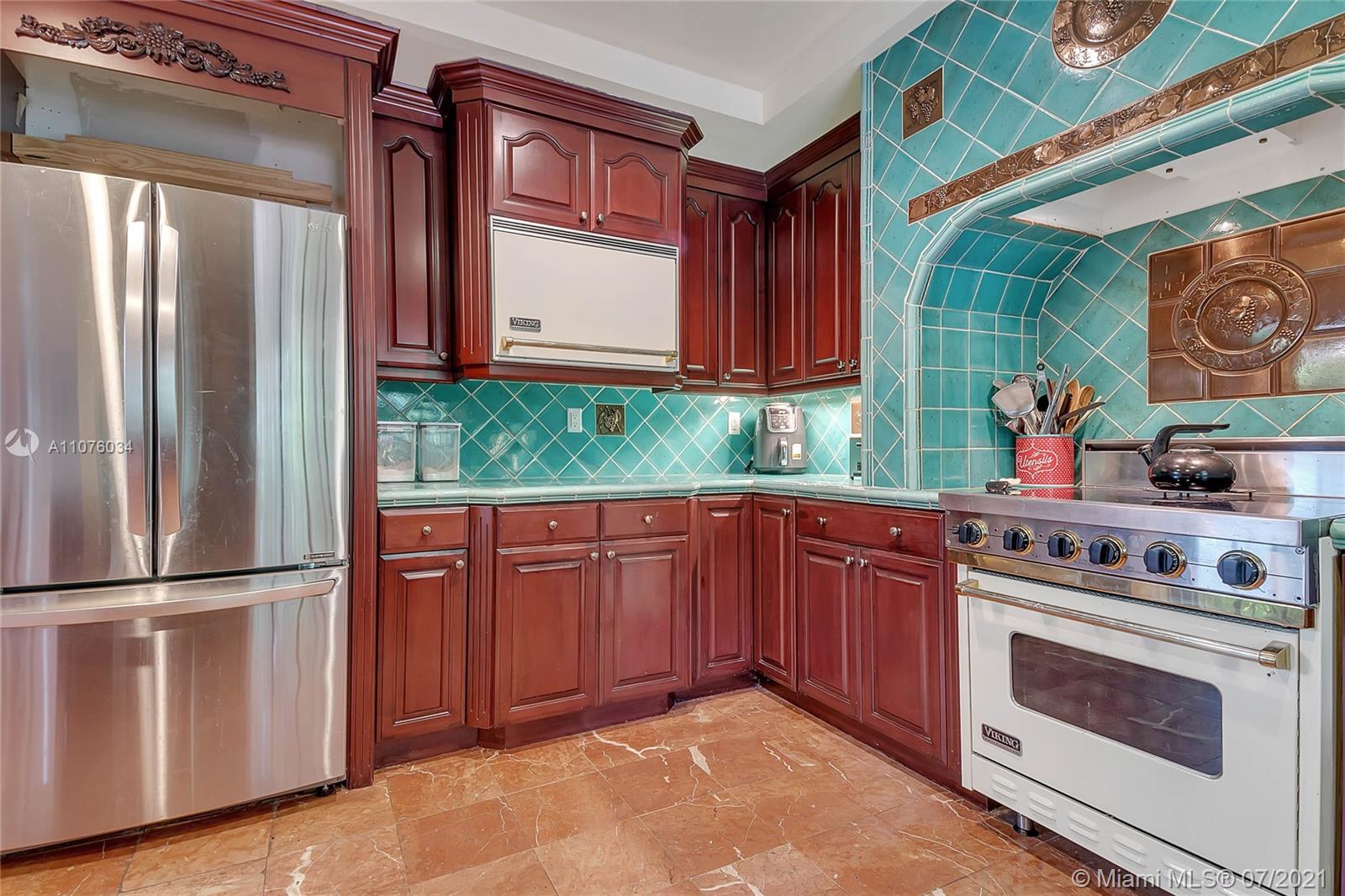 Spectacular Coral Gables home, reminiscent of a European villa. Spacious 3 bedrooms, 3 full bathrooms, formal living room with cathedral ceiling & splendid fireplace, formal dining room, and ample family room. Impressive kitchen with Italian tiled counters, wood cabinetry, and gorgeous hearth encasing a classic Viking stove. French doors throughout filter in natural light and provide views of the lush surroundings, pool area, and charming courtyard. Easy access to and from the living and outdoor spaces make this the perfect home for entertaining! Located in close proximity to the historical Granada Golf Course, and all the entertainment, dining establishments, and conveniences offered by The City Beautiful. Schedule your showing today, don't miss the opportunity to own this gem.