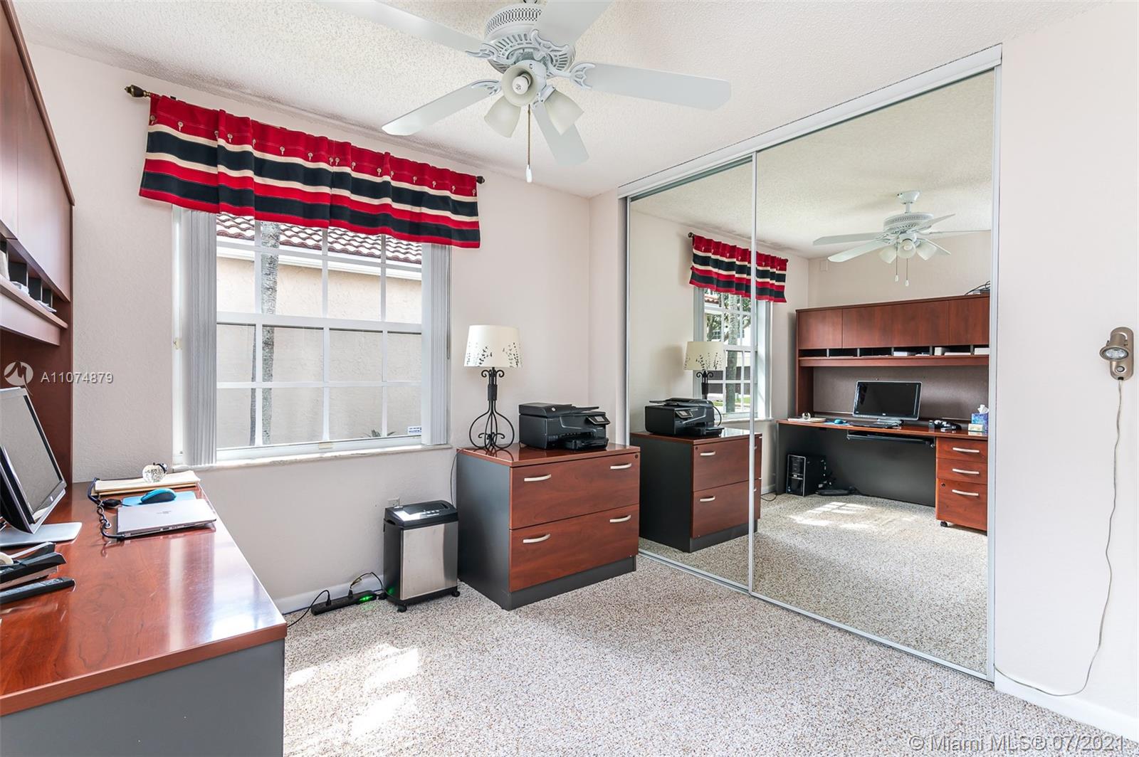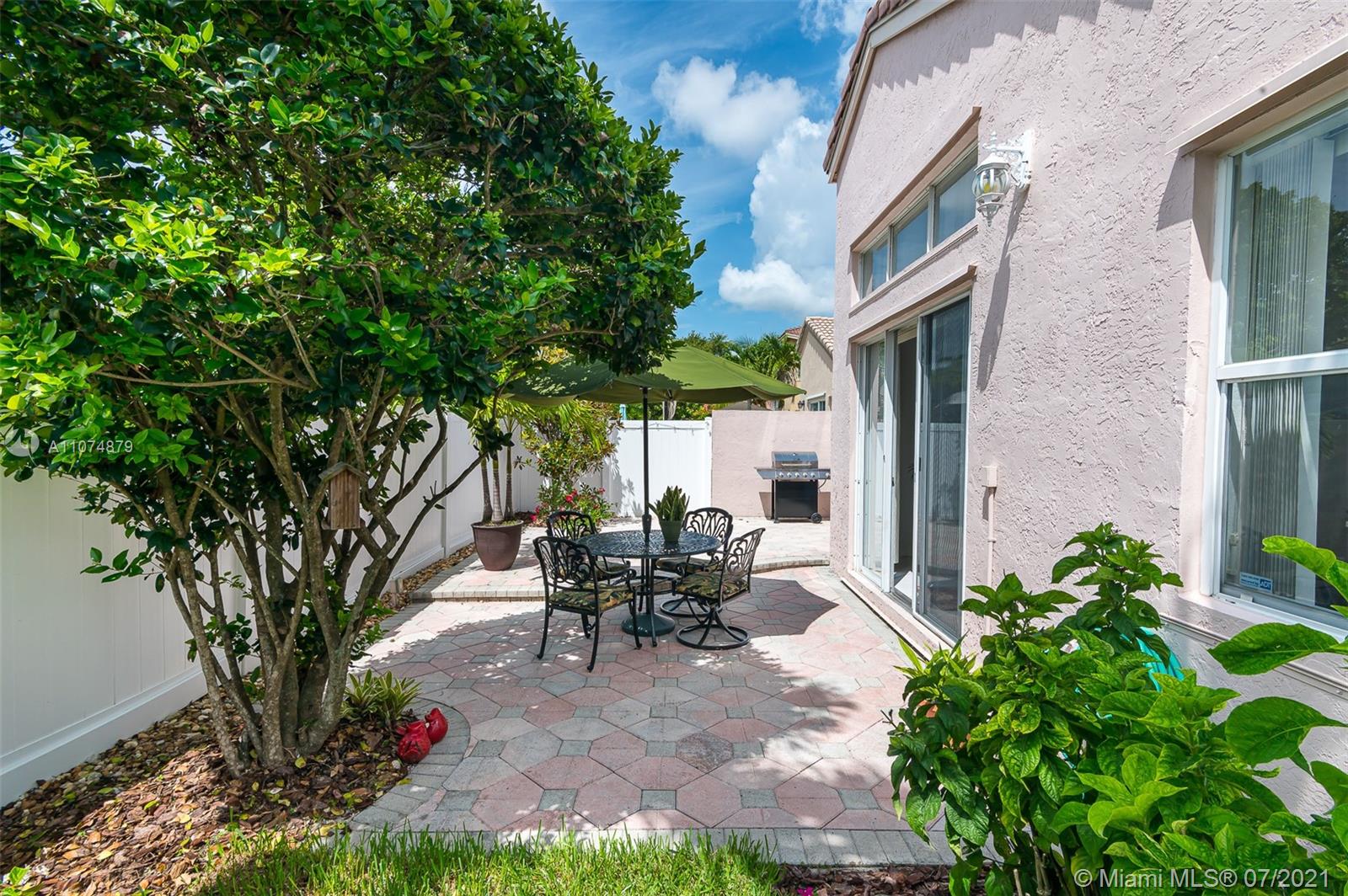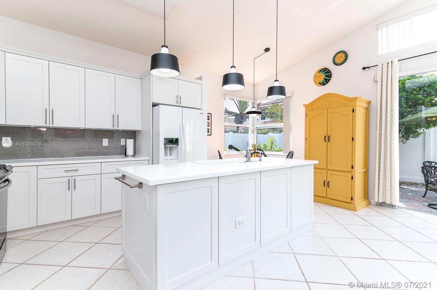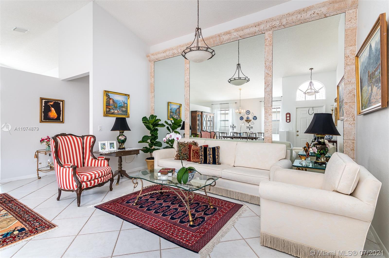 Impeccable 3/2 single family home 2 car garage in prestigious gated community TownGate. Move-in ready with vaulted ceilings. Custom wall mirrors. Newly remodeled kitchen features tall white shaker cabinets, sparkling sleek countertops, Kohler sink, roll-out trays, SS appliances, and reverse-osmosis water filtration system. Walk-in closets in oversized master bedroom overlooking patio oasis. Master bathroom with Roman tub, shower, linen closet, secluded toilet for privacy. Italian porcelain tile main areas; Berber carpet in bedrooms. Laundry room. Energy-efficient AC, hurricane SS panels, HOA $200/month paid quarterly includes cable, internet, 24 hr security. Crystal chandelier not included. Enjoy TownGate’s amenities such as pools, cabanas, playgrounds, gym, parks, tennis/baseball fields.