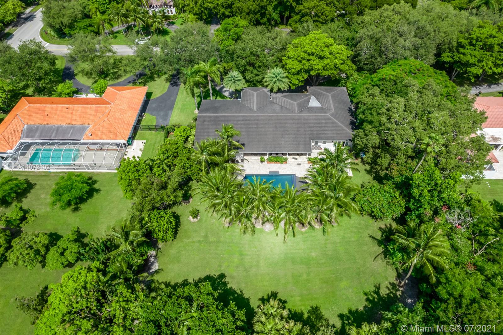 This beautiful home is located on a quiet Pinecrest street offering 4 beds, an office and 4.5 bath. The 4,798 Sf home was renovated in '15 and sits on almost an acre of lot. The property offers wood and marble floors, high ceiling, large en-suite bedrooms, Thermador appliances & gas range. The split floor plan provides for two master bedrooms w/private access to the backyard & pool. The property features a large elegant entrance, a separate living and family room as well as a large kitchen w/island and lots of natural light. The very private exterior of the property provides for a salt water pool, lush landscaping, plenty of green space, 16 types of fruit trees and a coverage terrace. Finally this home comes with 2-car garage and is located in the Pinecrest school district.