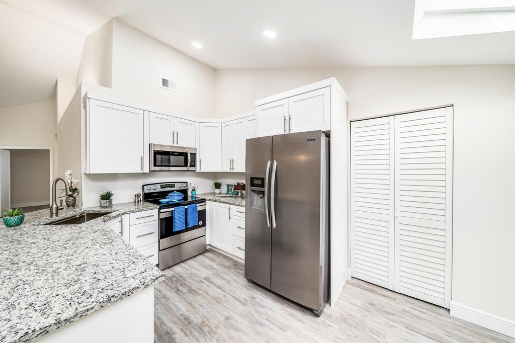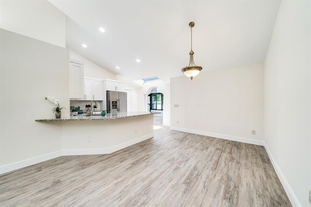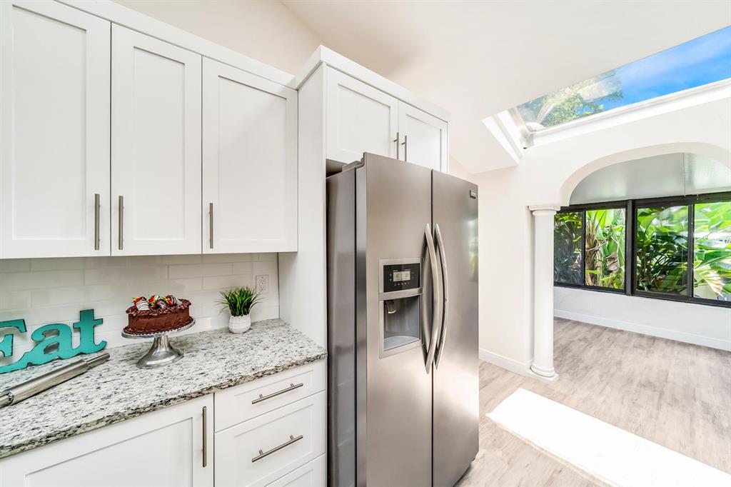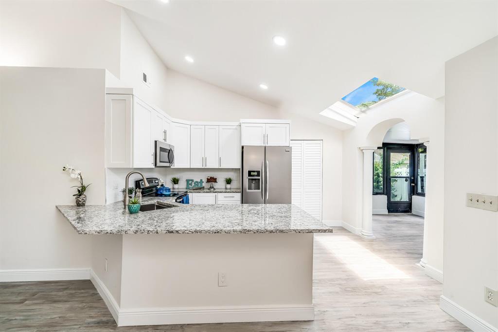 Everything is New & Fabulous in this Home that features 3 bedrooms, 2 baths, & a 1 car garage in the highly desirable community of Trends at Boca Raton. Home is vacant and ready to close ASAP! Open floor plan with Cathedral/Vaulted Ceilings plus wood laminate/vinyl flooring throughout (tile in bathrooms). New updated kitchen w/ granite countertops, white shaker cabinets with pull out drawers, stainless appliances include electric range and microwave, fridge & dishwasher, white subway tile backsplash, skylight, pantry and more!! Master Bedroom has double closets and an En-suite w/combo Tub shower w/updated tile, marble top vanity and wood cabinet with pull out drawers. The guest bath is super updated as well. Brand new Roof just completed End of July 2021! Six foot PVC fence from 2019!