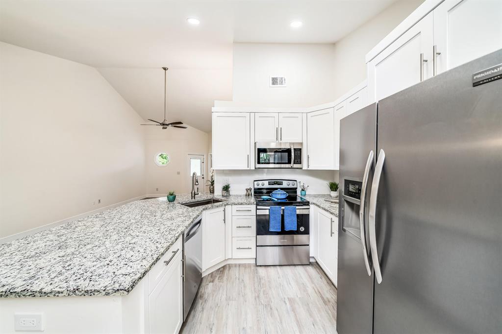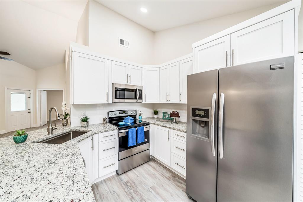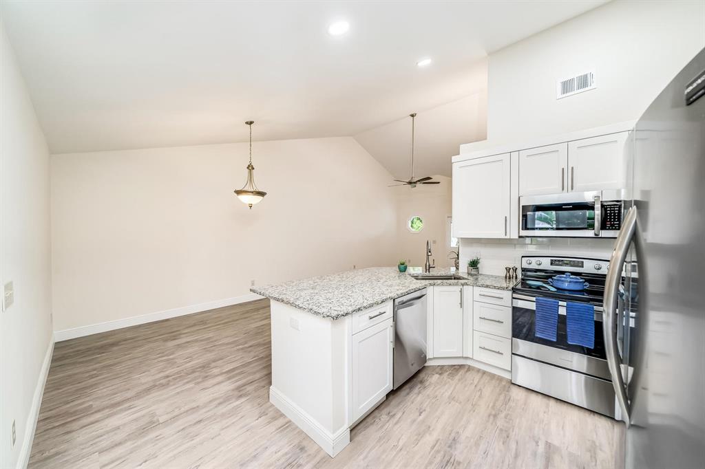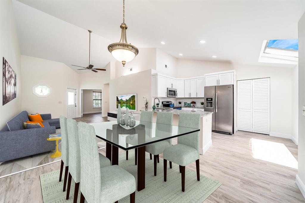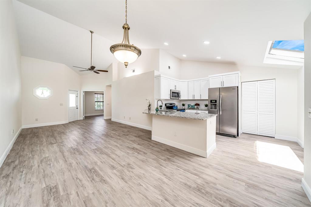 Everything is New & Fabulous in this Home that features 3 bedrooms, 2 baths, & a 1 car garage in the highly desirable community of Trends at Boca Raton. Home is vacant and ready to close ASAP! Open floor plan with Cathedral/Vaulted Ceilings plus wood laminate/vinyl flooring throughout (tile in bathrooms). New updated kitchen w/ granite countertops, white shaker cabinets with pull out drawers, stainless appliances include electric range and microwave, fridge & dishwasher, white subway tile backsplash, skylight, pantry and more!! Master Bedroom has double closets and an En-suite w/combo Tub shower w/updated tile, marble top vanity and wood cabinet with pull out drawers. The guest bath is super updated as well. Brand new Roof just completed End of July 2021! Six foot PVC fence from 2019!