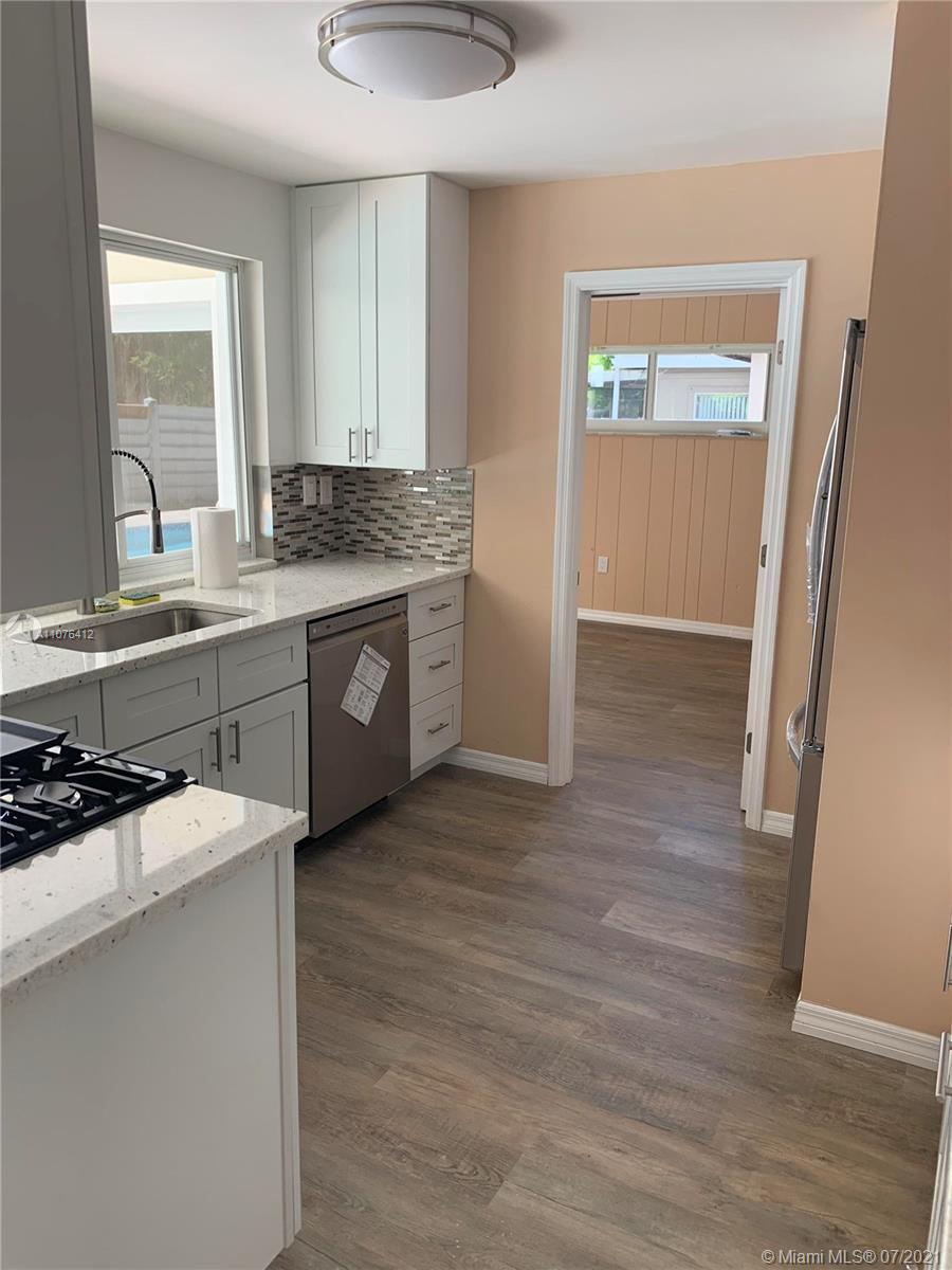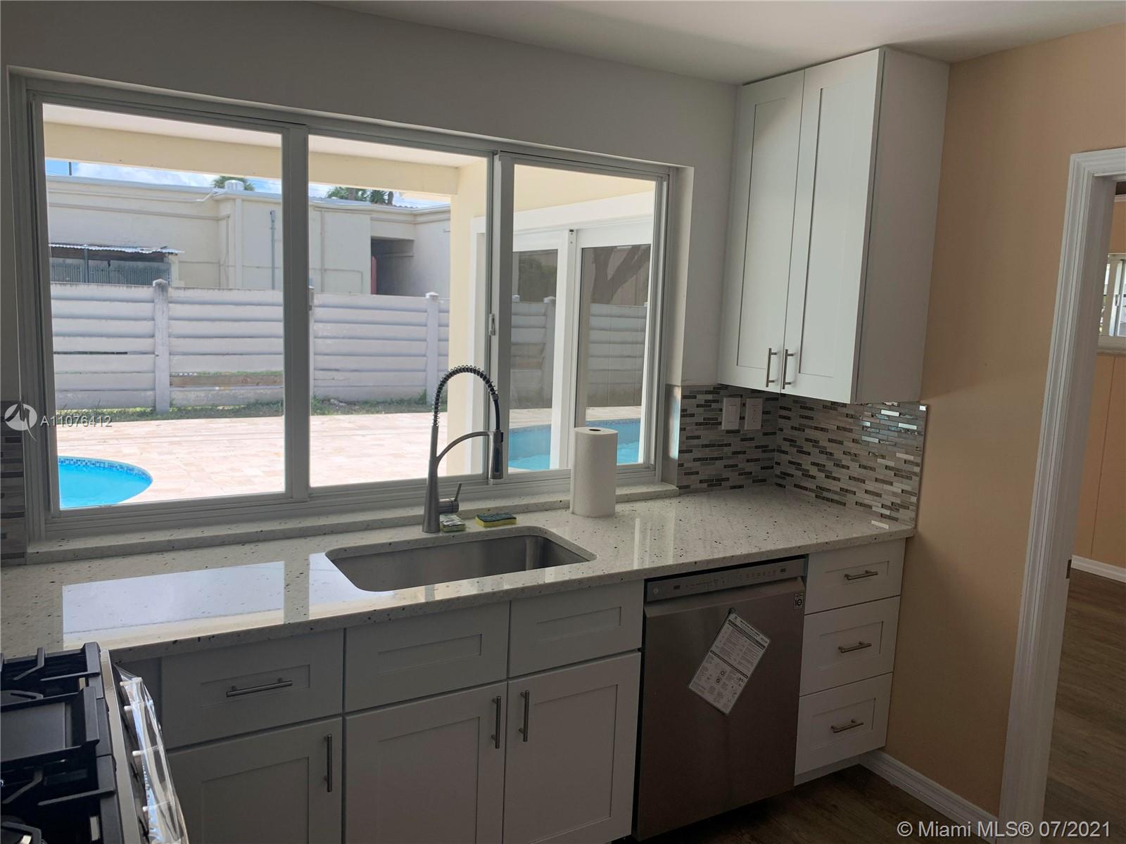 Totally renovated bright and spacious 4/3 house with the option for a 5th bedroom. Features two master bedroom suites with walk in closets. One of the master bedrooms has a private entrance which could function as a mother in law suite, or rented out for extra income. Brand new hurricane proof windows and doors. Newer roof. New electric and plumbing, including new sewer pipes. Open kitchen with granite counter tops, stainless steel appliances and gas stove. Brand new bathrooms with glass shower doors. Cabana bath of the dining room leads out to the new travertine pool deck where the pool has a fresh coat of diamond bright. Freshly painted fenced backyard features both mango and avocado trees. New paved driveway leading up to the house. Walking distance to shopping and restaurants