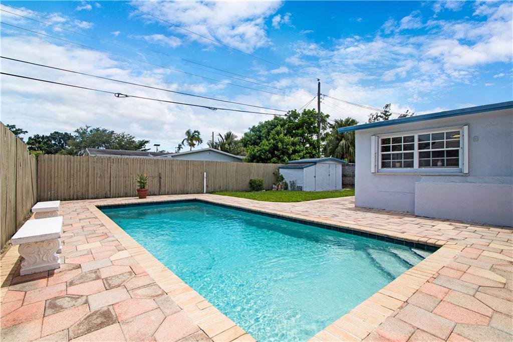Beautifully maintained and updated pool home in a great location! Same owners for 40+ years. Pool, roof, and A/C were all redone in 2017. Updated electric panel in 2016. Kitchen and both bathrooms have been updated as well. Kitchen features stainless steel appliances and tons of storage space. Home features a split floor plan with 3 bedrooms, PLUS a den/office that could easily be a 4th bedroom. Accordion shutters all around for hurricane protection. Storage shed in the backyard and paver patio around the pool.