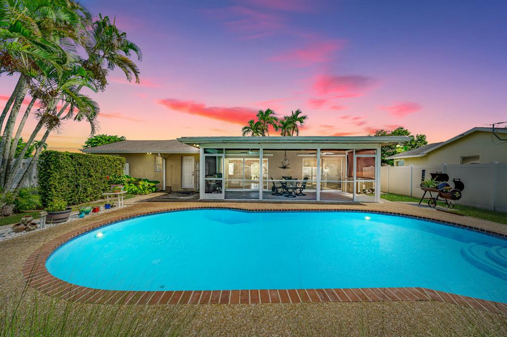 WOW!!! True 3 bedroom, 2 bath, POOL Home on a private corner lot w/2 driveways. Home features an open & spacious floor plan w/huge vaulted/cathedral ceilings w/faux wood beams in living-room & kitchen. Impact windows & front door. Custom gourmet kitchen w/stainless appliances, center island, sunny breakfast area, lots of counter space/many cabinets, plus large pantry. Tile throughout living areas and 1 bedroom. Laminate flooring in the other bedrooms. Large screened in/covered patio with access from kitchen and living room through sliding doors. New PVC Fenced in tropical retreat backyard. Sparkling pool was recently diamond brighten & has new shiny blue tile. Tons of beautiful landscaping. Covered/screened in patio w/ceiling that is tongue & groove cedar wood w/recessed lighting